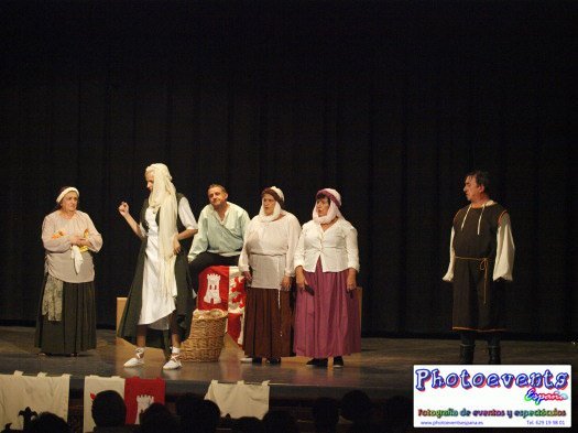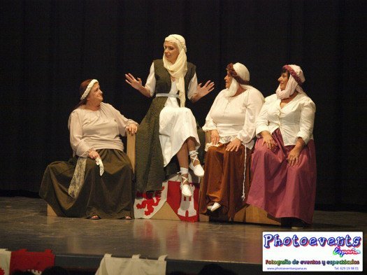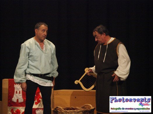 Representación de varias escenas de la edad media y música en directo