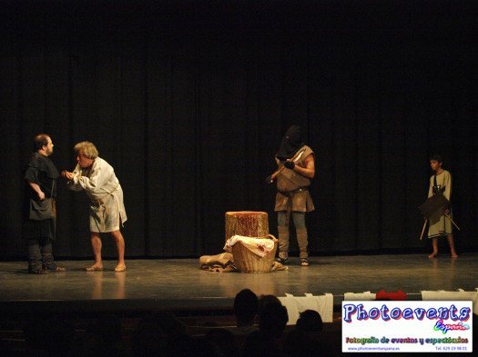 Representación de varias escenas de la edad media y música en directo