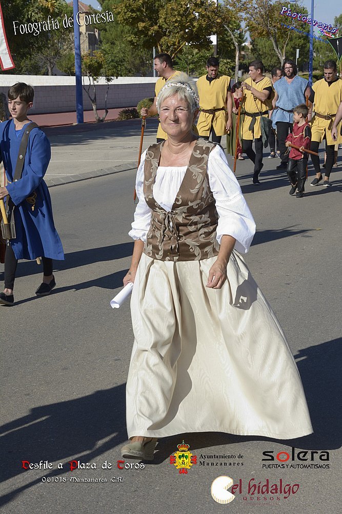 Fotografías realizadas durante parte del desfile de la comitiva medieval junto con los participantes que recorrieron varias calles de la localidad hasta llegar a la plaza de toros, el evento tenía lugar por distintas calles de la localidad en la tarde del 6 de Octubre de 2018 en Manzanares, con motivo de las VII Jornadas Medievales en la localidad de Manzanares, provincia de Ciudad Real .