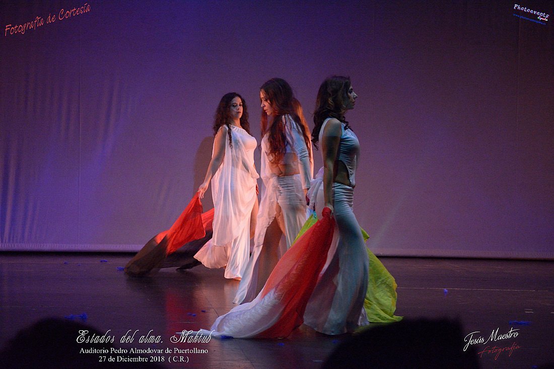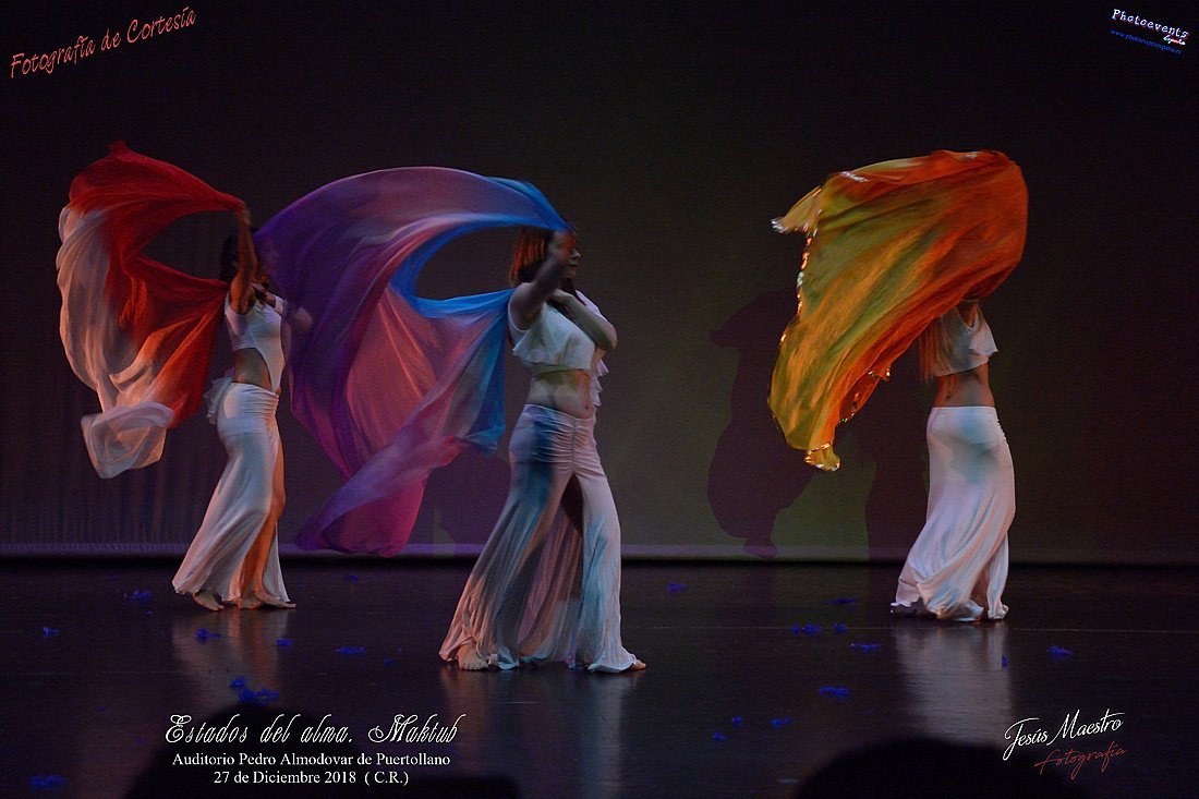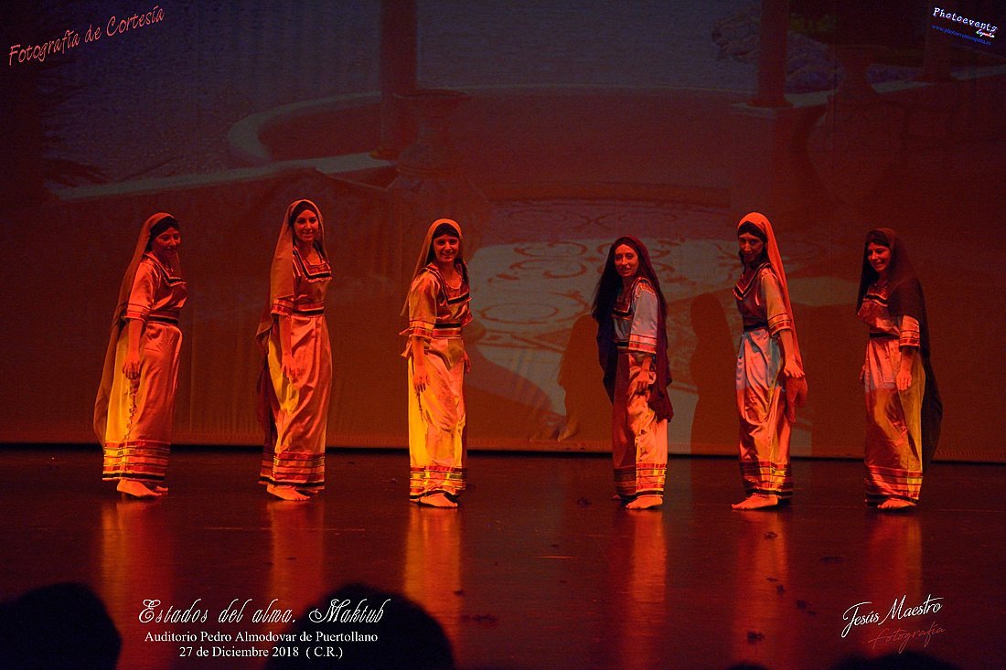 Espectáculo de danza oriental "Estados del Alma II, Maktub" a cargo de la compañía Saisha Danza Saisha Danza, que mediante la música , el baile y la actuación , nos viene a enseñar que todo lo que ocurre en nuestras vidas no es por casualidad y todo está escrito (Maktub). Fue representado el pasado día 27 de Diciembre en el Auditorio Pedro Almodóvar de Puertollano, Ciudad Real.