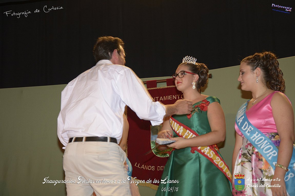 Fotografías realizadas durante el acto de inauguración de las Fiestas en Honor a la Virgen de los Llanos , entregandose los diplomas alos niños de la ludoteca y campamento de verano , para posteriormente realizar el correspondiente pregón que este año corria a cargo de D. Pedro Castañeda Taladriz (nieto de D. Pedro Castañeda Cagigas, arquitecto que diseño el pueblo de Llanos del Caudillo).  Terminando el acto con la correspondiente polvora y un aperitivo para todas las personas. El acto tenia lugar en el Salón Cultural el día 06 de Septiembre de 2018 en la localidad de Llanos del Caudillo, provincia de Ciudad Real .