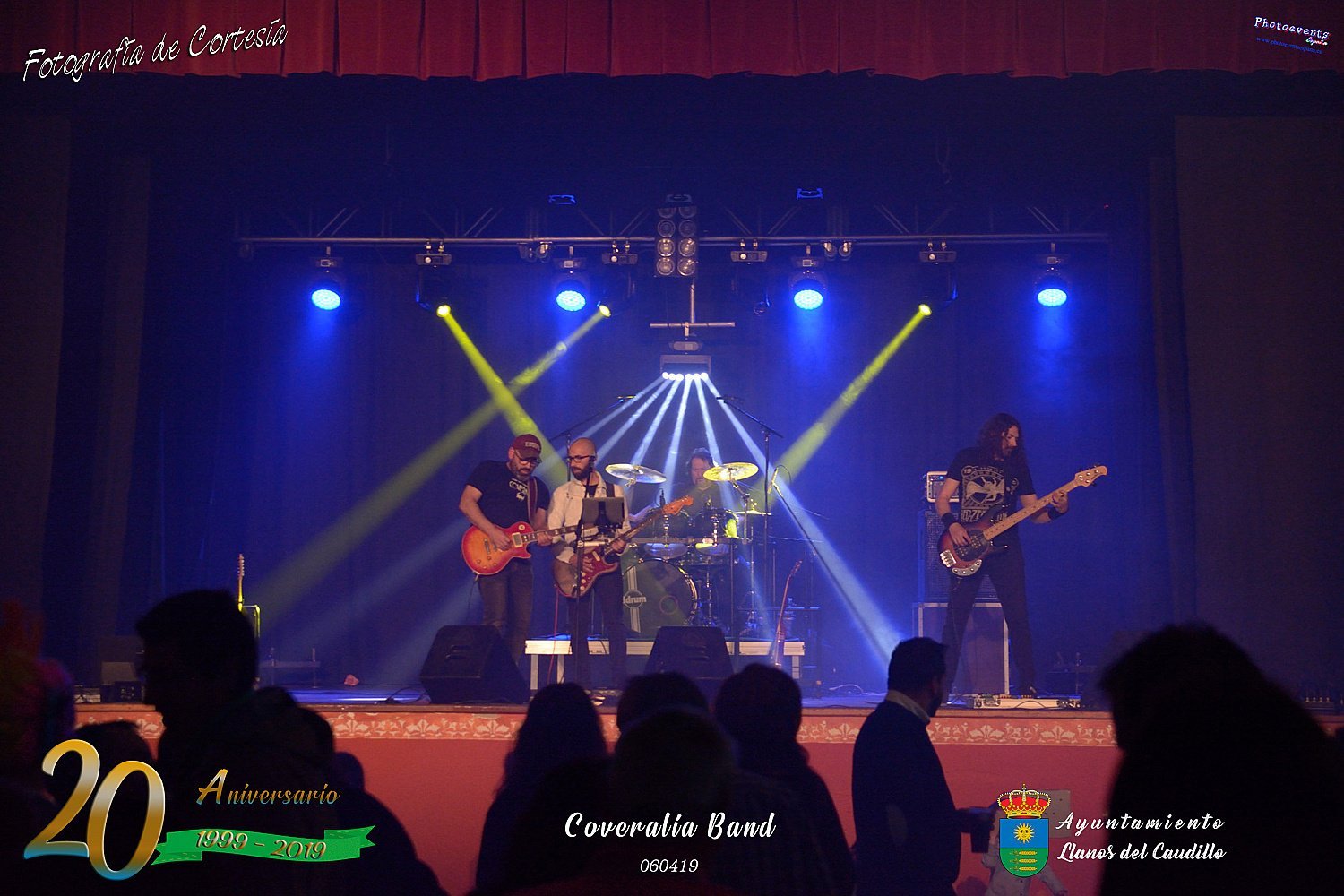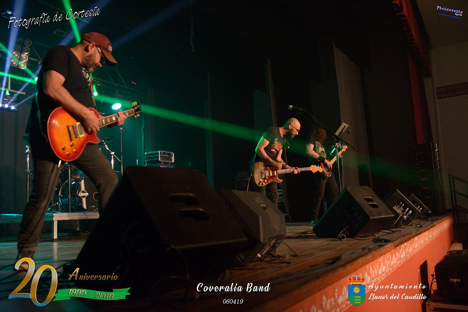 Fotografía realizadas durante el concierto musical ofrecido por Coveralia Band, llegados desde La Carolina (Jaén), que deleitaron a todos los asistentes haciendo un repaso musical de todos los tiempos , y rememorando grandes canciones de grandes artistas. Un espectáculo musical con casi tres horas de duración.