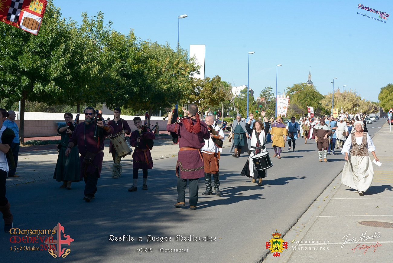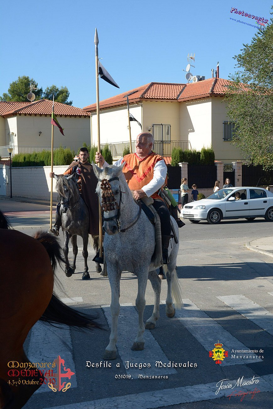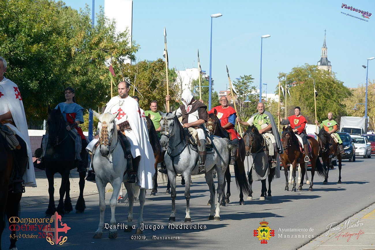 Fotografías realizadas durante el desfile de personajes y caballeros hacia la plaza de toros, terreno donde se realizan los juegos y competiciones medievales, que tenía lugar el pasado día 5 de Octubre. Actividad enmarcada dentro de las VIII Jornadas histórico-turísticas Manzanares Medieval, que se celebran durante los días 4, 5 y 6 de Octubre en el municipio de Manzanares, Ciudad Real.