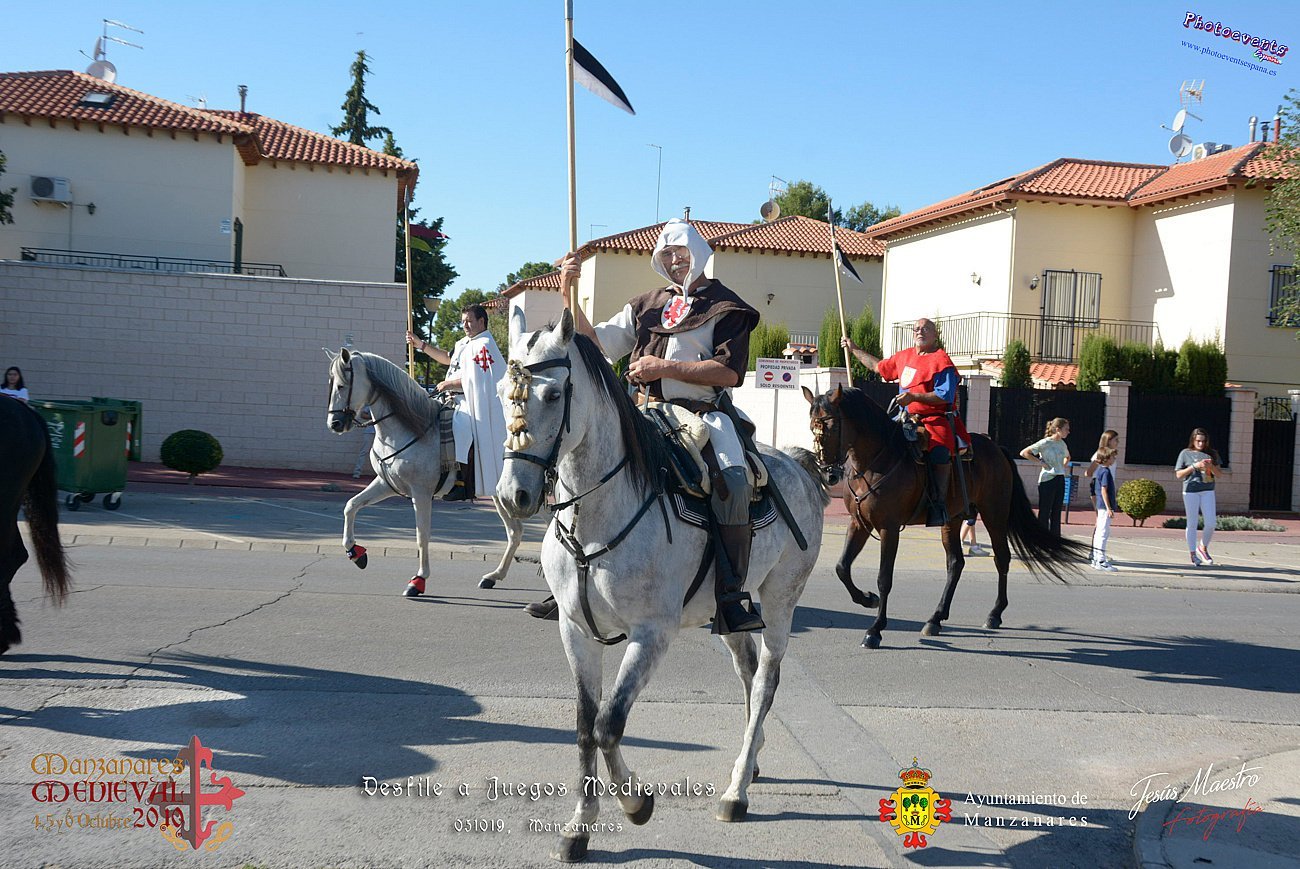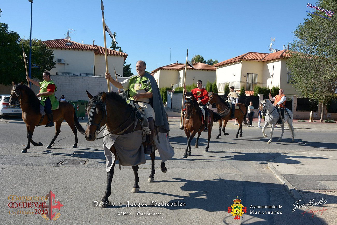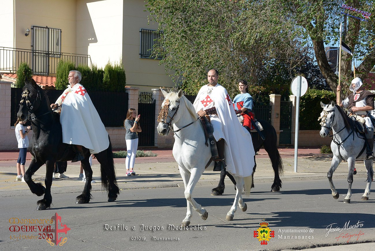 Fotografías realizadas durante el desfile de personajes y caballeros hacia la plaza de toros, terreno donde se realizan los juegos y competiciones medievales, que tenía lugar el pasado día 5 de Octubre. Actividad enmarcada dentro de las VIII Jornadas histórico-turísticas Manzanares Medieval, que se celebran durante los días 4, 5 y 6 de Octubre en el municipio de Manzanares, Ciudad Real.