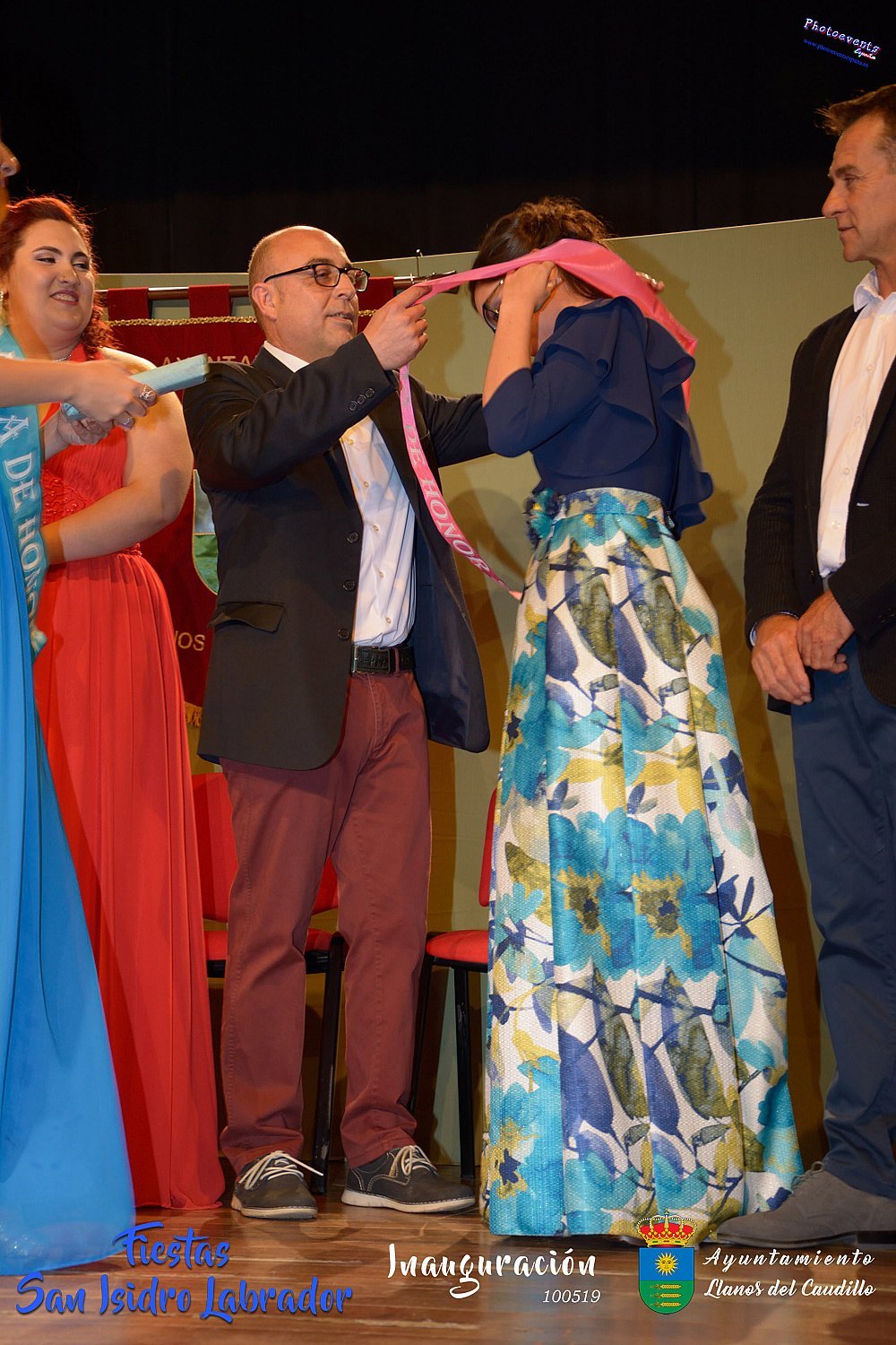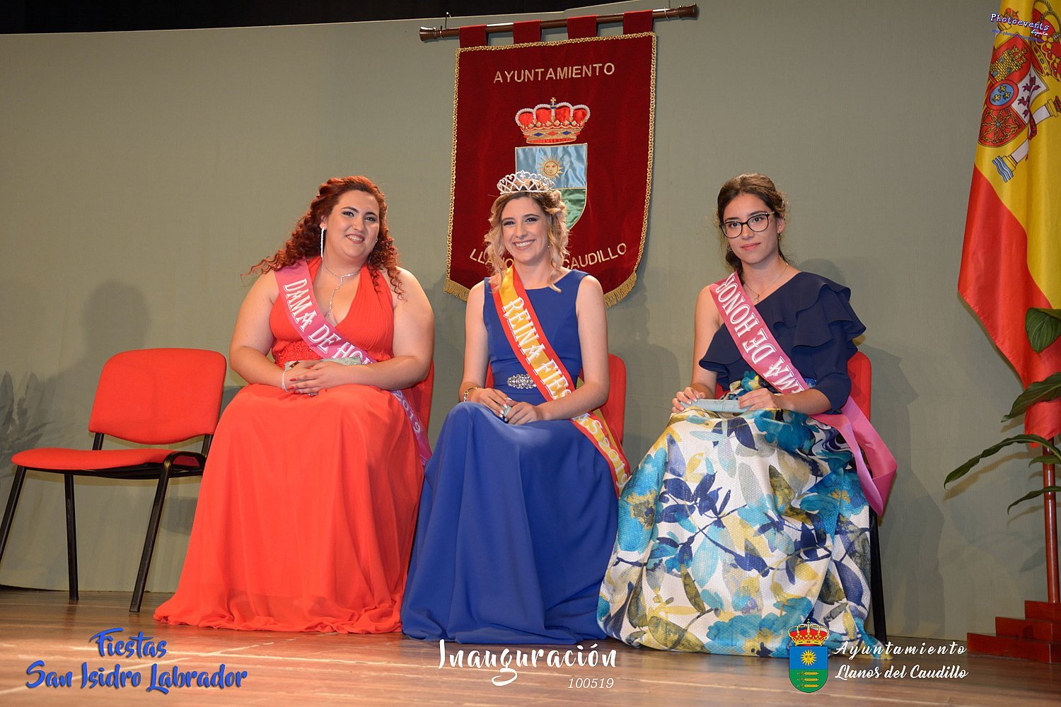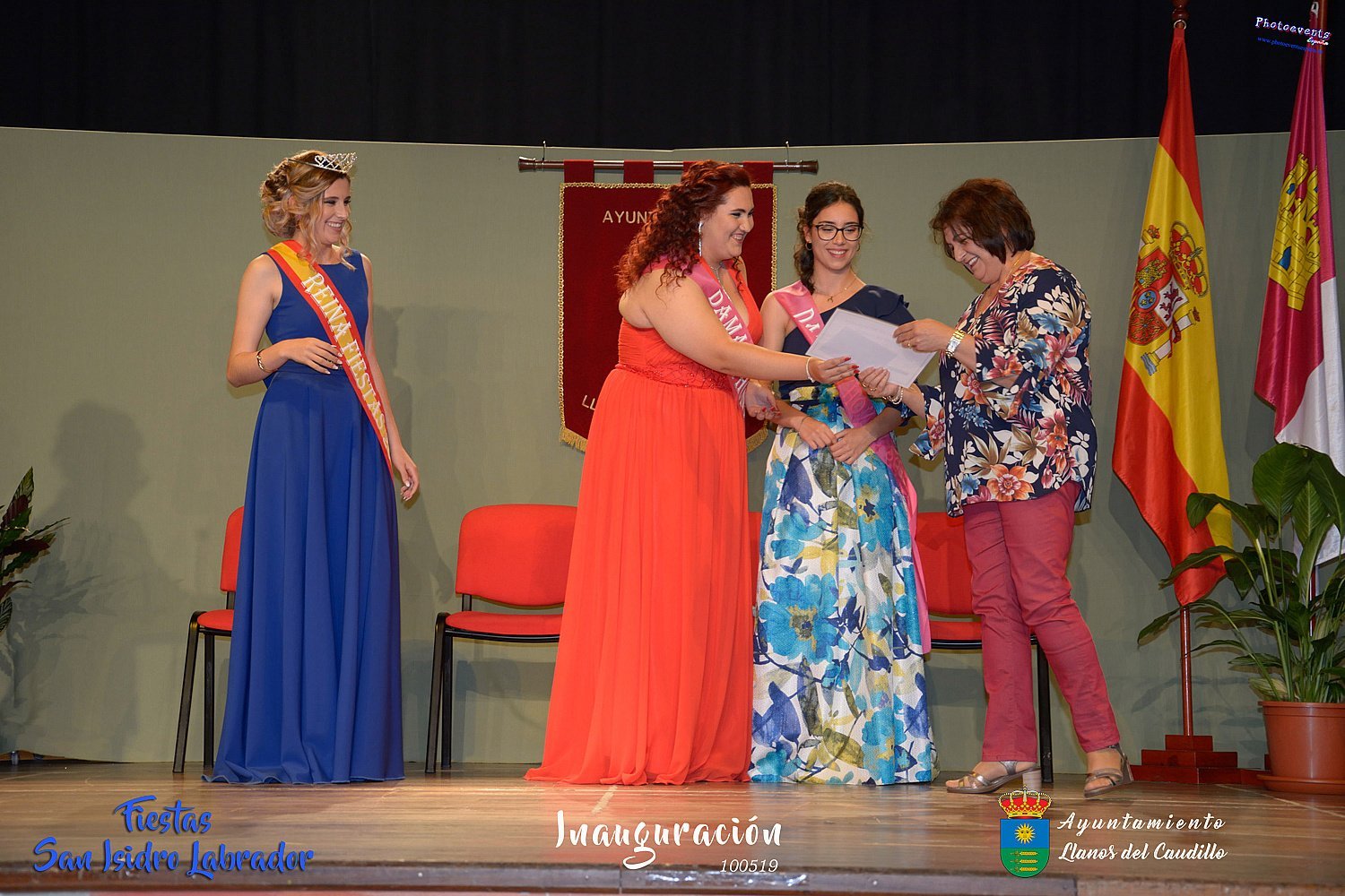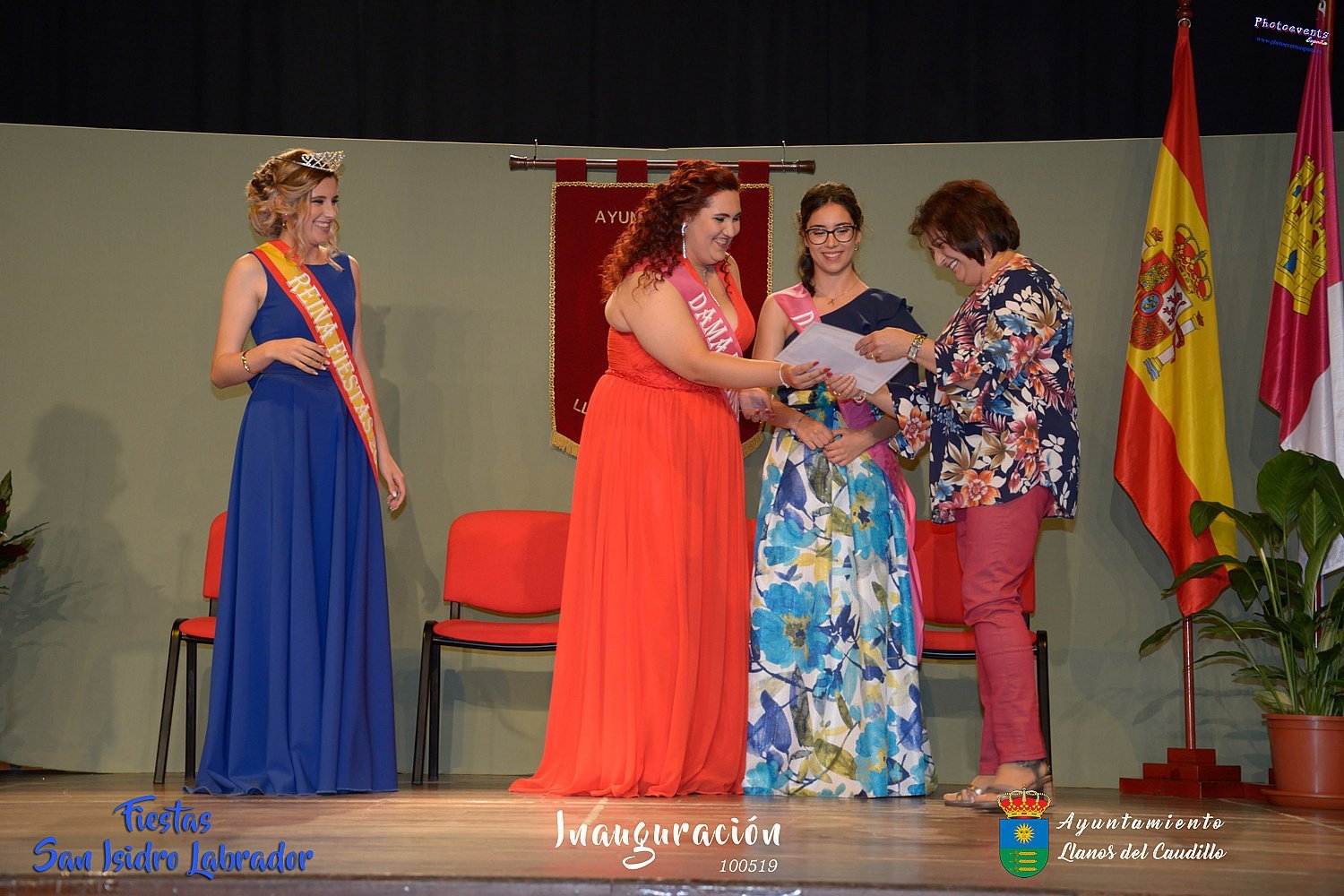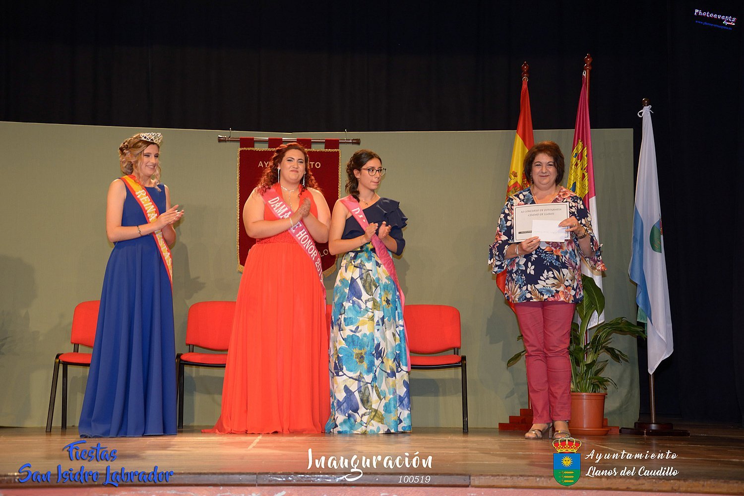 Fotografías realizadas durante la inauguración de las fiestas de San Isidro Labrador 2019 , en el cual se proclama a la nueva corte de reina y damas de honor , que en este año han sido para Vera Ruiz-Peinado y Nerea Molina como damas de honor 2019 y Nuria González como reina de las fiestas 2019. También se hace entrega de los premios de Fotografía a Marina Romero y Beatriz Gil. como. Este año como pregonero le tocaba al que durante muchos años a cuidado de la salud de todos los habitantes de Llanos Don José Luis Gómez Forner, médico de cabecera.