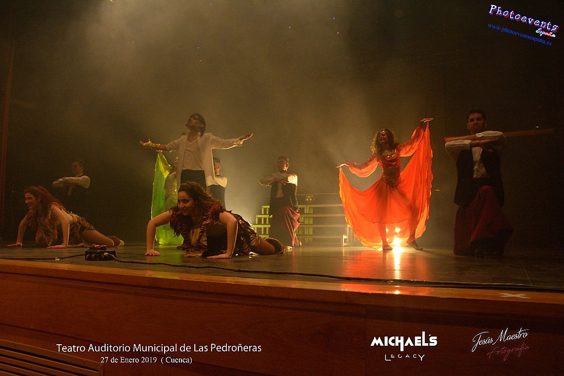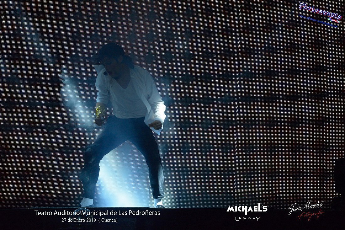 Fotografías realizadas durante el estreno del nuevo espectáculo Michael´s Legacy a cargo de la Jackson Dance Company, un espectáculo distinto al anterior y renovado en su contenido , con nuevos números musicales y coreografías, nueva iluminación , nueva vestimenta de Michael Jackson y el resto de los bailarines y bailarinas, un espectáculo digno de ver y poder disfrutar. Si vistes el anterior espectáculo Michael´l Legacy, este seguro que te dejara sin palabras y con ganas de volverlo a ver y disfrutar. Dicho espectáculo tenía lugar el pasado día 27 de Enero en dos sesiones con un lleno absoluto del Teatro auditorio de la localidad de Las Pedroñeras en la provincia de Cuenca.