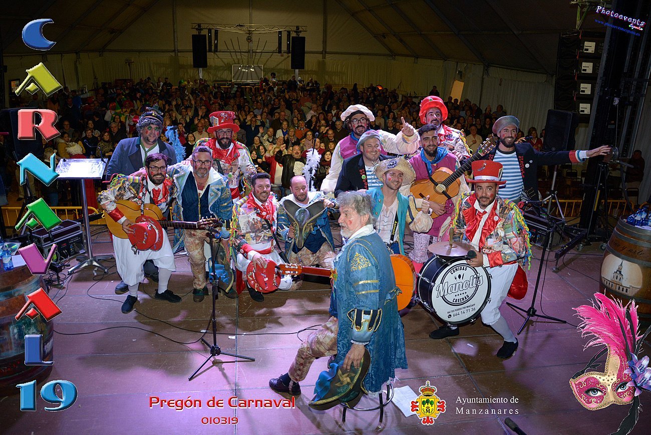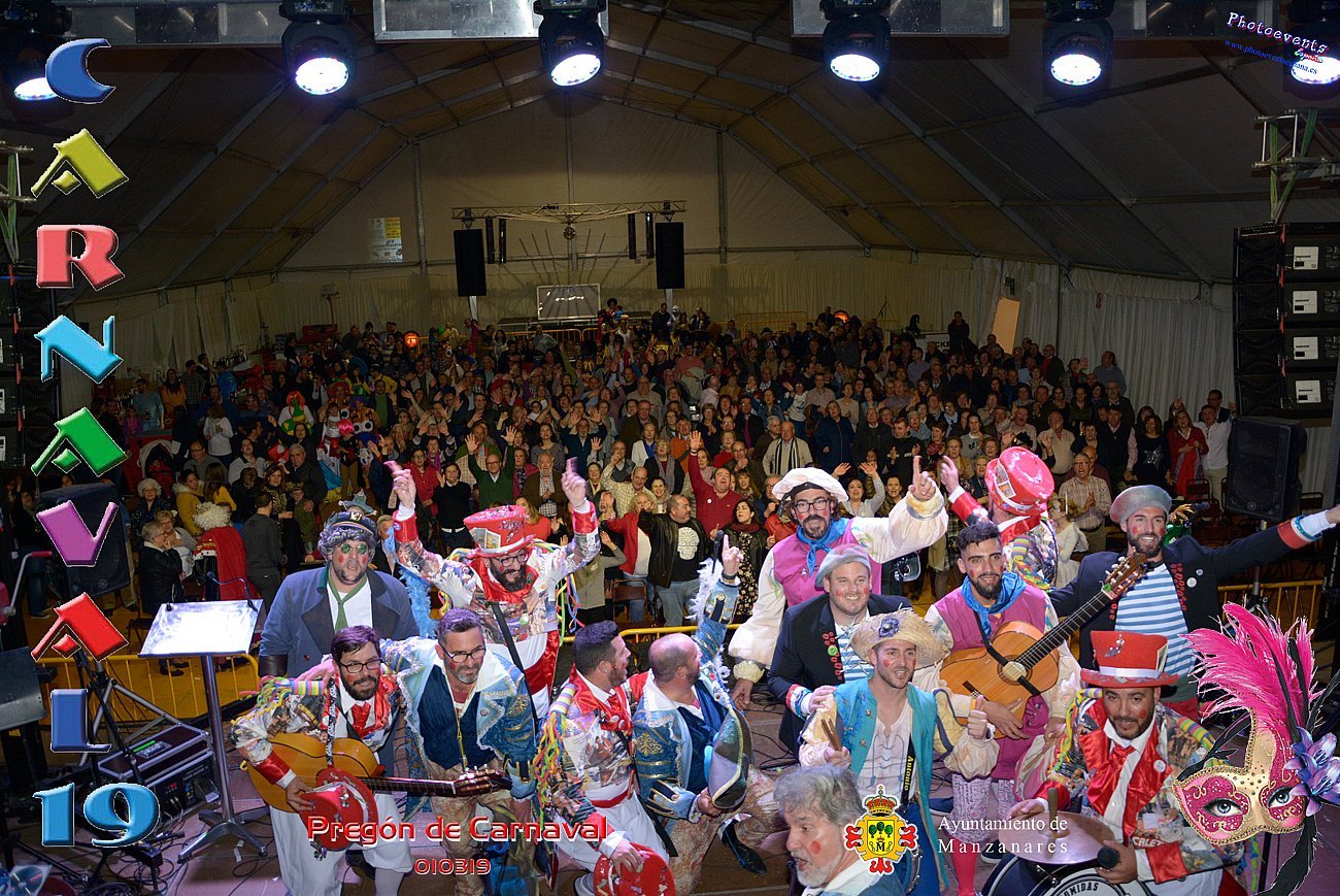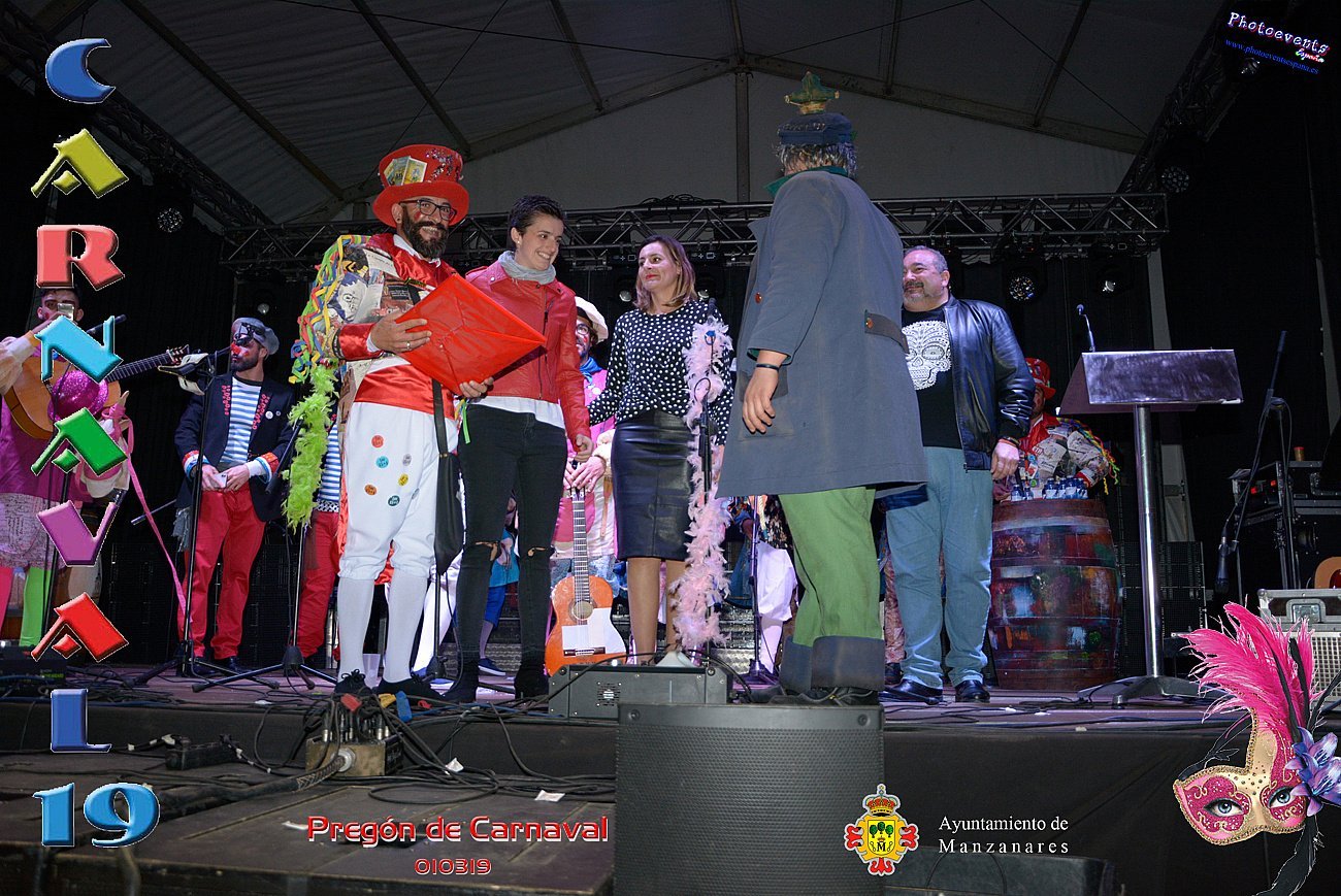 Fotografía realizadas durante el pregón de Carnaval 2019 , corriendo este año a cargo de la Comparsa de Tarifa , que tenía lugar la pasada noche del viernes 1 de Marzo en la carpa municipal La Pergola. Enclavandose dentro de las fiestas de Carnaval que desde la concejalía de Fiestas a cargo Esther Nieto-Marquez se han organizado en la localidad de Manzanares, Ciudad Real.