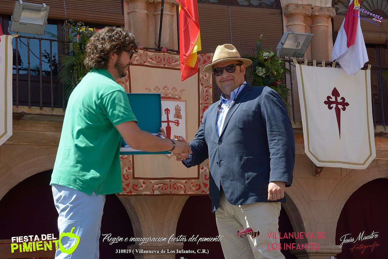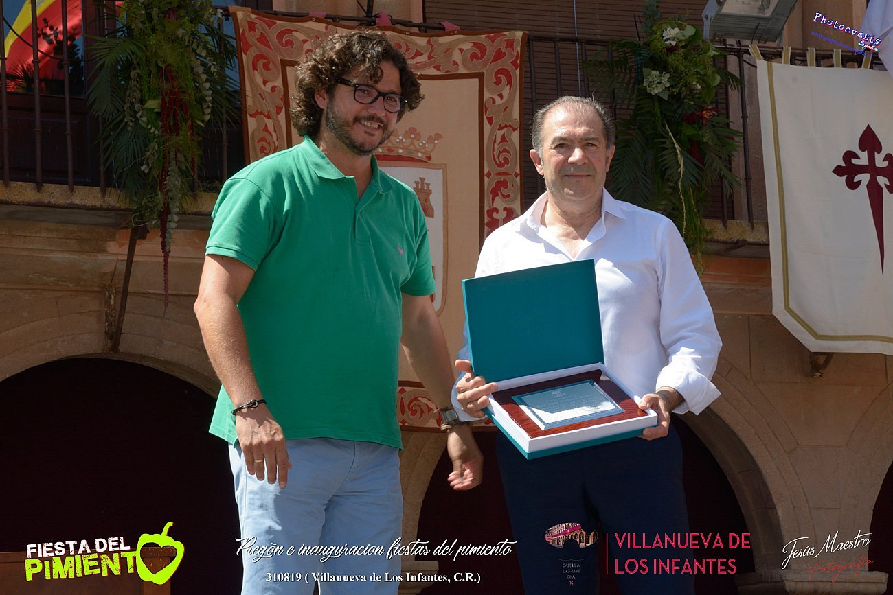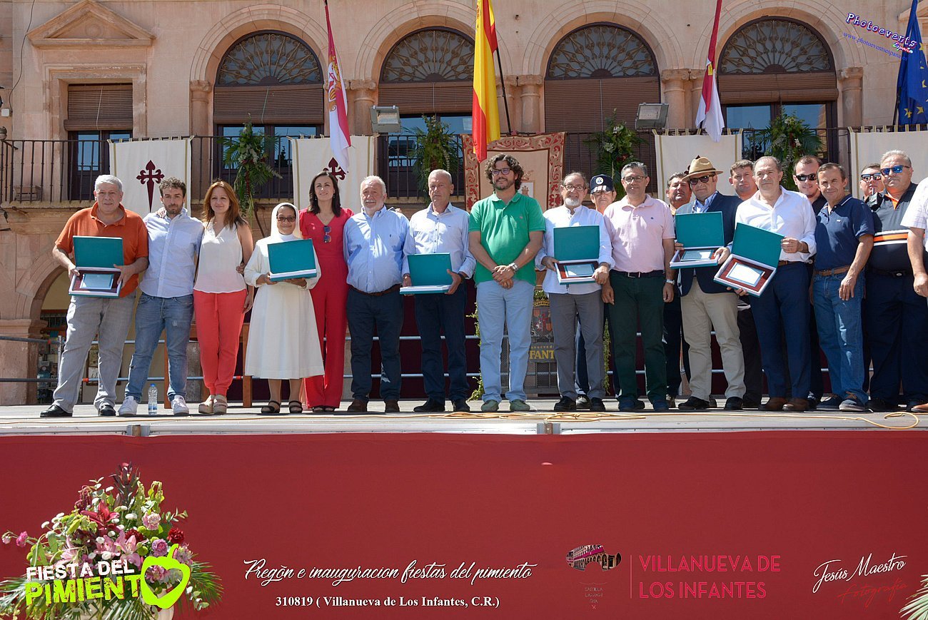Fotografías realizadas con motivo del pregón e inauguración de las Jornadas del Pimiento de Villanueva de los Infantes, que este año llegan como Fiesta de Interés Turístico Regional. Un acto en que se han entregado las distinciones que la Asociación para el Desarrollo Turístico y de las Empresas del Campo de Montiel (Turinfa), otorga cada año a aquellas organizaciones y personalidades que han destacado por su labor o por su trayectoria profesional. El acto tenía lugar en la mañana del 310819 en la Plaza del ayuntamiento de la localidad de Villanueva de Los Infantes , Ciudad Real.