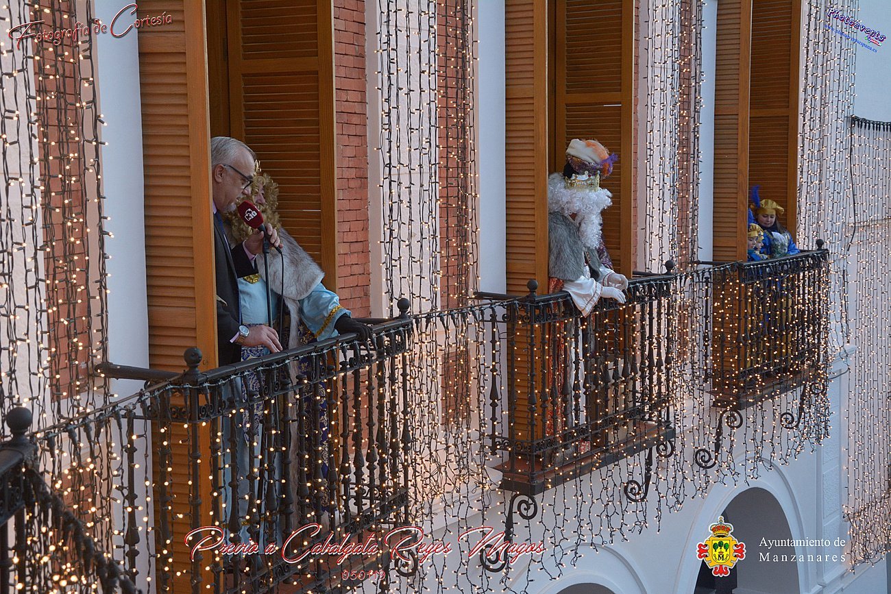 Previo a la cabalgata de Reyes, en la plaza de la constitución donde fueron recibidos por el alcalde y miembros del equipo de gobierno, saludando desde el balcon a todos los asistentes que se dieron cita a las puertas del Ayuntamiento el pasado día 5 de Enero en la Plaza de la Constitución, evento enmarcado dentro de las fiestas de Navidad 2018 que desde la concejalía de fiestas a cargo de Esther Nieto Marquez ha confeccionado en la localidad de Manzanares, Ciudad Real.