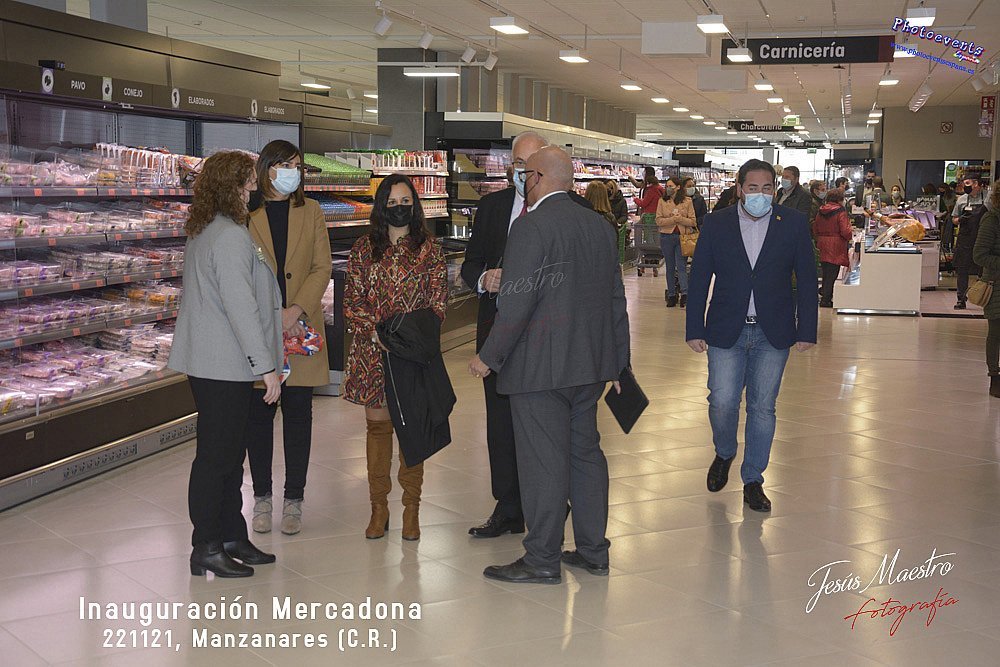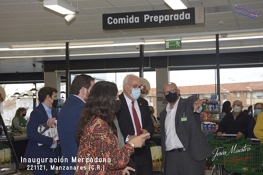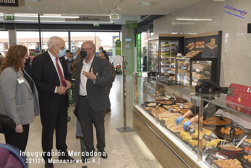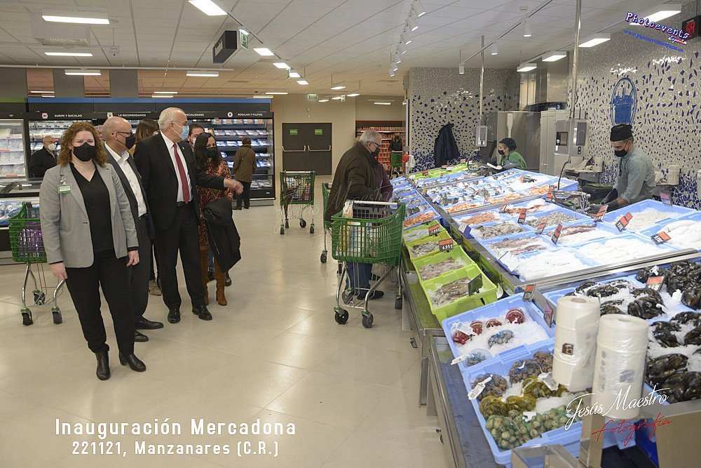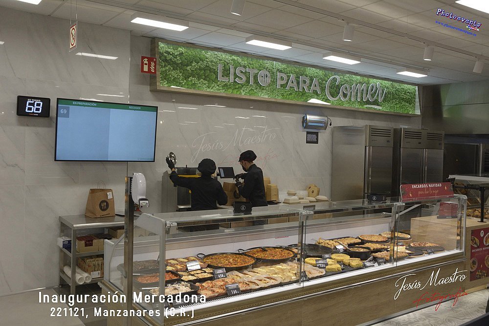 Fotografía con motivo de la inauguración del nuevo Mercadona “Eficiente “ que la empresa ha decidido ubicar en la localidad de Manzanares, previo cierre de los otros dos centros que ya tenía. Realizando un recorrido por las distintas secciones del supermercado, encontramos como novedad la sección “Listo para comer”, donde se podrá disfrutar de platos listos para comer, que incluso se pueden comer en el propio centro. Dicho acto tenía lugar el día 22 de Noviembre en Manzanares, Ciudad Real.