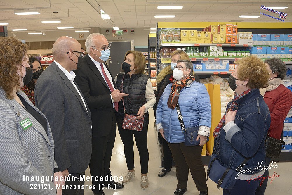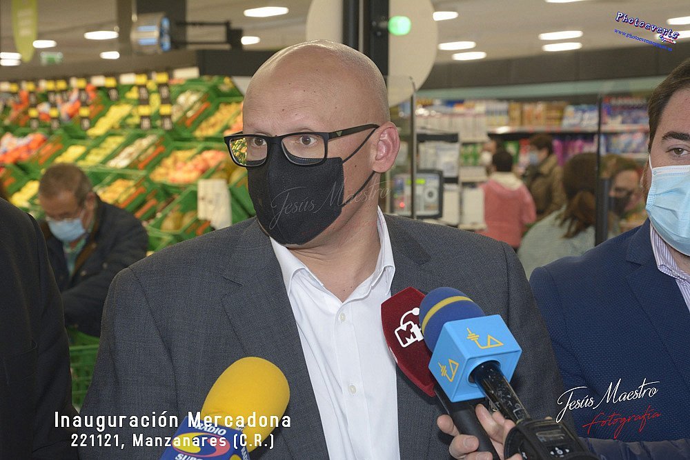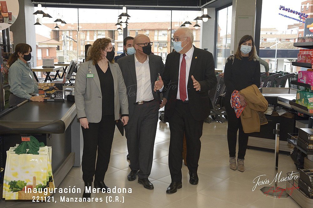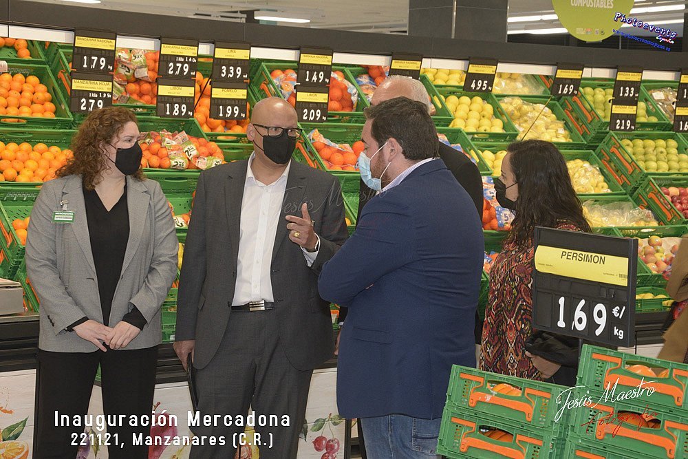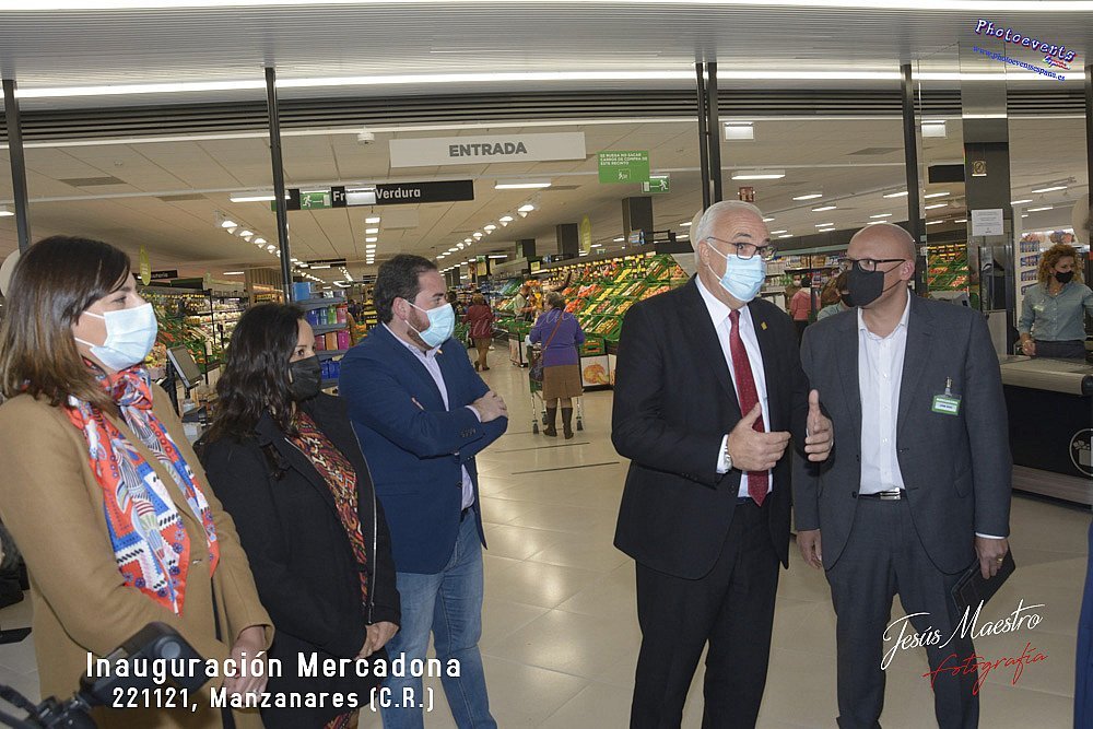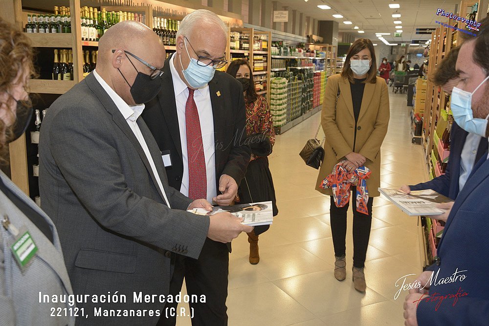 Fotografía con motivo de la inauguración del nuevo Mercadona “Eficiente “ que la empresa ha decidido ubicar en la localidad de Manzanares, previo cierre de los otros dos centros que ya tenía. Realizando un recorrido por las distintas secciones del supermercado, encontramos como novedad la sección “Listo para comer”, donde se podrá disfrutar de platos listos para comer, que incluso se pueden comer en el propio centro. Dicho acto tenía lugar el día 22 de Noviembre en Manzanares, Ciudad Real.