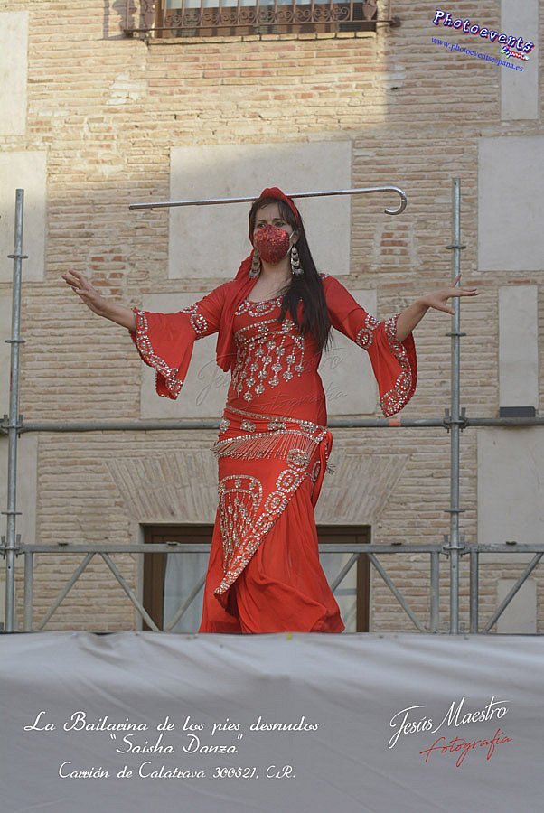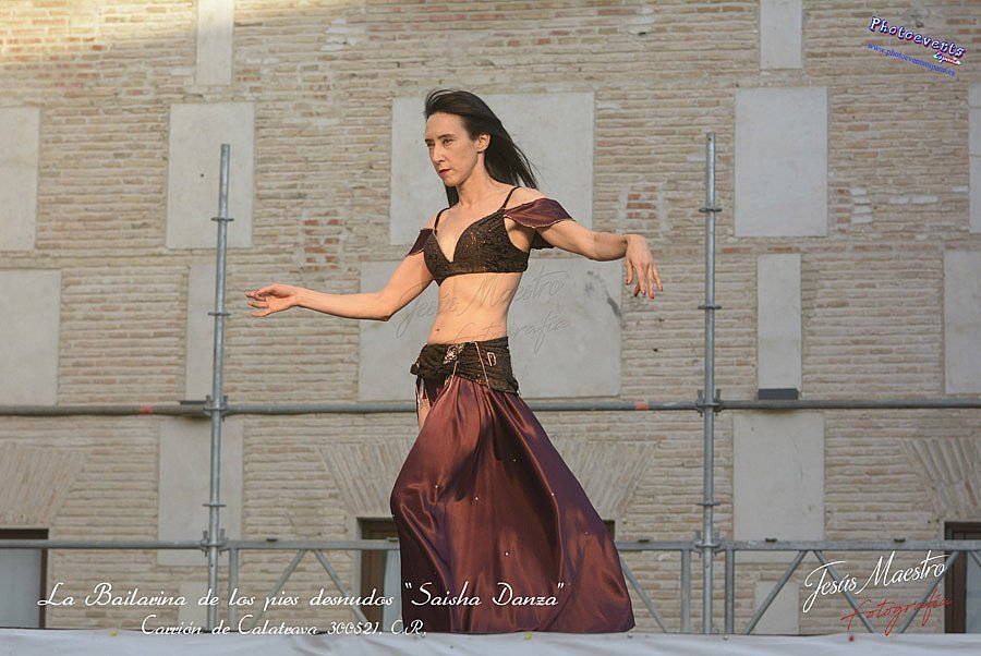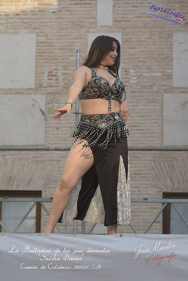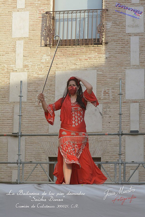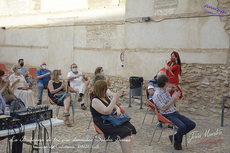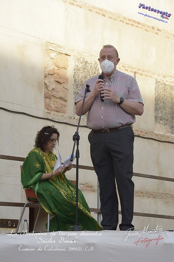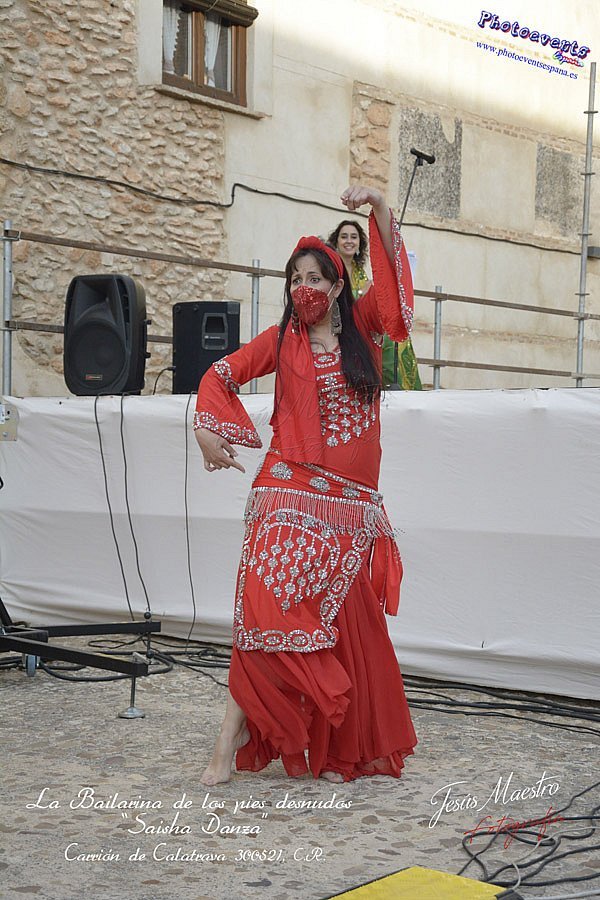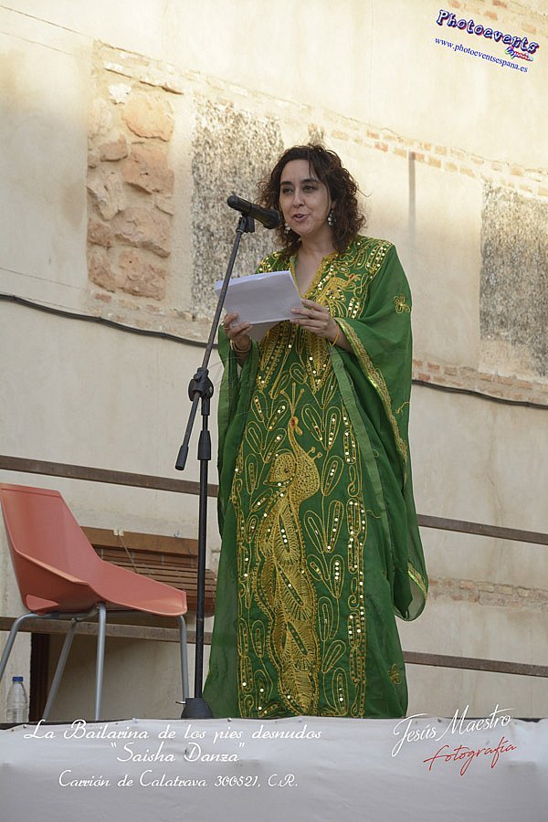 Fotografías del espectáculo  “ La Bailarina de los pies desnudos ” a cargo de Safiya Aisha, Cia. Oriental “Saisha Danza” y Elisabeth Porrero como recitadora. Dicho espectáculo tenía lugar el pasado día 300521, en el patio del centro cultural el Torreón de Carrión de Calatrava (C. Real).
