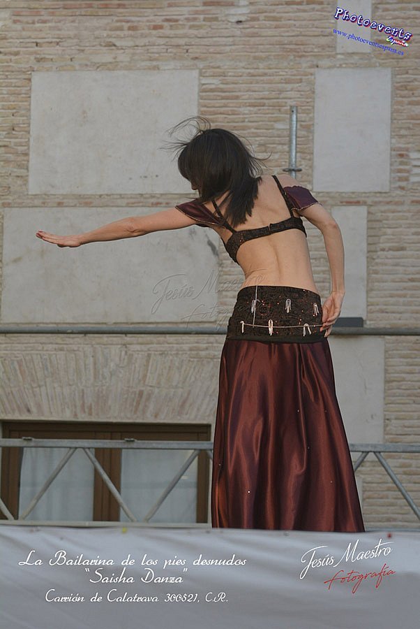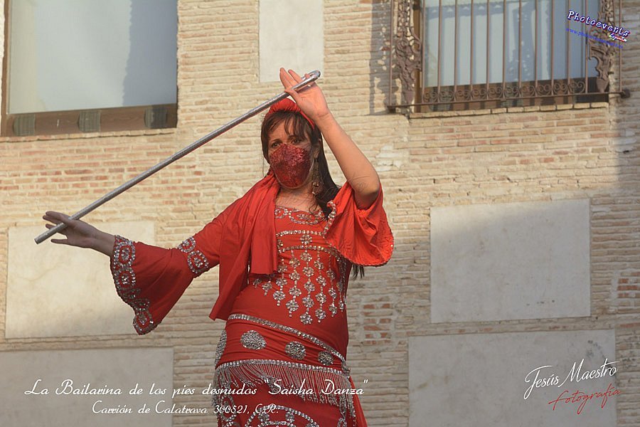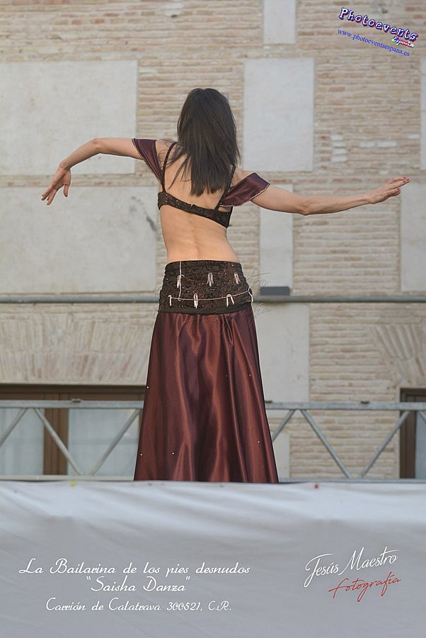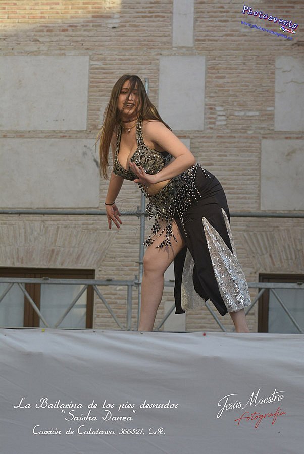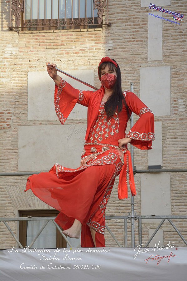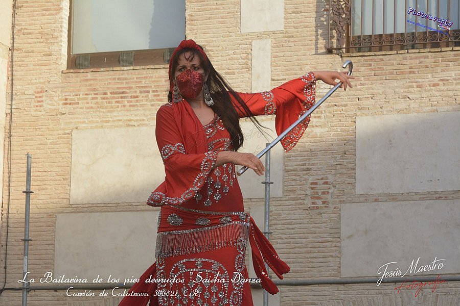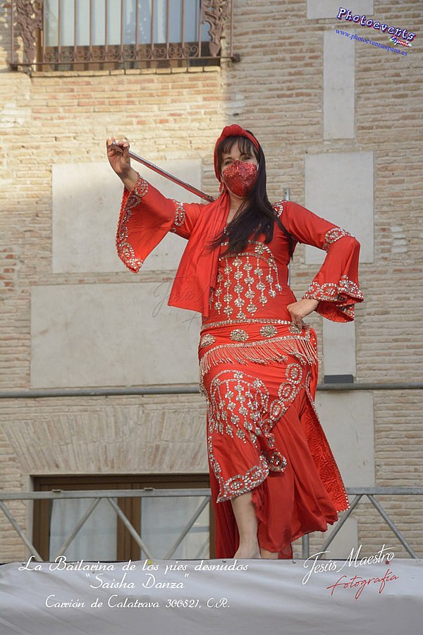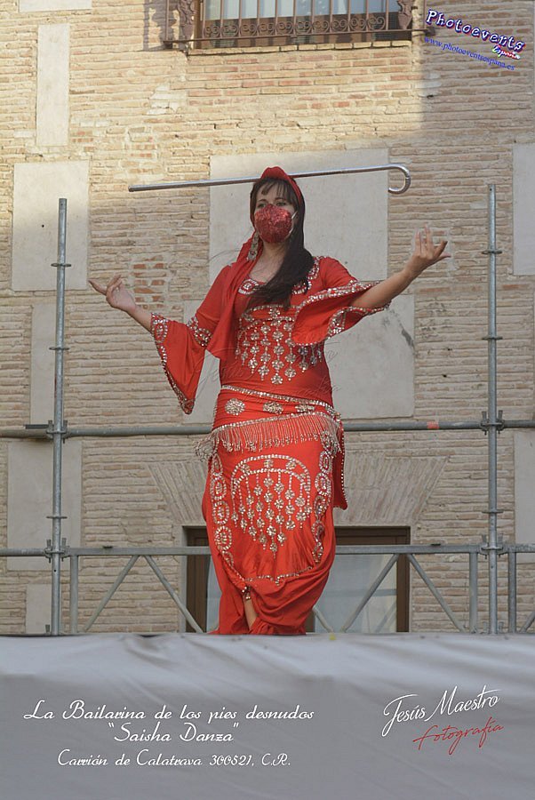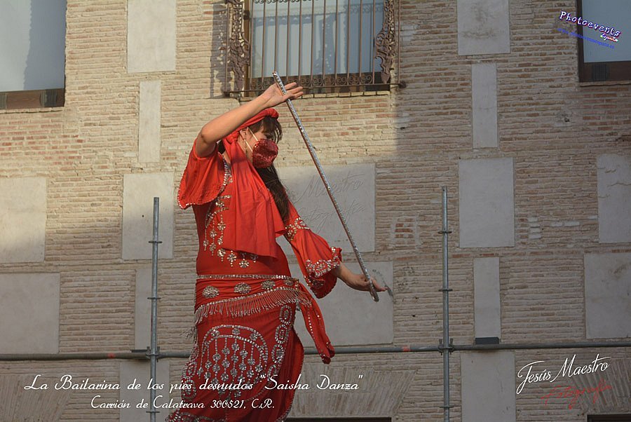 Fotografías del espectáculo  “ La Bailarina de los pies desnudos ” a cargo de Safiya Aisha, Cia. Oriental “Saisha Danza” y Elisabeth Porrero como recitadora. Dicho espectáculo tenía lugar el pasado día 300521, en el patio del centro cultural el Torreón de Carrión de Calatrava (C. Real).