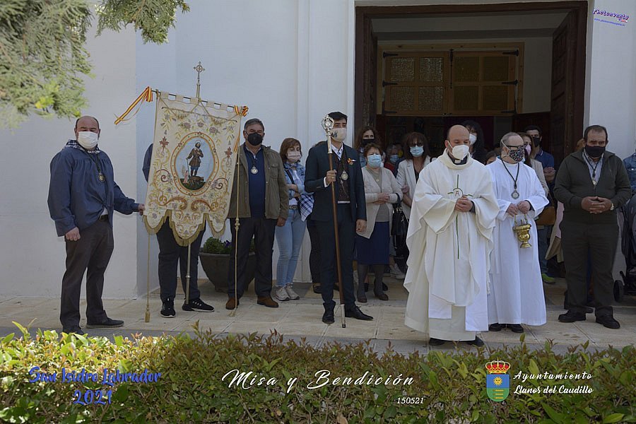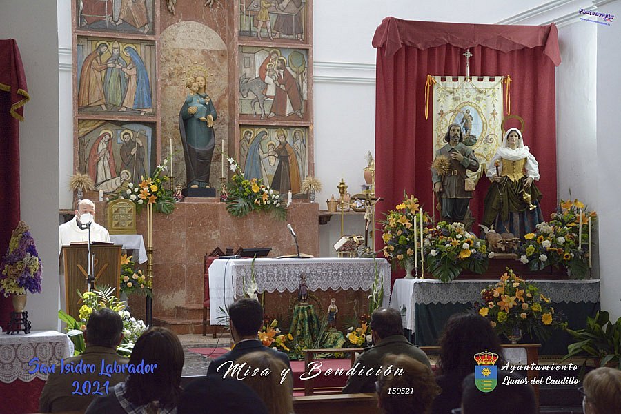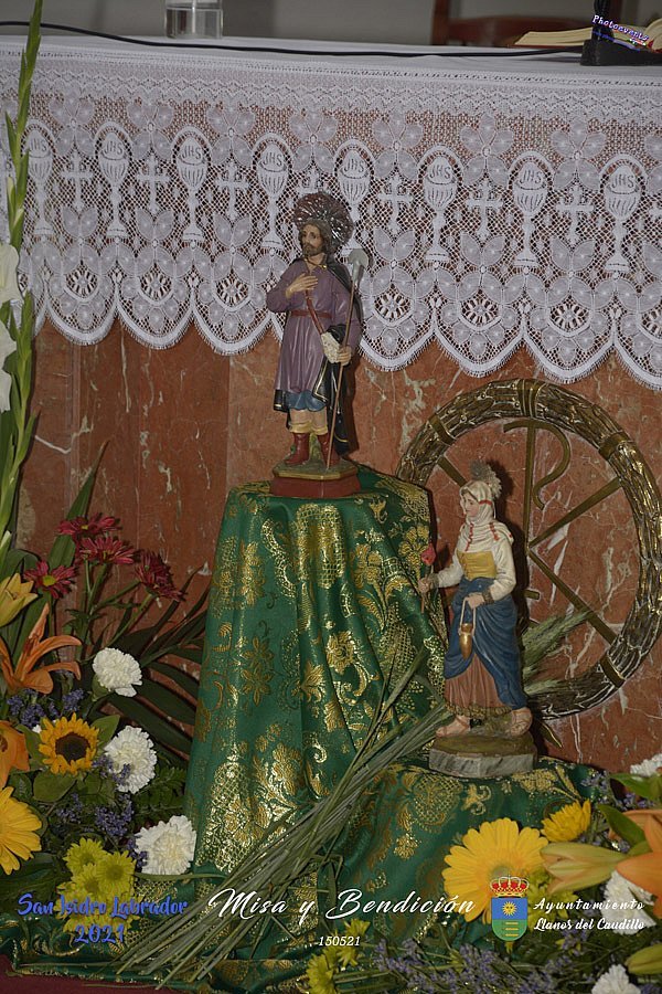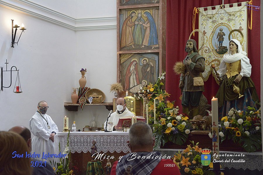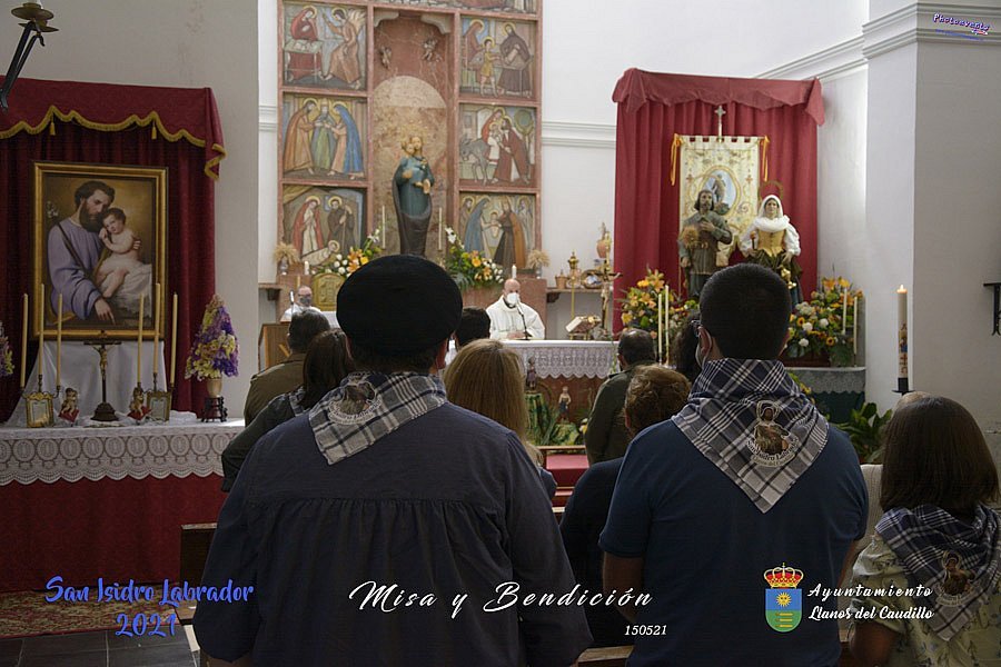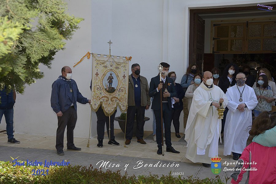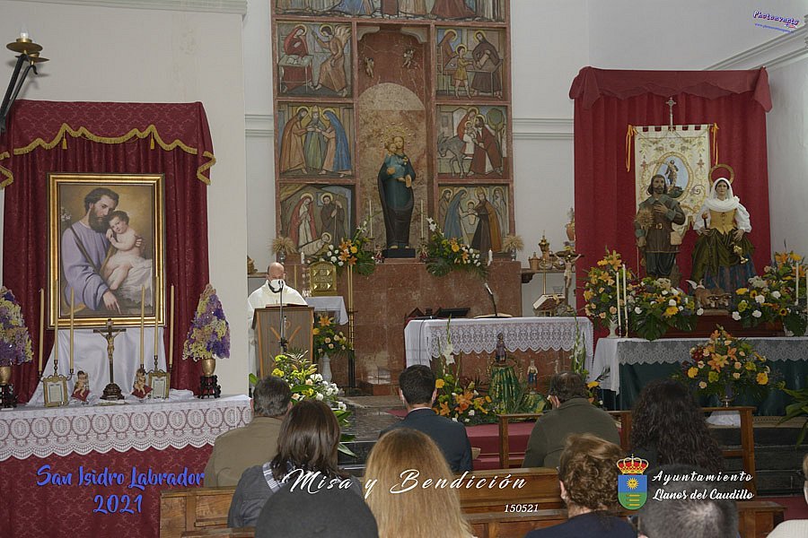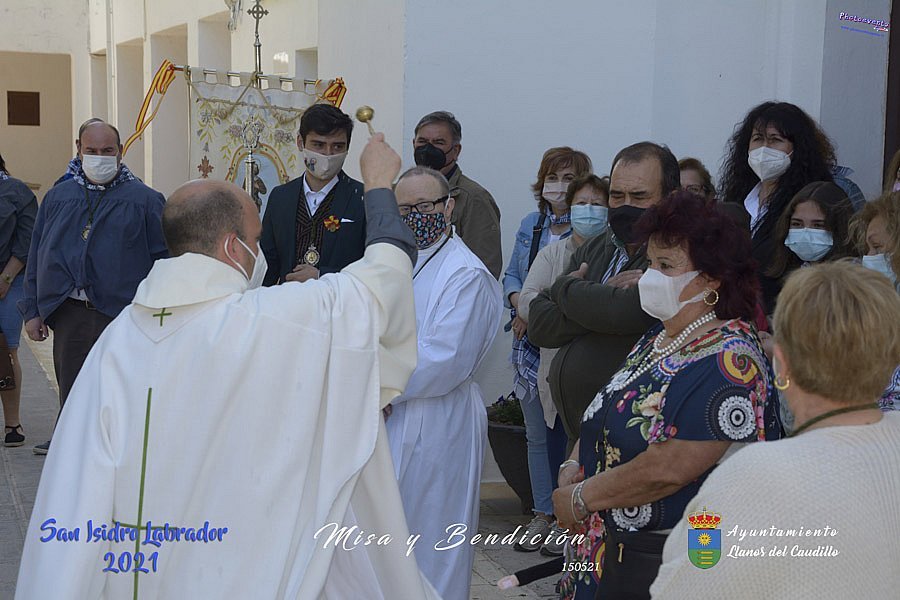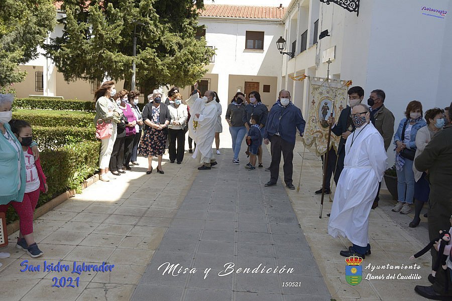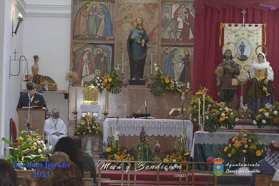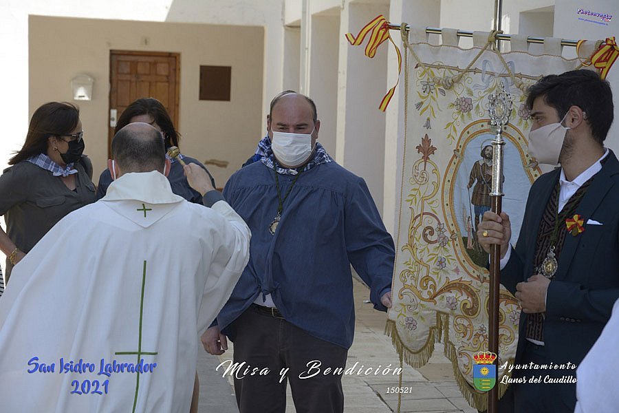Fotografías realizadas durante la misa celebrada en honor a San Isidro Labrador, tras el parón del año 2020 por motivos del Covid-19, este año se ha realizado de una forma distinta a años anteriores, con un aforo limitado y no pudiéndose realizar la tradicional bendición de los campos y su posterior Romería, este año se ha sacado el estandarte a la puerta de la iglesia para realizar una bendición simbólica en el parque situado en la plaza del Ayuntamiento de la localidad de Llanos del Caudillo, Ciudad Real.