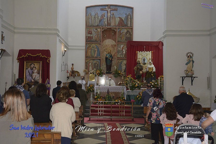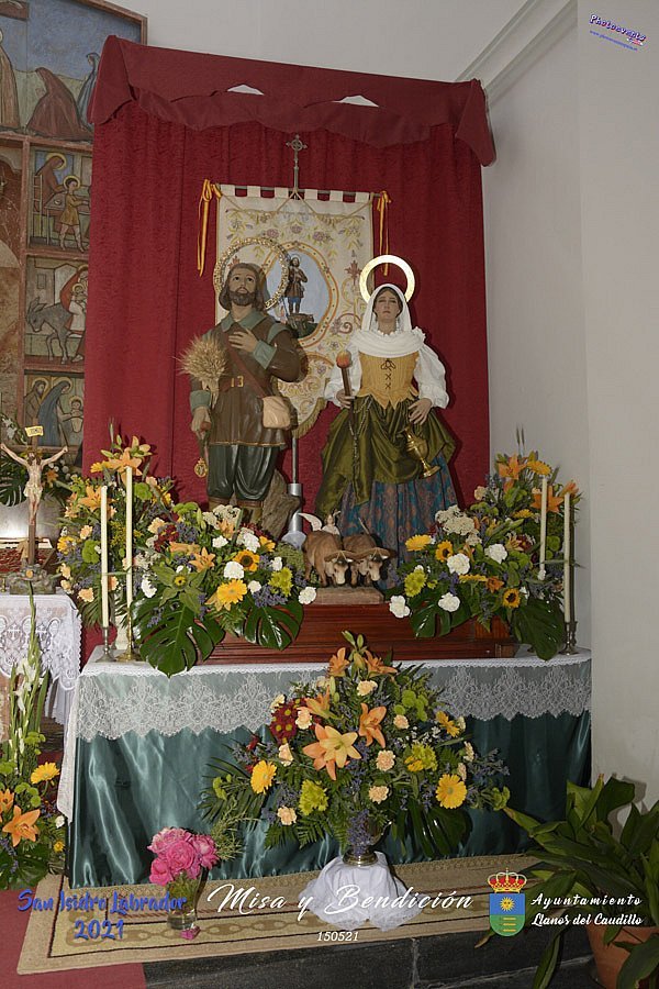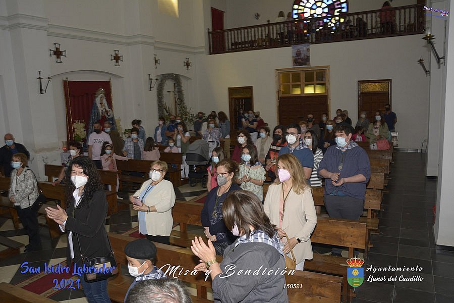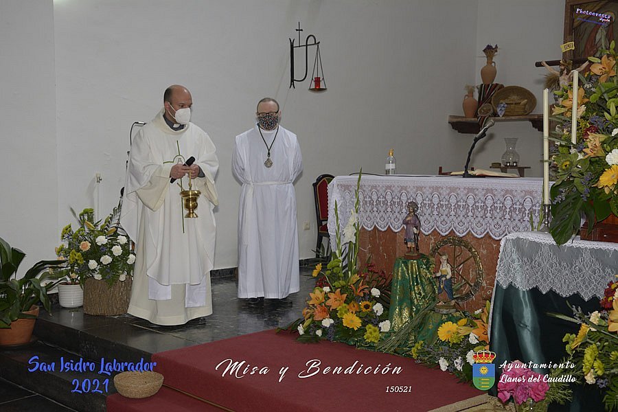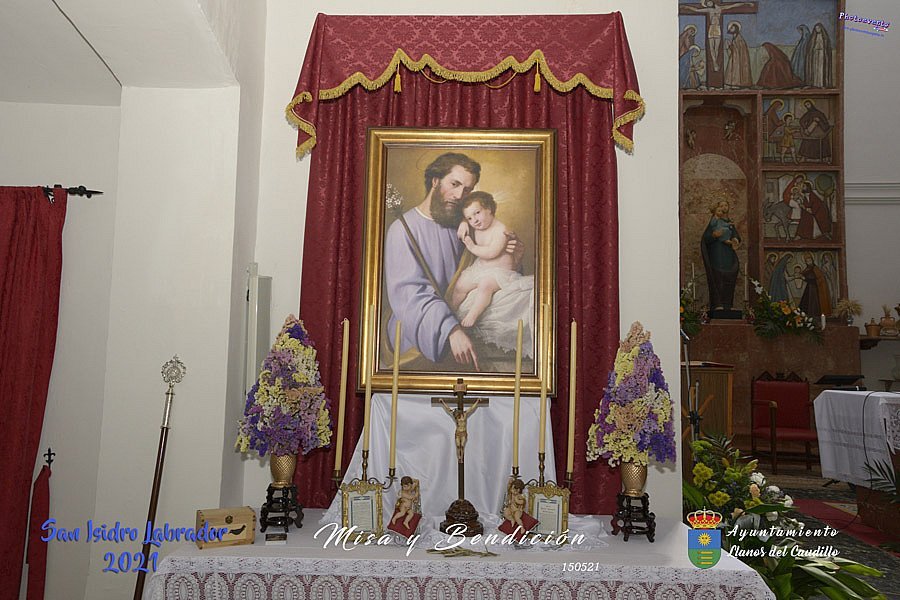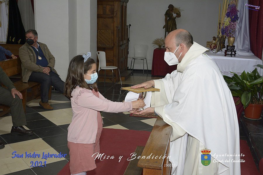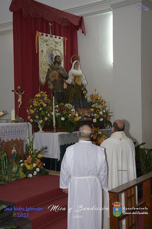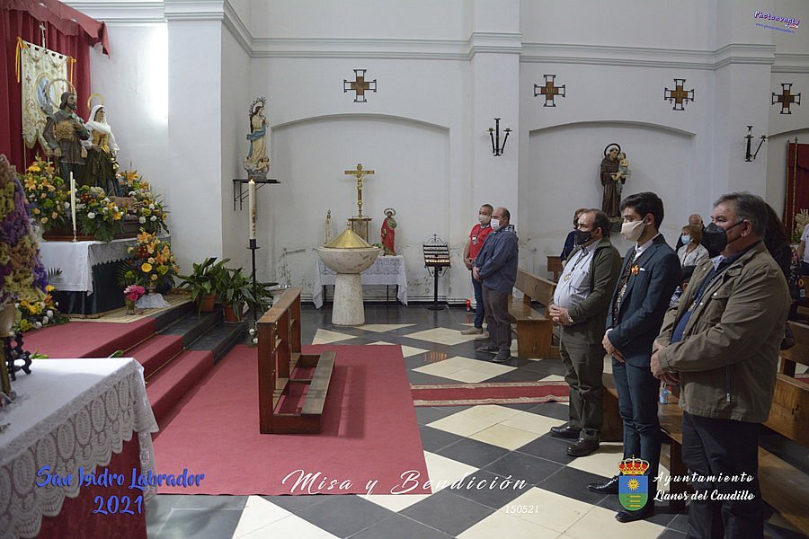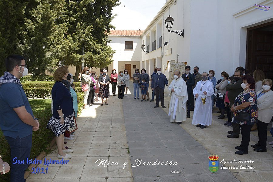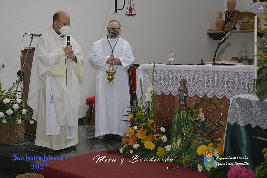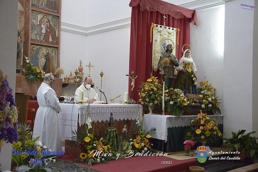 Fotografías realizadas durante la misa celebrada en honor a San Isidro Labrador, tras el parón del año 2020 por motivos del Covid-19, este año se ha realizado de una forma distinta a años anteriores, con un aforo limitado y no pudiéndose realizar la tradicional bendición de los campos y su posterior Romería, este año se ha sacado el estandarte a la puerta de la iglesia para realizar una bendición simbólica en el parque situado en la plaza del Ayuntamiento de la localidad de Llanos del Caudillo, Ciudad Real.