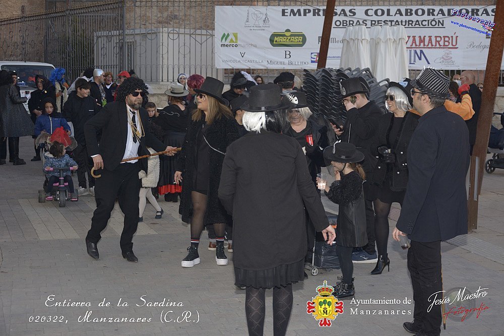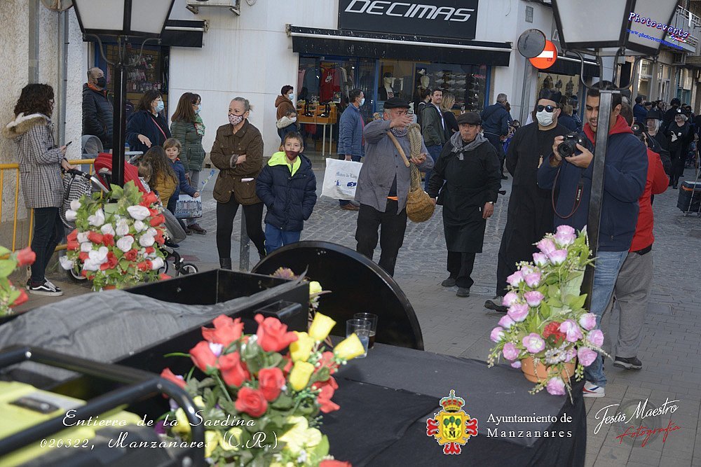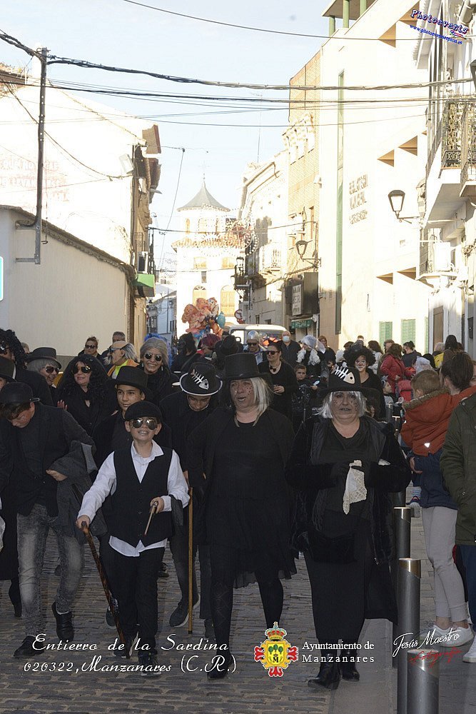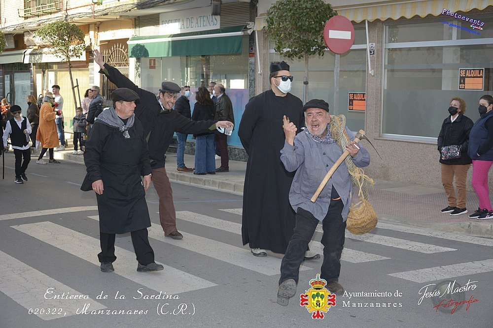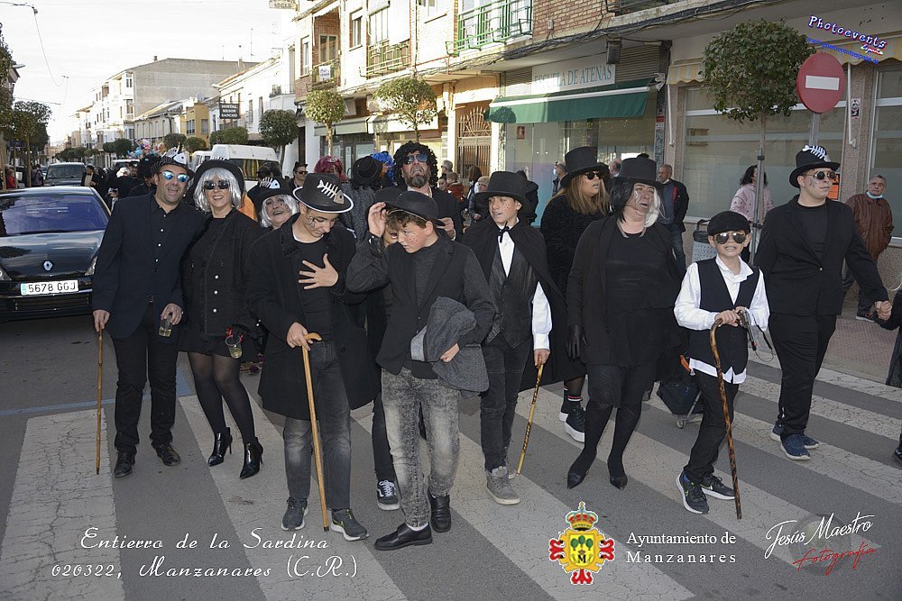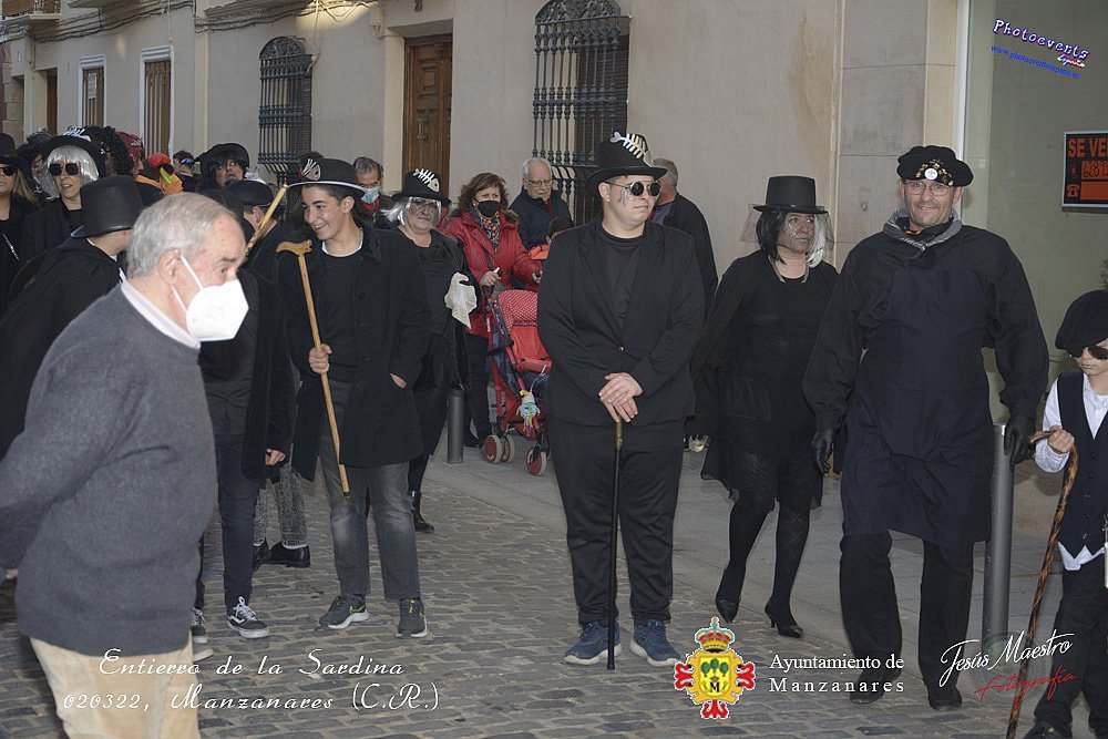 Fotografías realizadas con motivo del Entierro de la Sardina de los Carnavales 2022 , que tenía lugar el día 02 de Marzo por varias calles de la localidad , para terminar a las puertas de la caseta municipal La Pérgola donde ha sido incinerada y posterior entrega de pastas en forma de sardina. Manzanares, Ciudad Real.