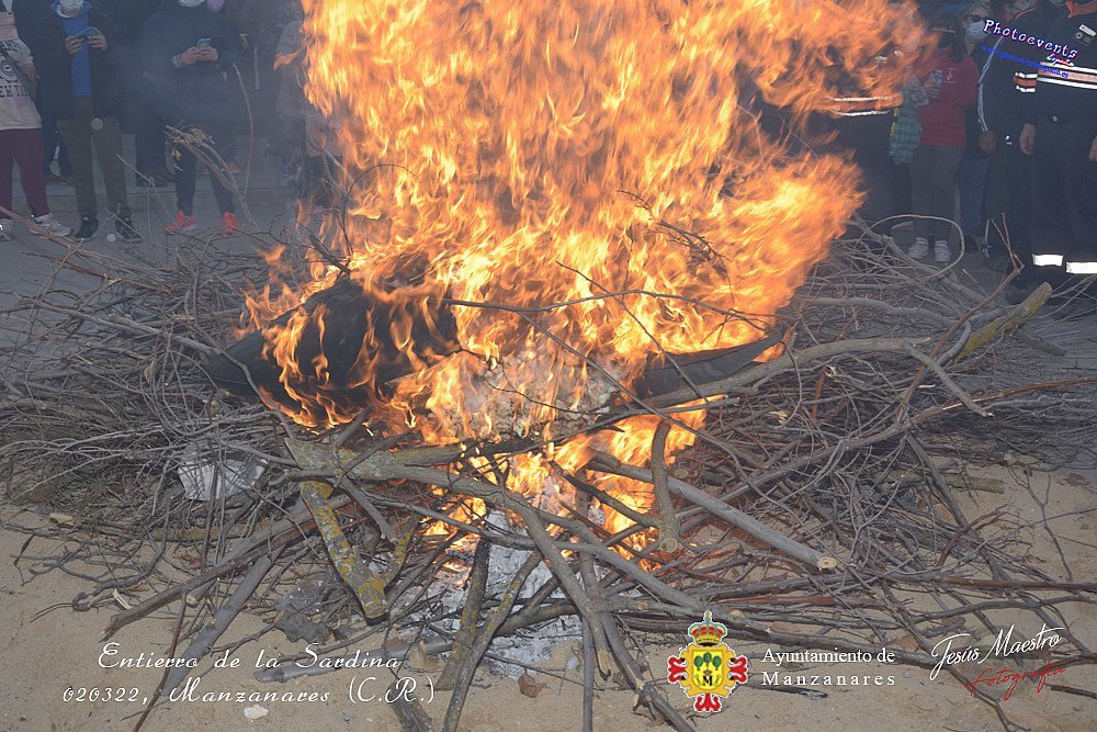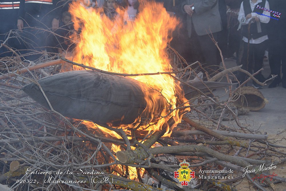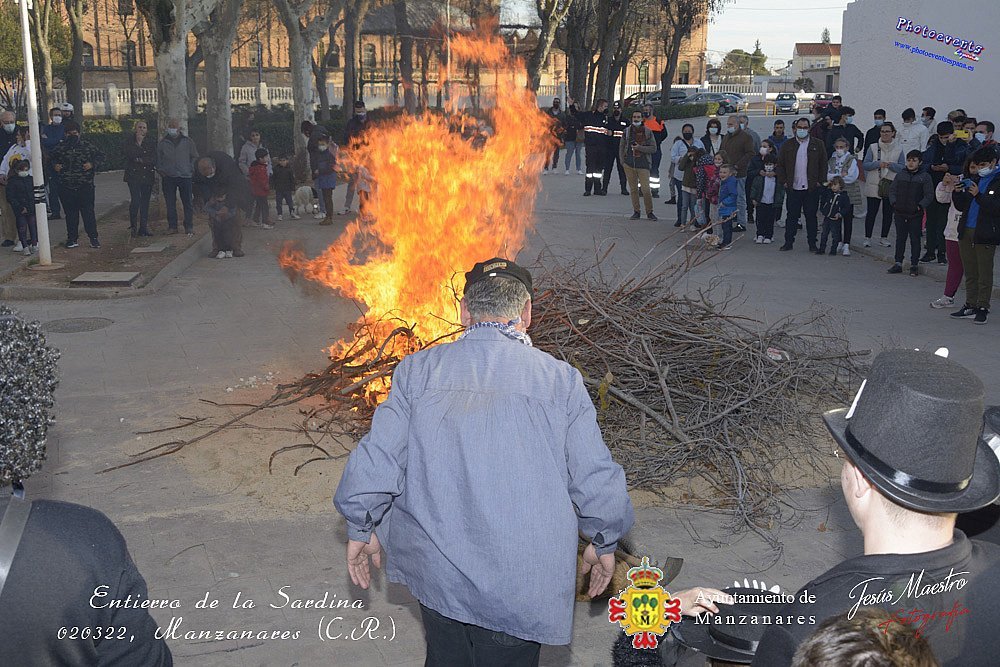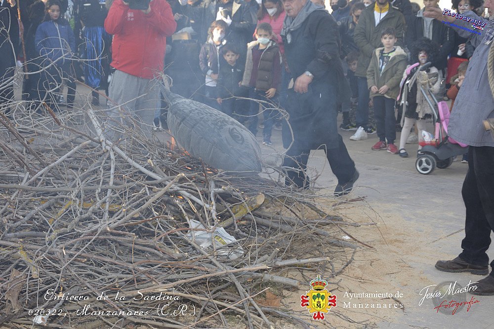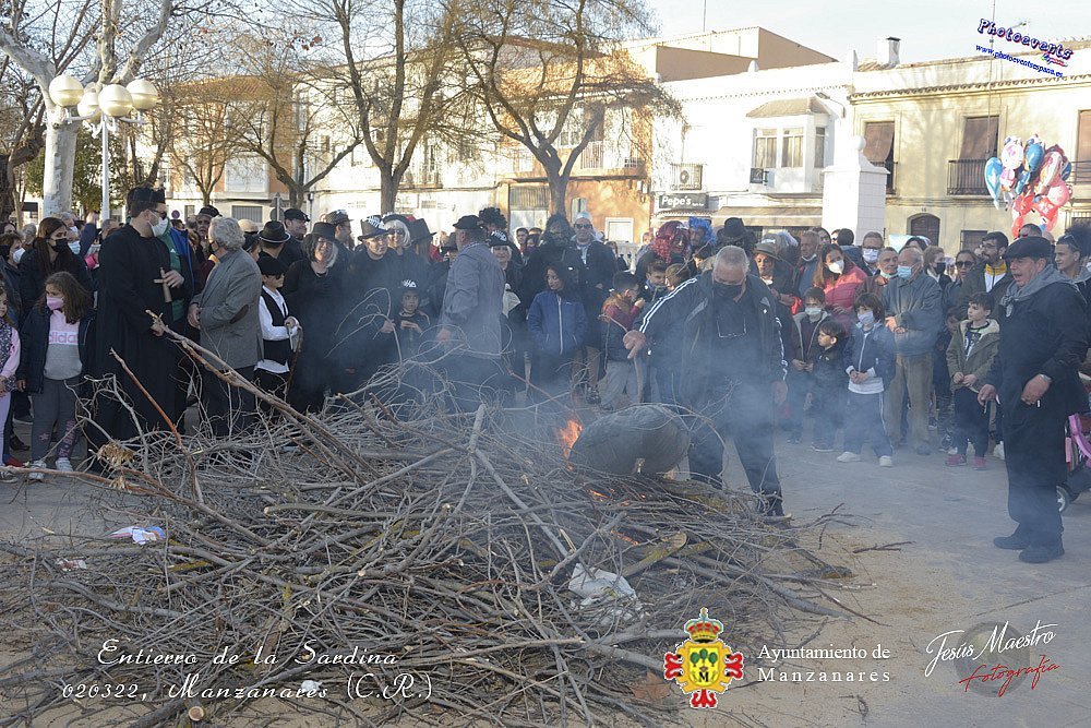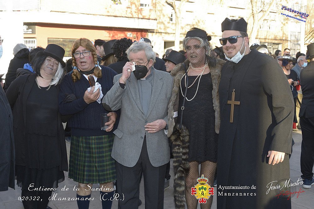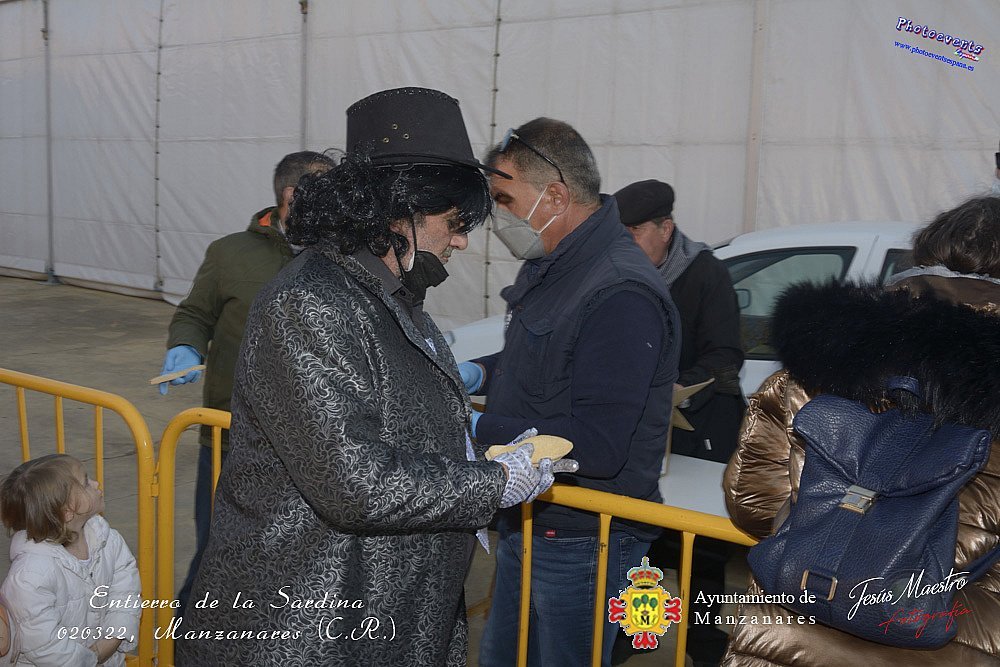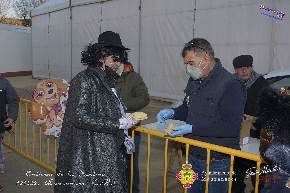 Fotografías realizadas con motivo del Entierro de la Sardina de los Carnavales 2022 , que tenía lugar el día 02 de Marzo por varias calles de la localidad , para terminar a las puertas de la caseta municipal La Pérgola donde ha sido incinerada y posterior entrega de pastas en forma de sardina. Manzanares, Ciudad Real.