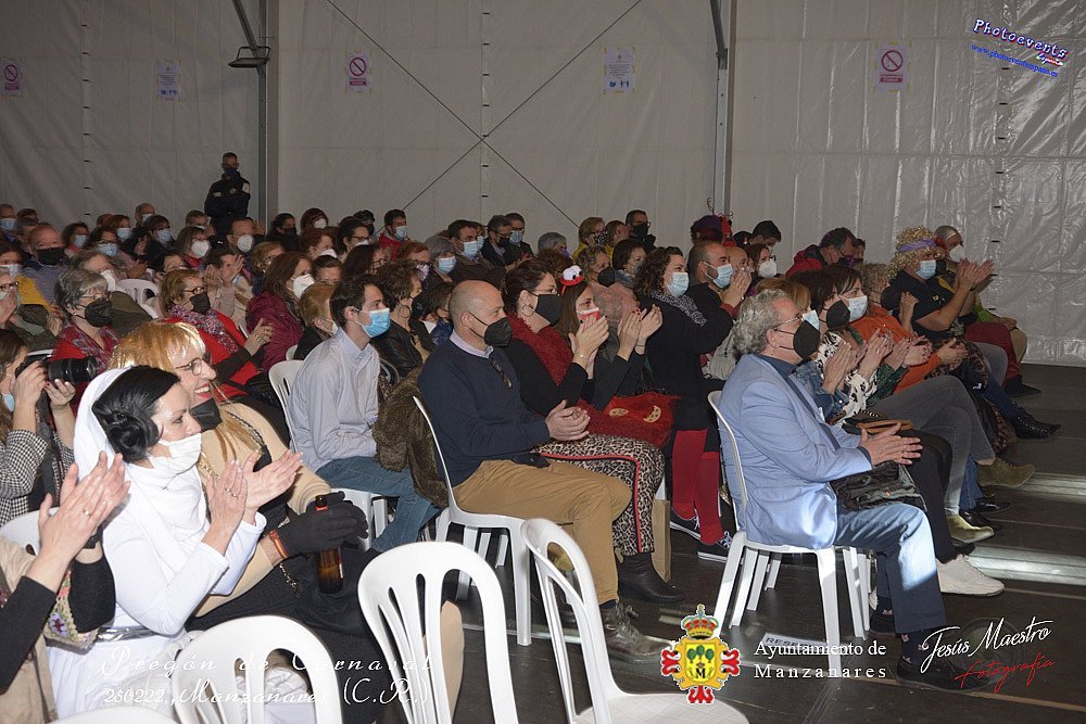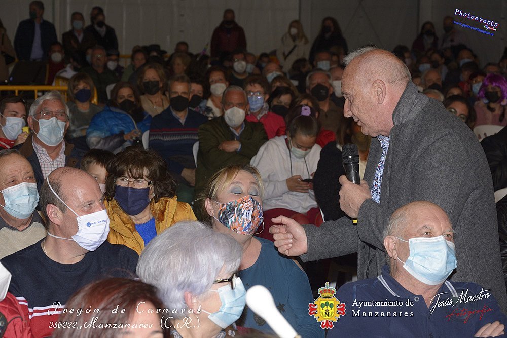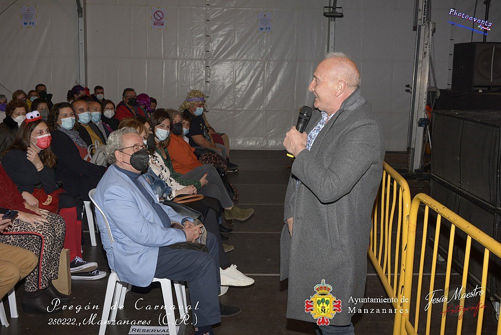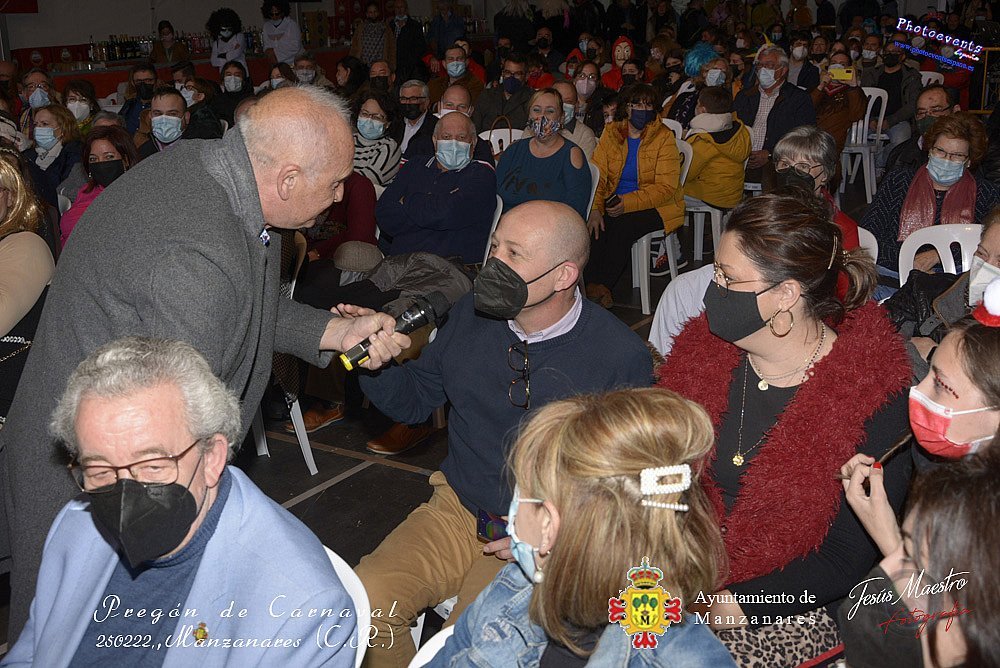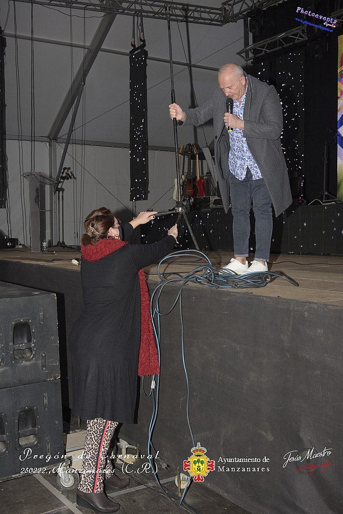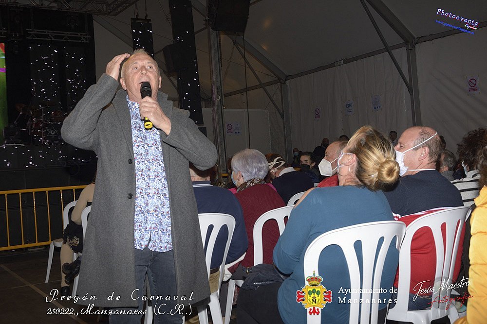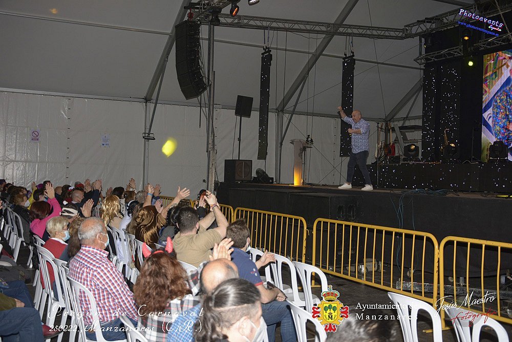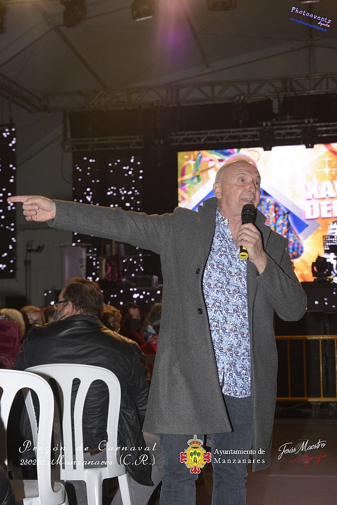 Fotografías realizadas con motivo del pregón inaugural de los Carnavales 2022 , que este año a corrido a cargo de El Sevilla y Xavier Deltell . El acto tenía lugar el pasado 25 de Febrero en la carpa instalada en la caseta municipal La Pérgola de Manzanares, Ciudad Real, Ciudad Real.