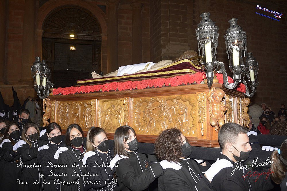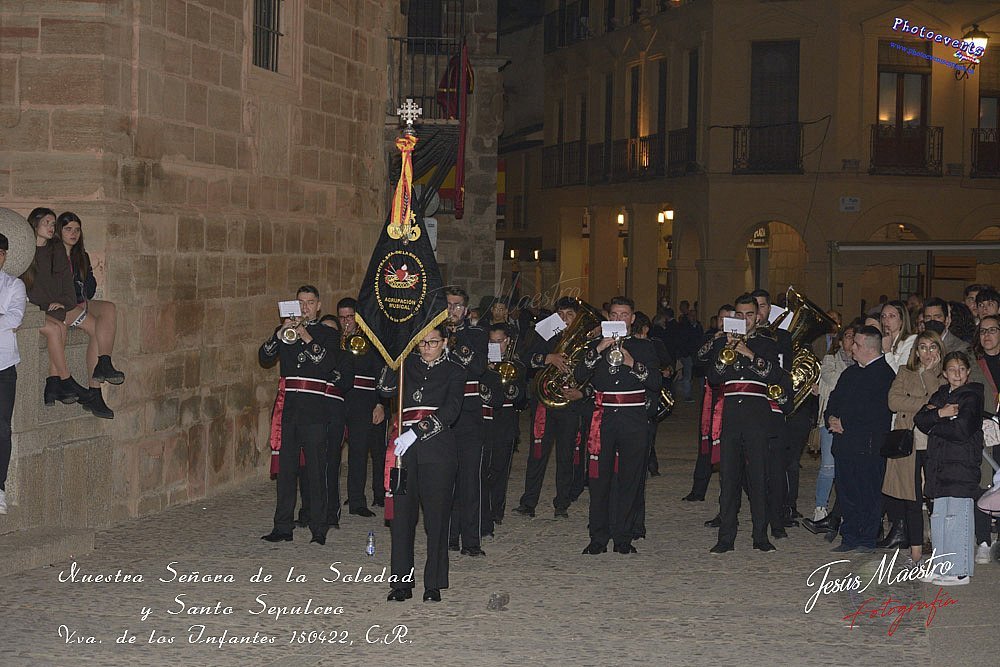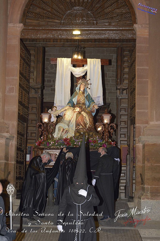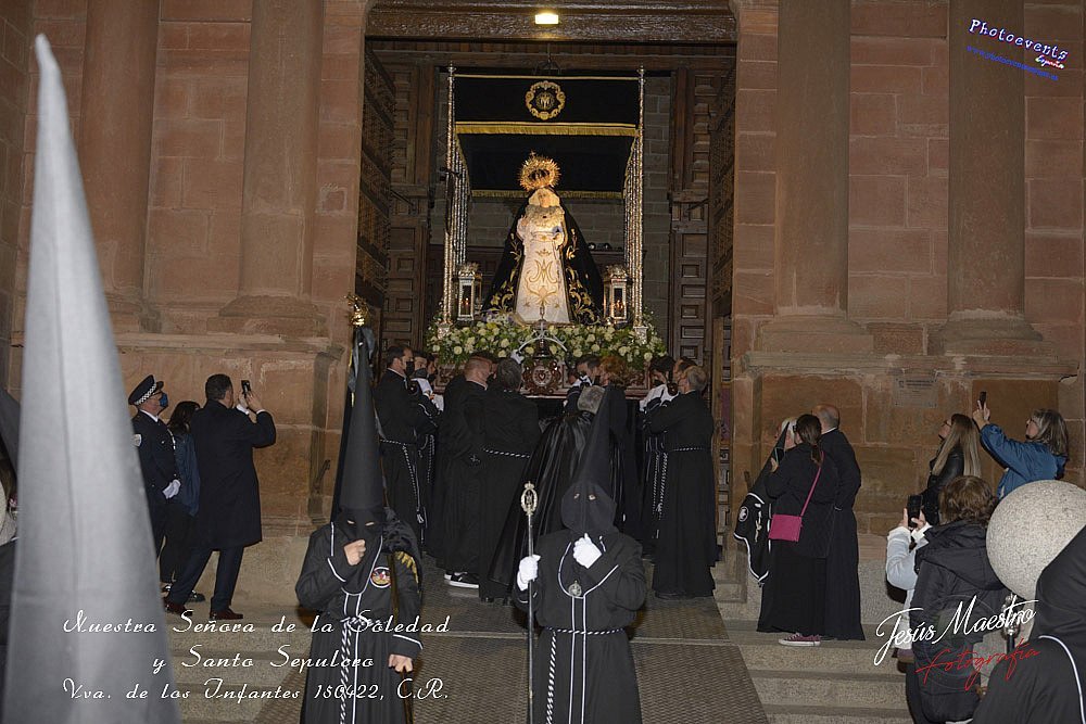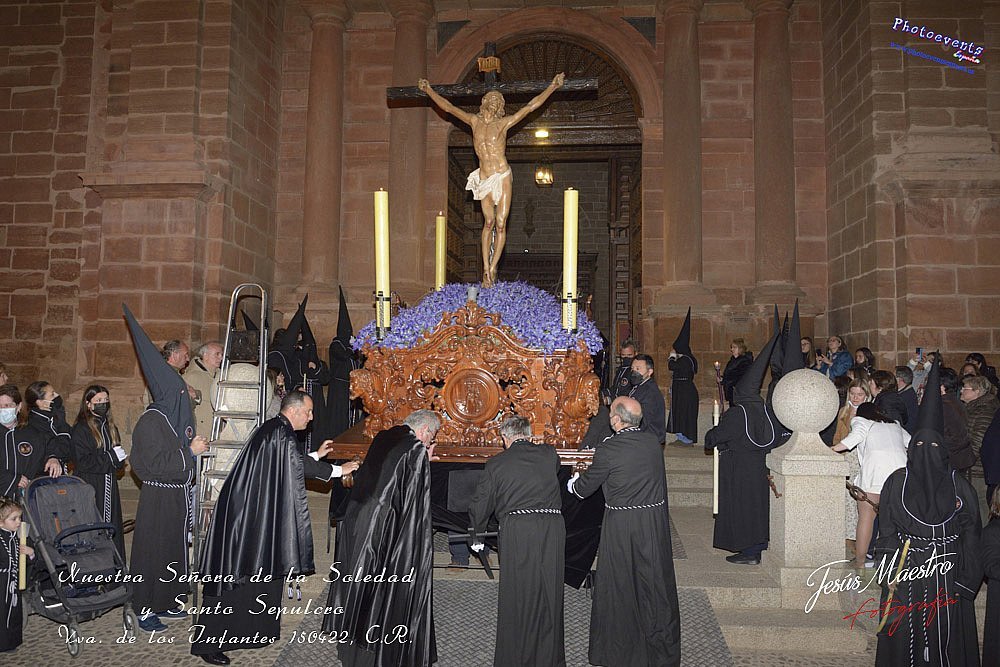 Fotografía realizada durante la procesión de la cofradía de Ntra. Señora de la Soledad y Santo Sepulcro, que procesiono la tarde del viernes santo por las calles de la localidad, teniendo lugar el día 150422, en la localidad de Villanuev de los Infantes, Ciudad Real.