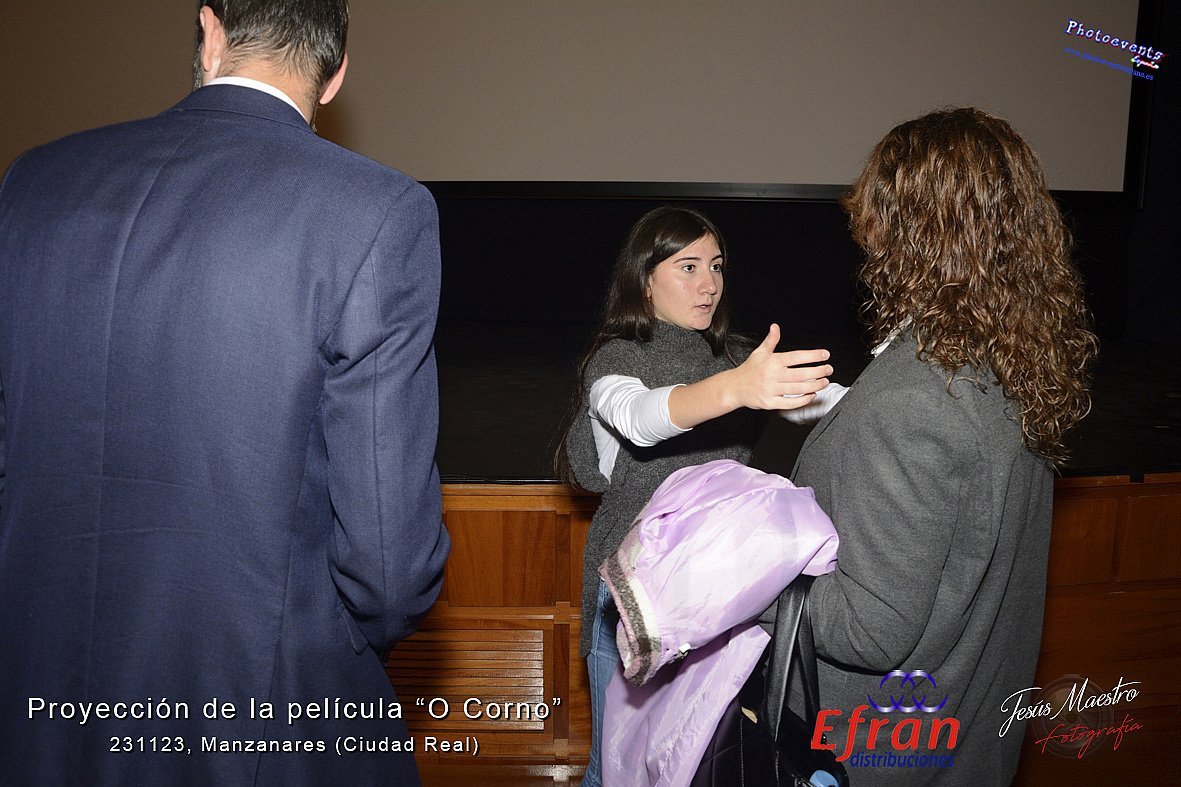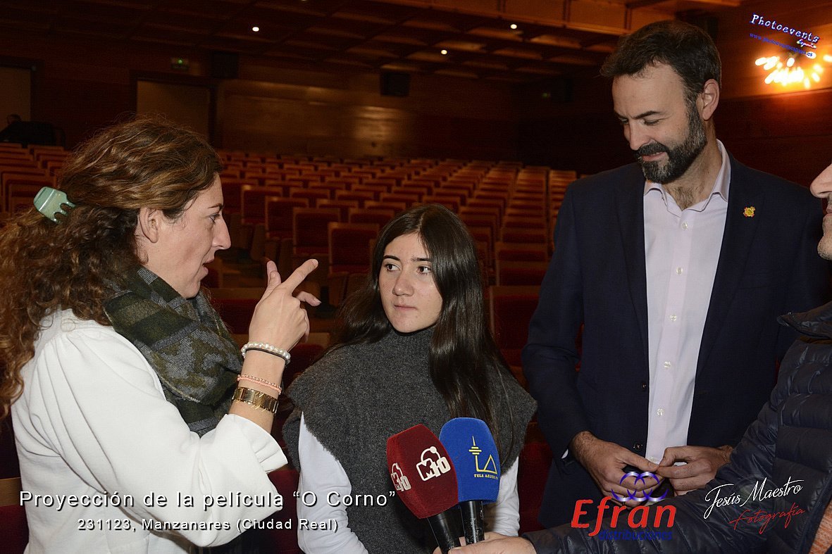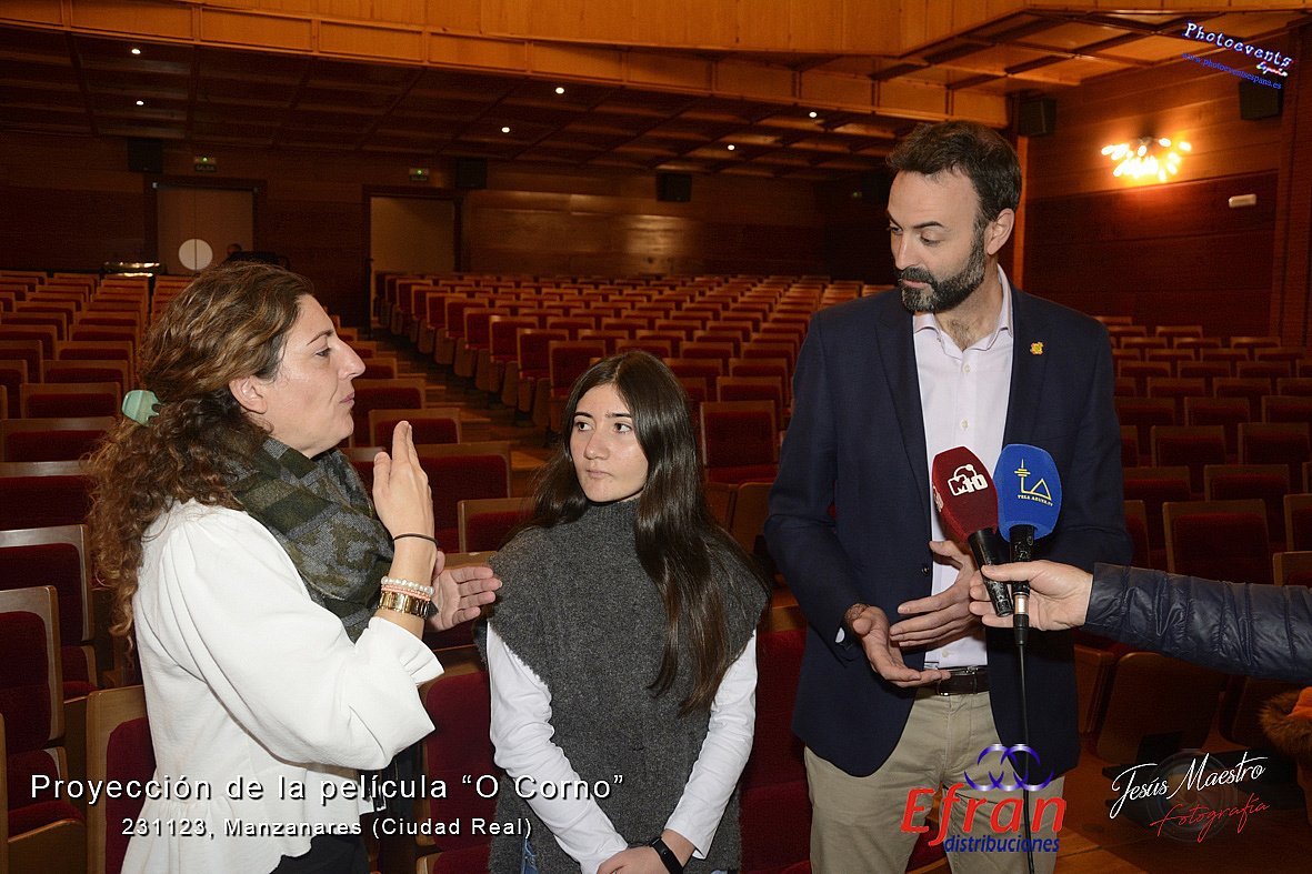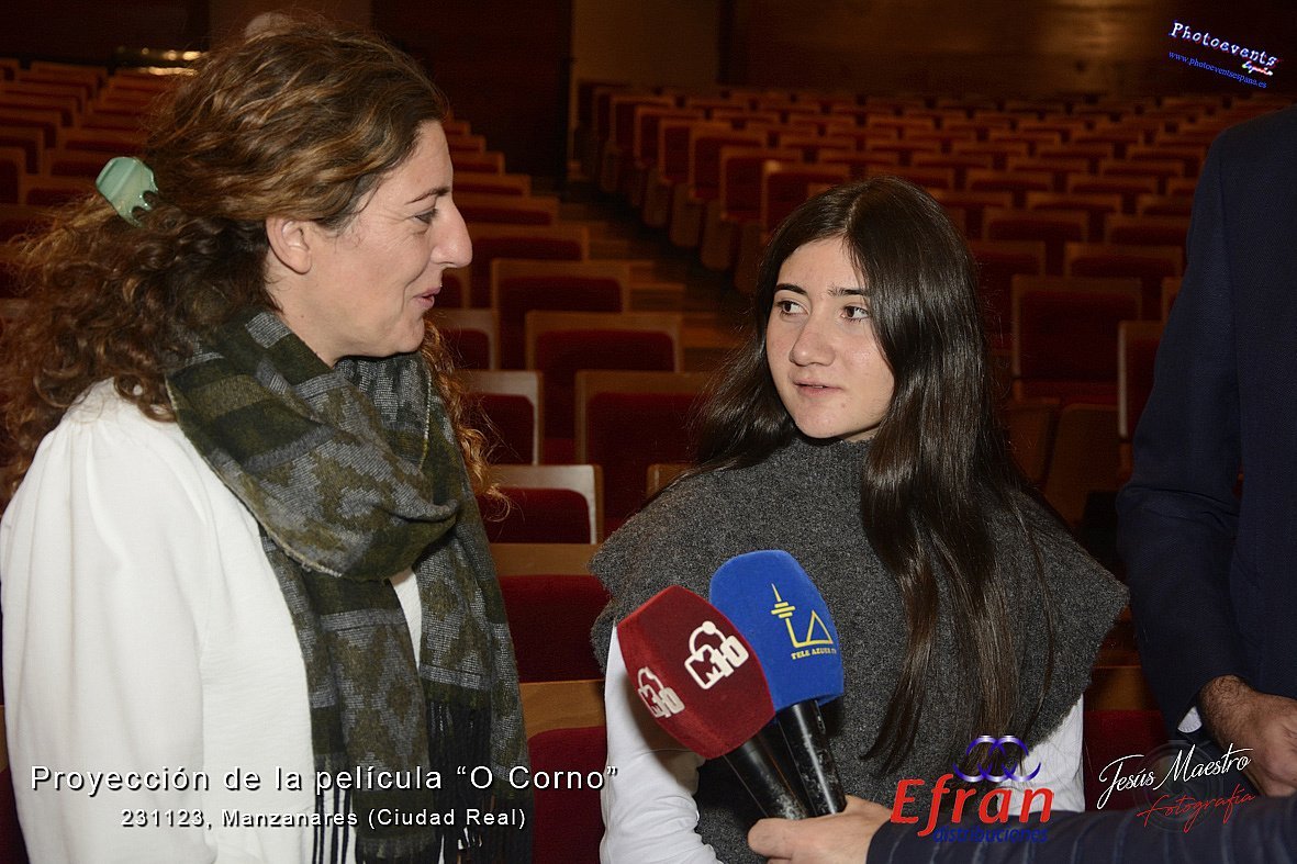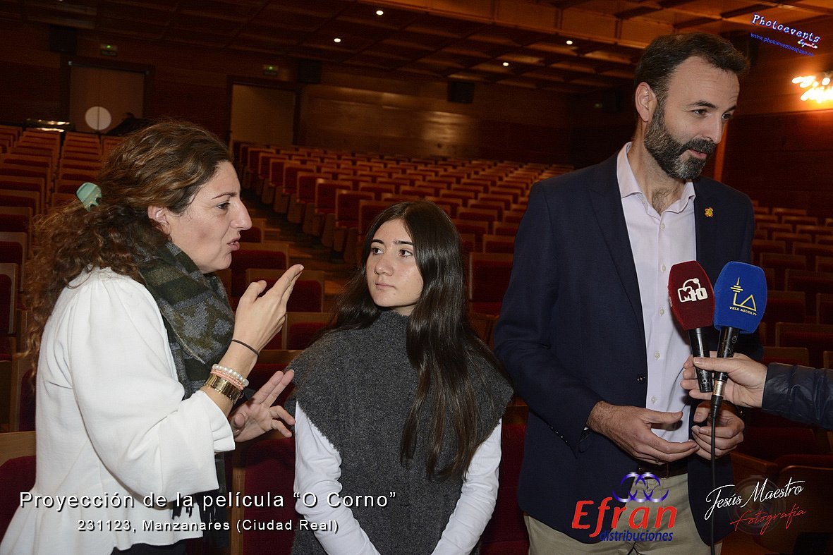 Galería fotográfica previa a la Proyección de la película “O Corno”, junto con declaraciones de Daniela Hernán (Una de las protagonistas manchega y de Llanos del Caudillo, Ciudad Real) y D. Jesús Romero , concejal de cultura del Ayuntamiento de Manzanares. EL acto tenía lugar el día 23 de Noviembre en el Gran Teatro de la localidad de Manzanares, Ciudad Real.
