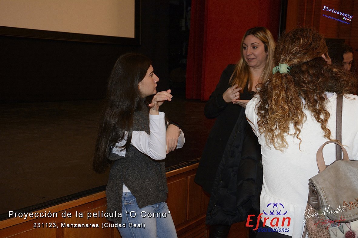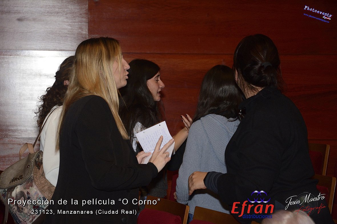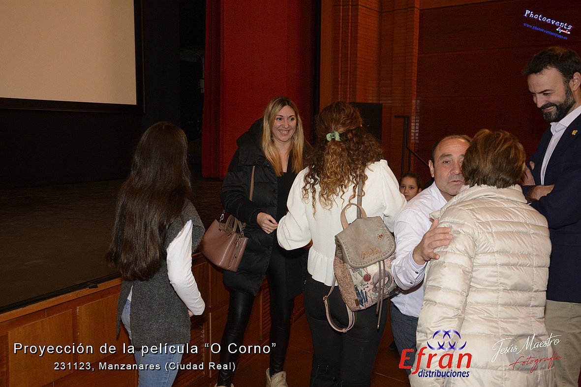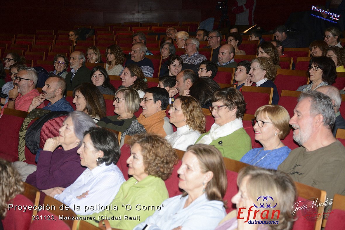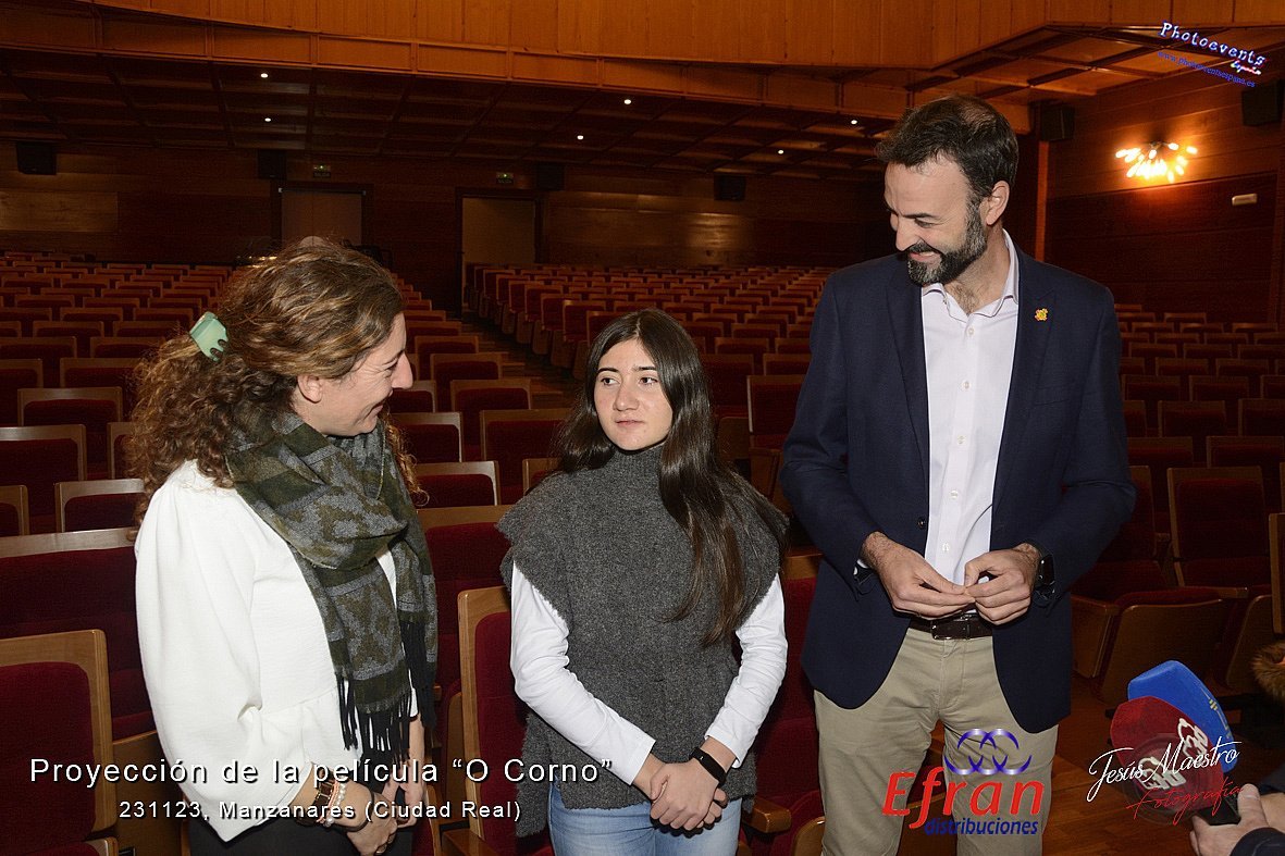 Galería fotográfica previa a la Proyección de la película “O Corno”, junto con declaraciones de Daniela Hernán (Una de las protagonistas manchega y de Llanos del Caudillo, Ciudad Real) y D. Jesús Romero , concejal de cultura del Ayuntamiento de Manzanares. EL acto tenía lugar el día 23 de Noviembre en el Gran Teatro de la localidad de Manzanares, Ciudad Real.