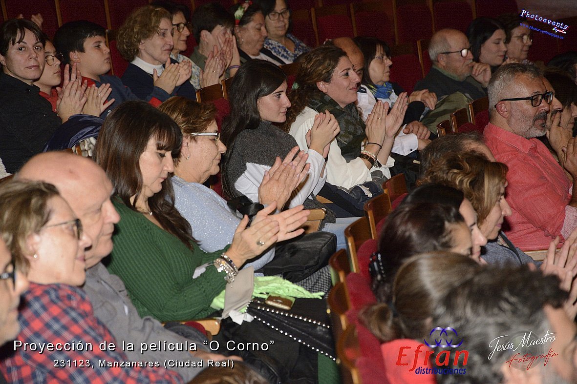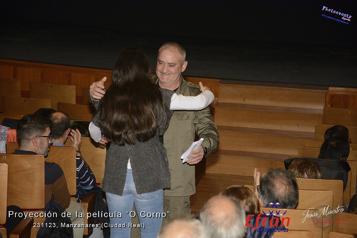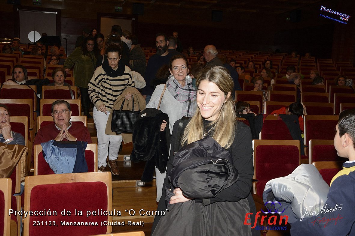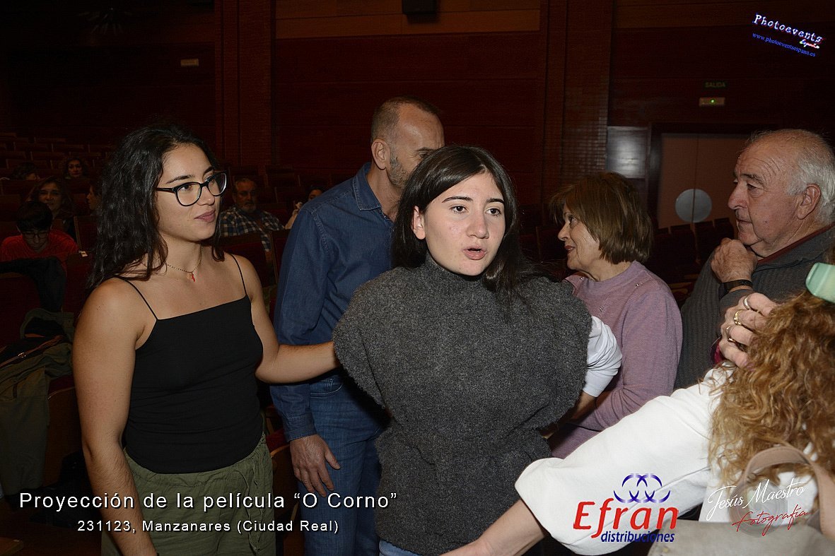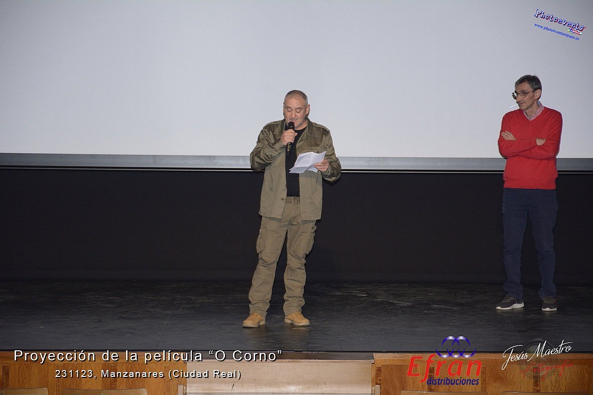 Galería fotográfica previa a la Proyección de la película “O Corno”, junto con declaraciones de Daniela Hernán (Una de las protagonistas manchega y de Llanos del Caudillo, Ciudad Real) y D. Jesús Romero , concejal de cultura del Ayuntamiento de Manzanares. EL acto tenía lugar el día 23 de Noviembre en el Gran Teatro de la localidad de Manzanares, Ciudad Real.