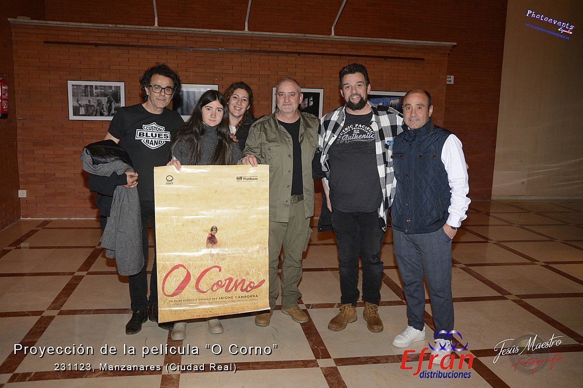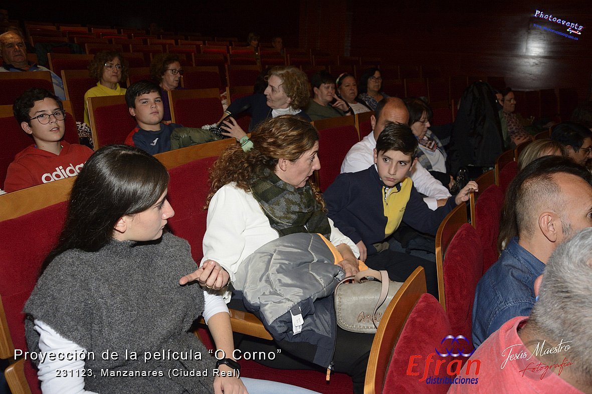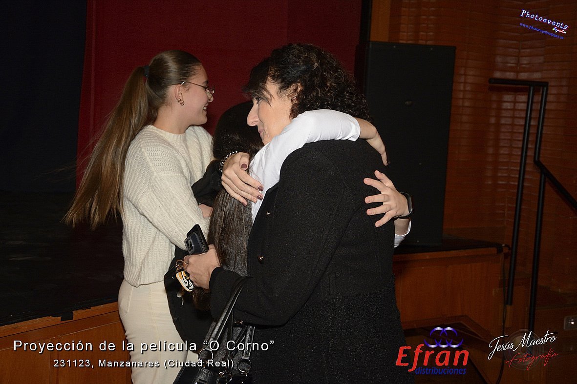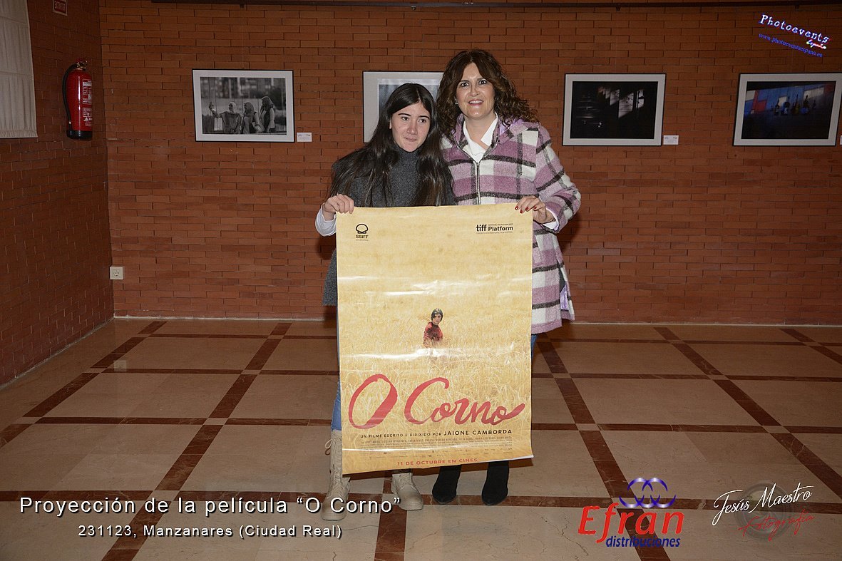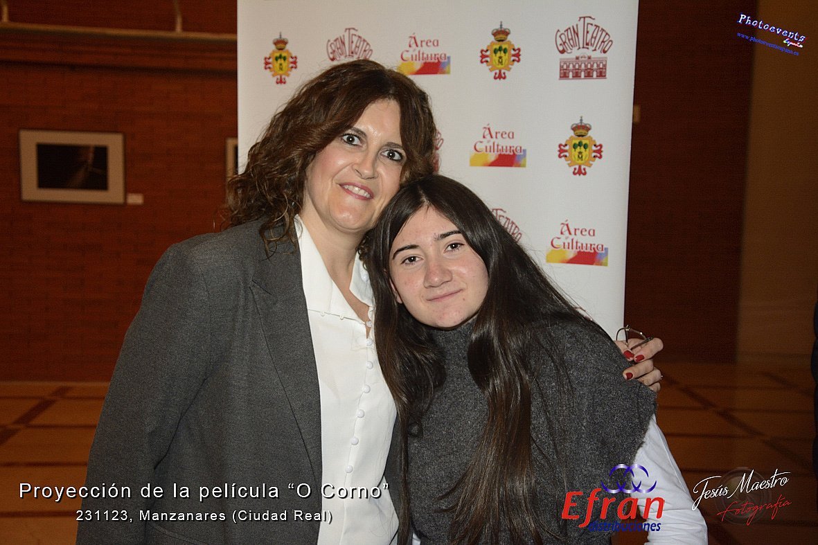 Galería fotográfica previa a la Proyección de la película “O Corno”, junto con declaraciones de Daniela Hernán (Una de las protagonistas manchega y de Llanos del Caudillo, Ciudad Real) y D. Jesús Romero , concejal de cultura del Ayuntamiento de Manzanares. EL acto tenía lugar el día 23 de Noviembre en el Gran Teatro de la localidad de Manzanares, Ciudad Real.
