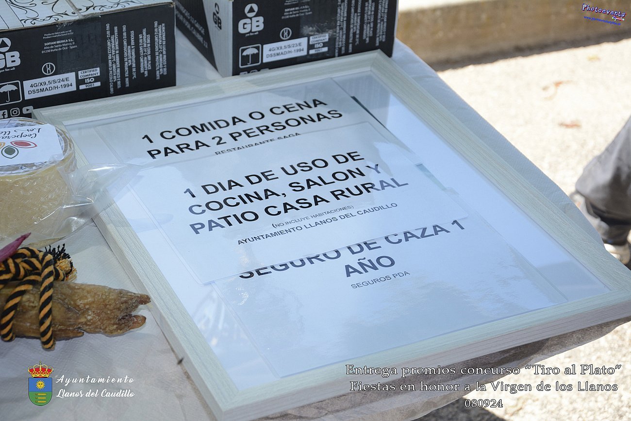 Entrega de premios del concurso realizado de Tiro al Plato, que tenia lugar en la mañana del 08 de Septiembre, con motivo de las Fiestas en honor a la Virgen de los Llanos 2024, en el municipio de Llanos del Caudillo, Ciudad Real