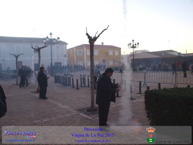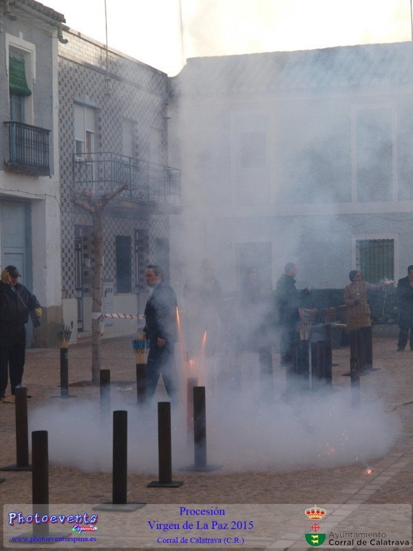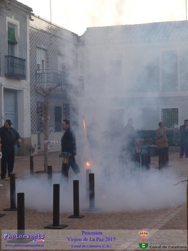 Fotografías realizadas el día 240114 durante la procesión de la Virgen de La Paz, una procesión atípica ya que durante todo el recorrido los corraleños no dejan de tirar cohetes, siendo una explosión de polvora que culmina cuando es devuelta la virgen a su iglesia en el centro del pueblo. To esto tiene lugar en la localidad de Corral de Calatrava, Ciudad Real-España.