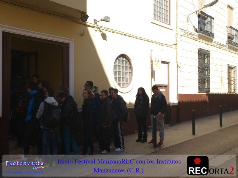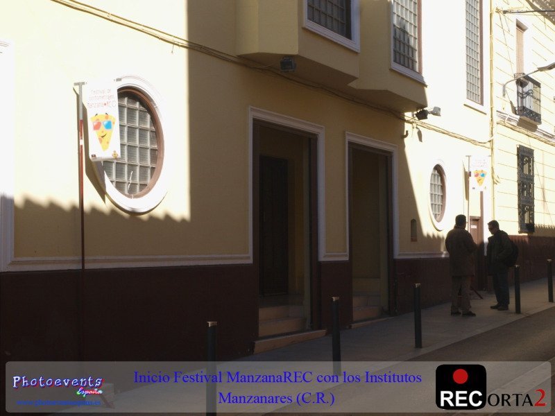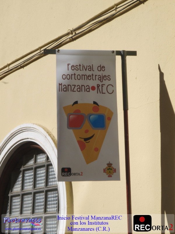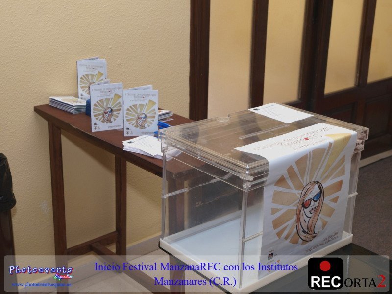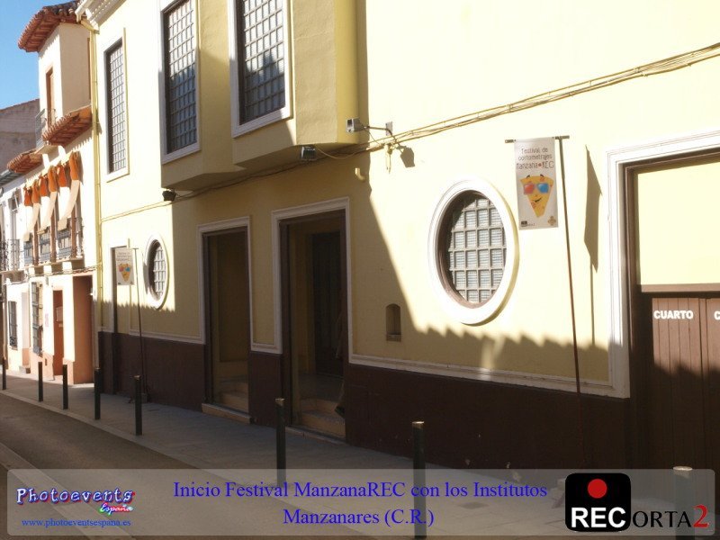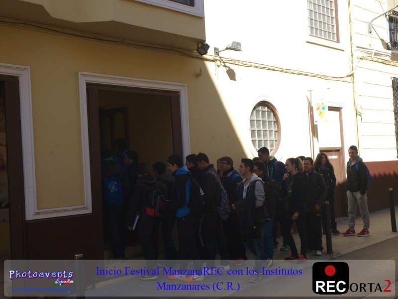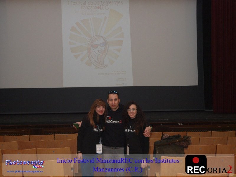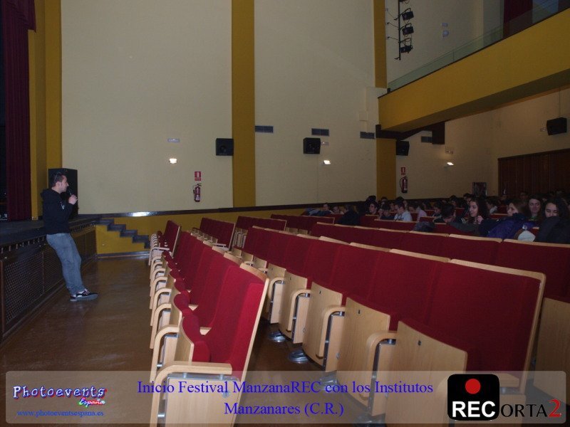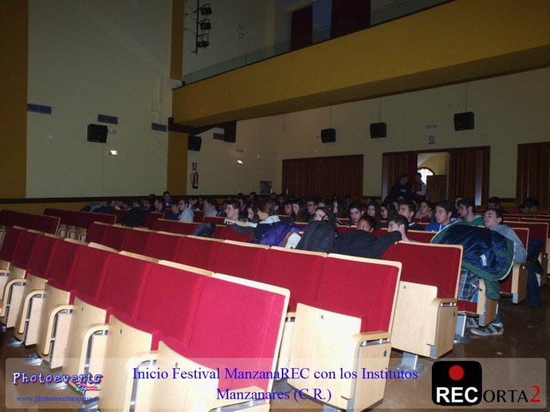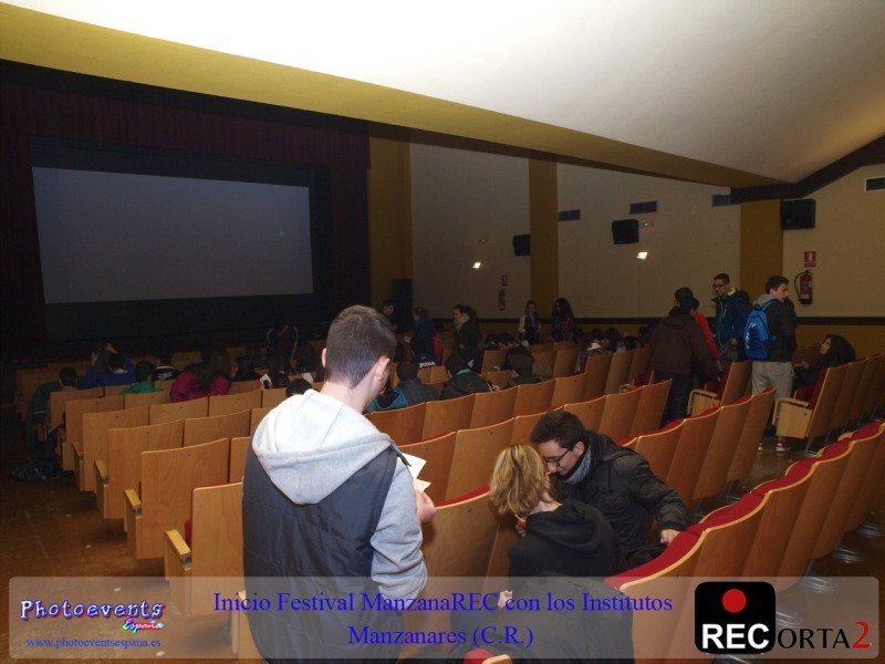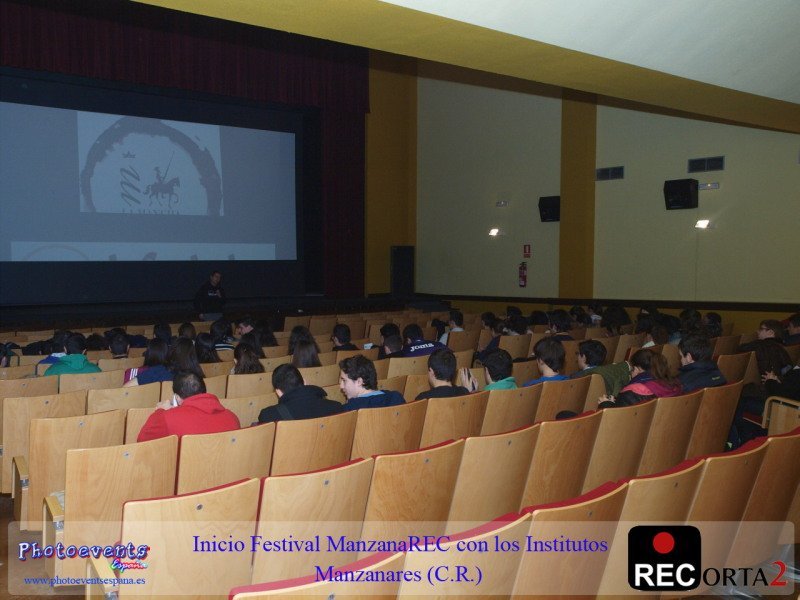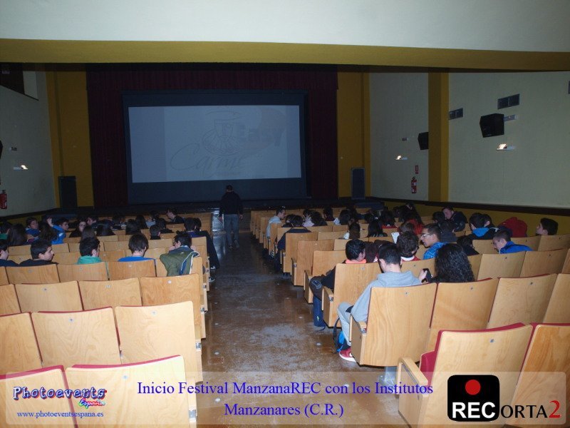 Fotografías correspondientes al inicio del Festival de ManzanaRec, dando comienzo a las proyecciones con los institutos de la localidad. realizandose en Manzanares (Ciudad Real).