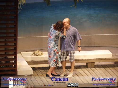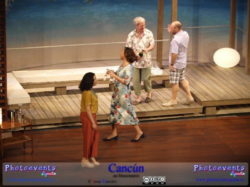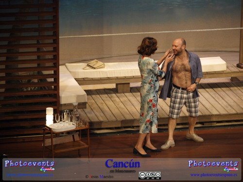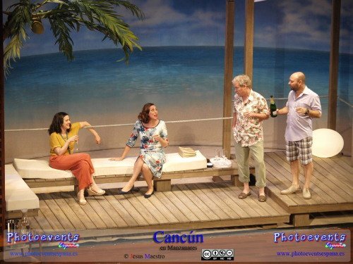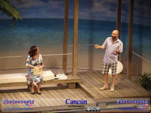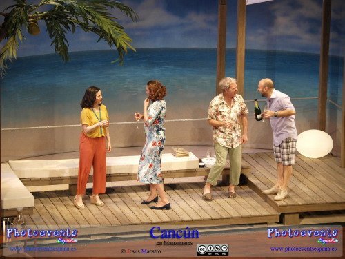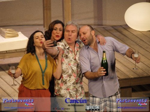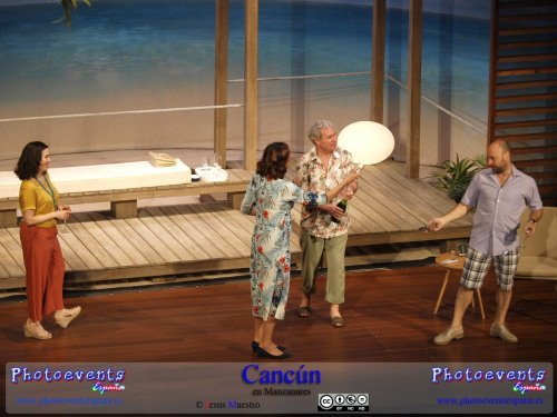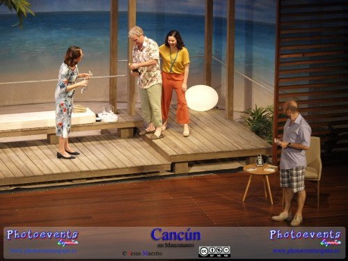 Fotografías correspondientes a la obra de teatro Cancún, protagonizada por María Barranco, Vicente Romero, Francesc Albiol y Carmen Gutiérrez, con un texto de Jordi Garcelan.