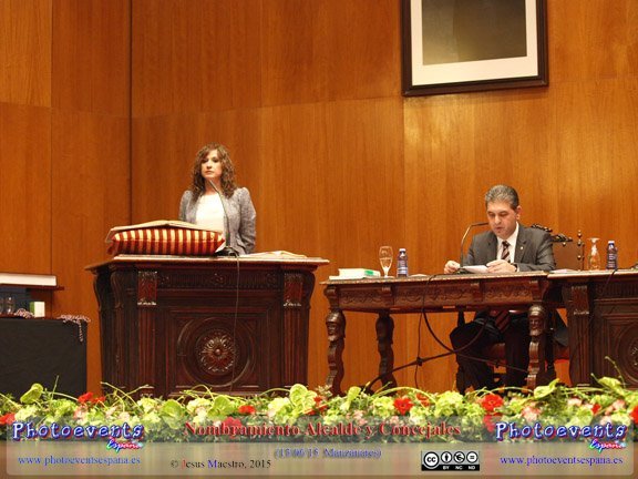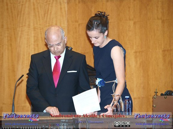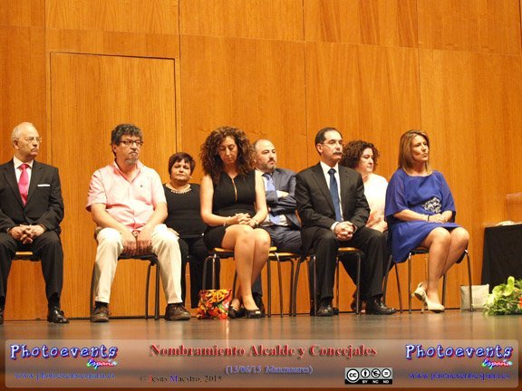 Fotografías correspondientes a la sesión de investidura de la nueva corporación municipal , siendo proclamados los distintos ediles del Partido Socialista (ganador de las elecciones), Partido popular, UPYD, Asamblea de Ciudadanos y Izquierda Unida, siendo las formaciones que salieron de las urnas del pasado 24 de Mayo en las elecciones Municipales. El acto ha tenido lugar el 13 de Junio en el Gran Teatro de la localidad de Manzanares , (Ciudad Real).