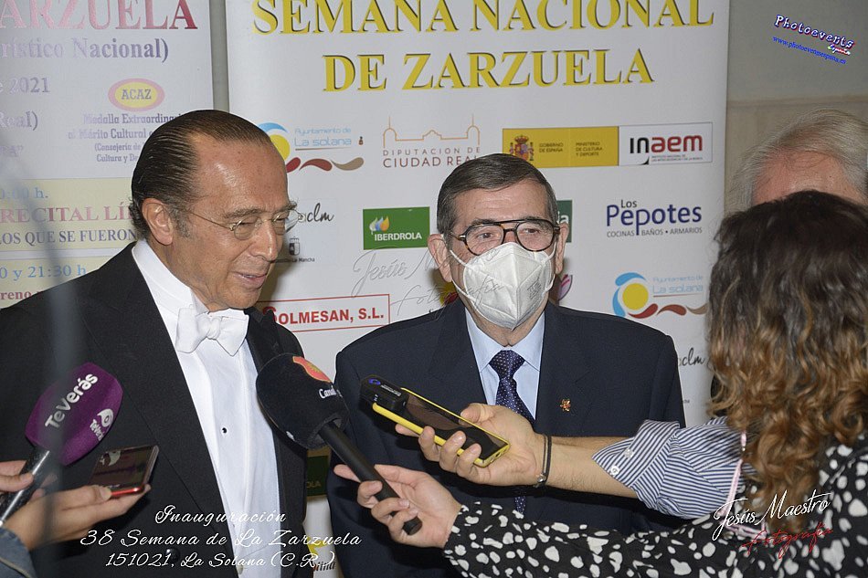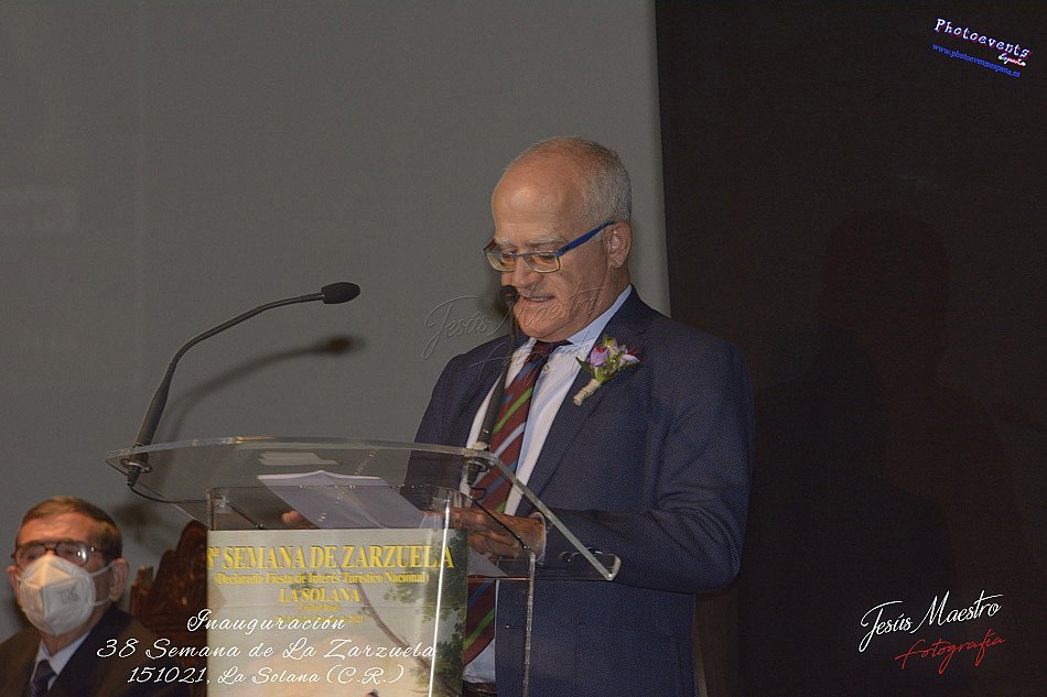 Fotografías realizadas con motivo de la inauguración de la 38 Semana de La Zarzuela, el acto de inauguración conto con la presencia de D. Luis Romero de Ávila (Alcalde en funciones), Fernando del Rey (Pregonero en esta ocasión), José Jesús Caro (delegado de Cultura en la provincia de Ciudad Real), María Ángeles Herreros (subdelegada del Gobierno en Ciudad Real), Antonio García-Cervigón Torres ( presidente de ACAZ ), y también acudieron varios familiares que recogerían el reconocimiento “Sembradores 2021”, concedidos a título póstumo. El acto tenía lugar el pasado 15 de Octubre en el teatro Tomás Barrera de La Solana, Ciudad Real.