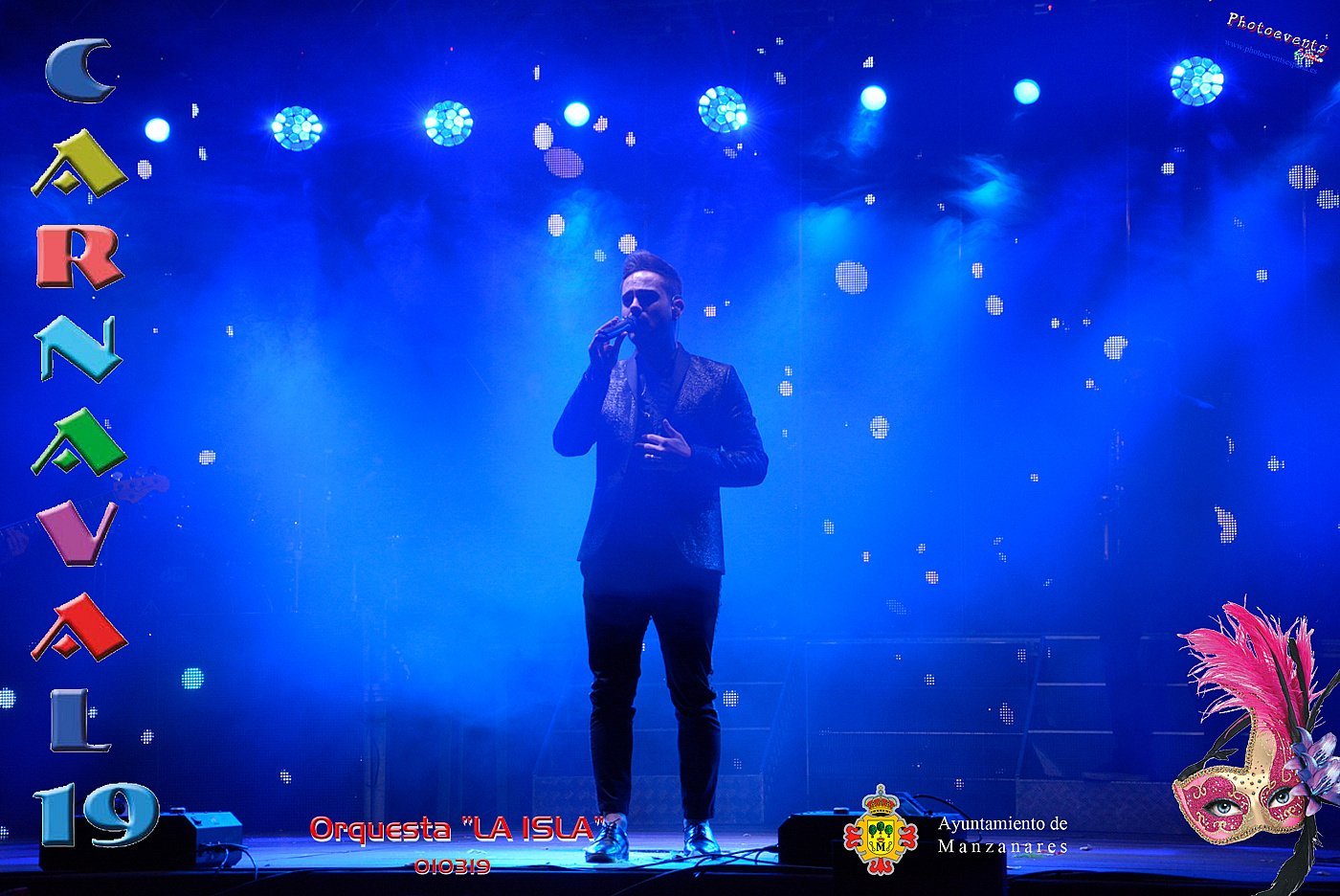 Fotografía realizadas durante la actuación de la orquesta "La Isla" , realizando un repertorio musical de lo mas variado y acto para todods los publicos. Tenía lugar la pasada noche del viernes 1 de Marzo en la carpa municipal La Pergola. Enclavandose dentro de las fiestas de Carnaval que desde la concejalía de Fiestas a cargo Esther Nieto-Marquez se han organizado en la localidad de Manzanares, Ciudad Real.