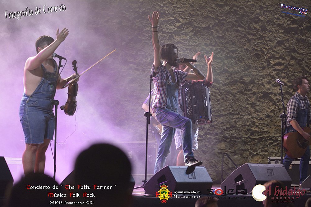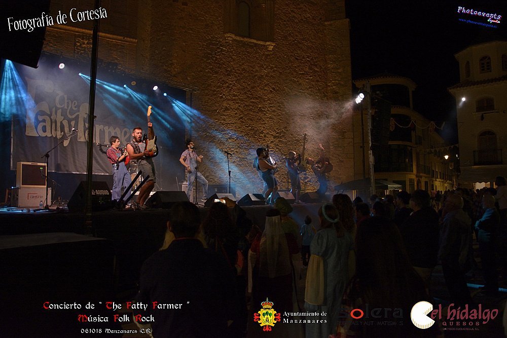 Fotografías realizadas durante el concierto ofrecido por el grupo Toledano The Fatty Farmer, que se describen como grupo musical de Folk Rock que sintetiza distintos estilos musicales como rock, country y música Celta. El evento tenía lugar en la plaza de la Constitución el 6 de Octubre de 2018 en Manzanares, con motivo de las VII Jornadas Medievales en la localidad de Manzanares, provincia de Ciudad Real .