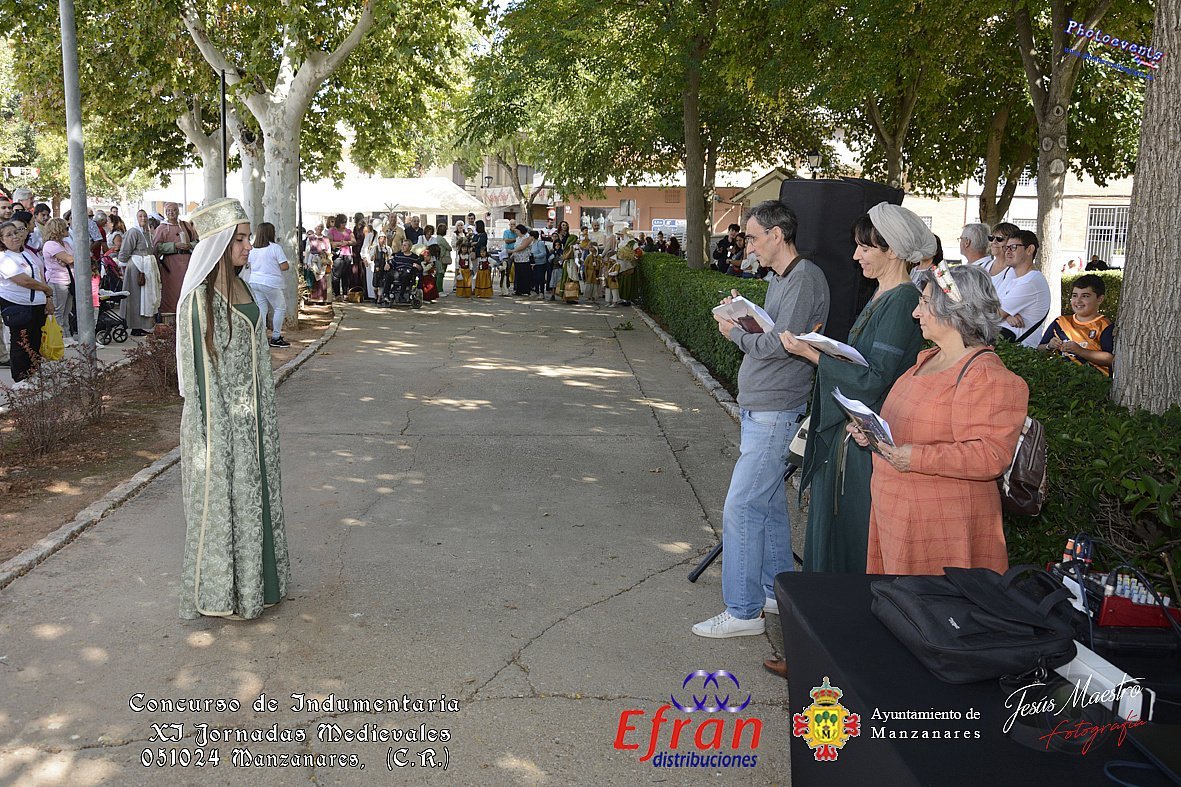Fotografía realizada con motivo del Concurso de indumentaria, teniendo lugar en el parterre del rio, en la mañana del día 051024, estando enmarcado dentro de los actos organizados con motivo de la realización de las XI Jornadas Histórico Turísticas de Manzanares Medieval que se celebran durante los días del 4 al 6 de Octubre en la localidad de Manzanares, Ciudad Real.