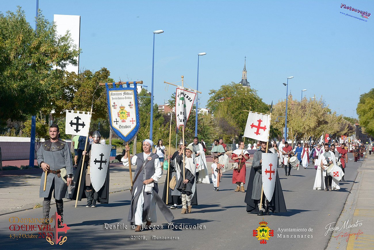 Fotografías realizadas durante el desfile de personajes y caballeros hacia la plaza de toros, terreno donde se realizan los juegos y competiciones medievales, que tenía lugar el pasado día 5 de Octubre. Actividad enmarcada dentro de las VIII Jornadas histórico-turísticas Manzanares Medieval, que se celebran durante los días 4, 5 y 6 de Octubre en el municipio de Manzanares, Ciudad Real.