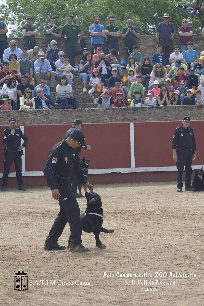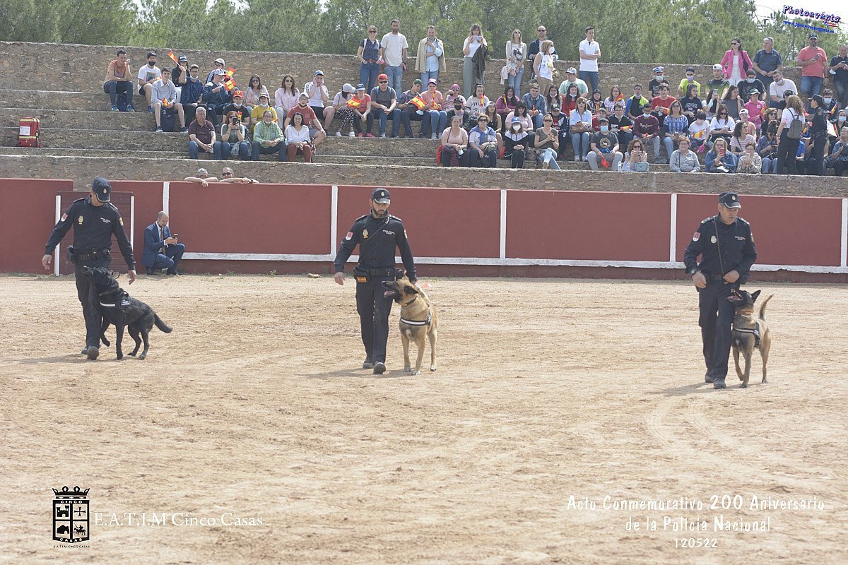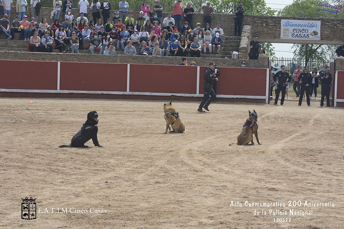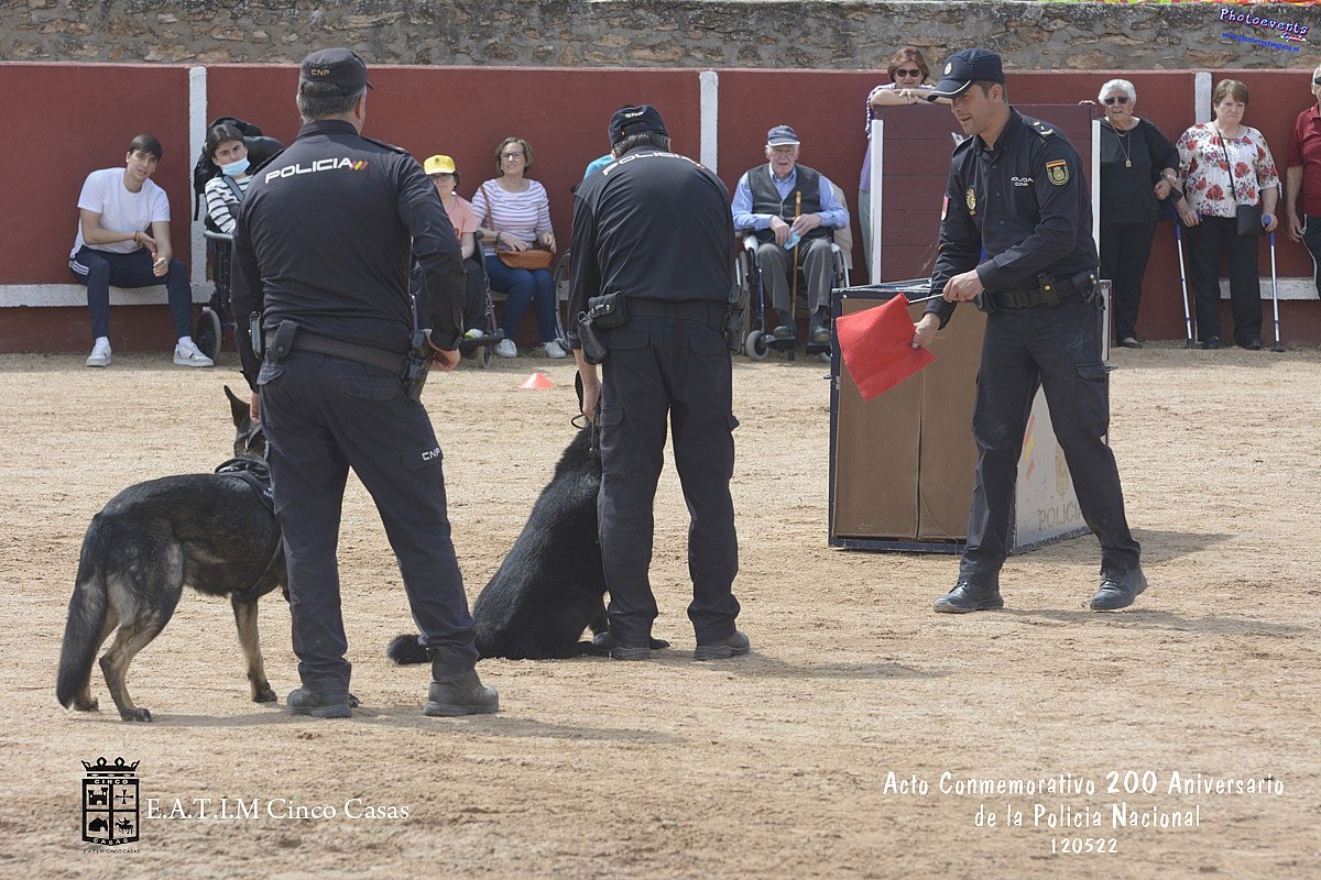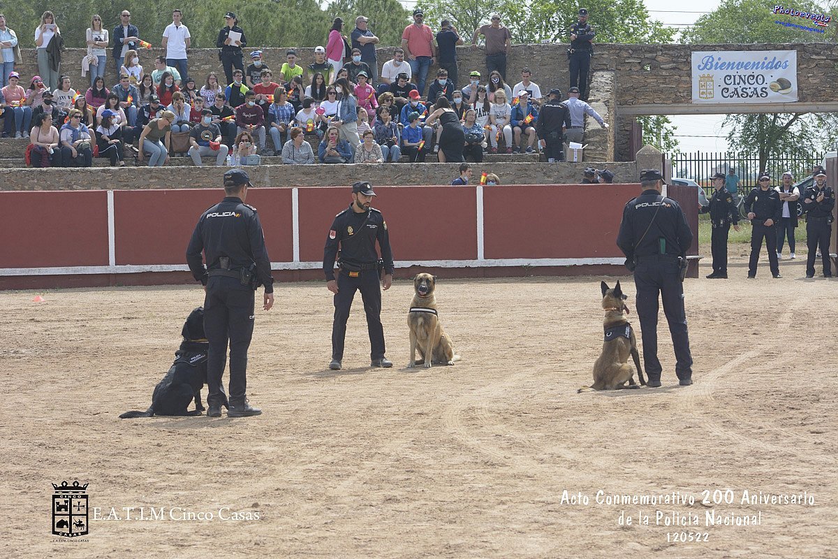 Fotografía realizada con motivo de la conmemoración del 200 aniversario a la Policía Nacional, el evento a contado con la presencia de autoridades como el comisario principal Félix Antolín Diego, jefe superior de Policía de Castilla-La Mancha, la subdelegada del Gobierno en Ciudad Real, María Ángeles Herreros Ramírez, la alcaldesa de Alcázar de San Juan, Rosa Melchor Quiralte, el alcalde de Cinco Casas, Miguel Ángel Rosado Huertas, y el comisario jefe de la Comisaría de Policía de Alcázar, Julián Maroto. Dicho evento tenía lugar el día 120522, en la localidad de Cinco Casas, Ciudad Real.