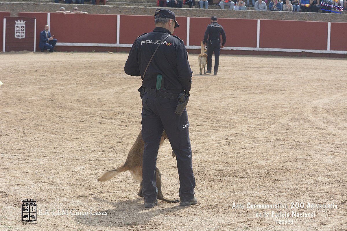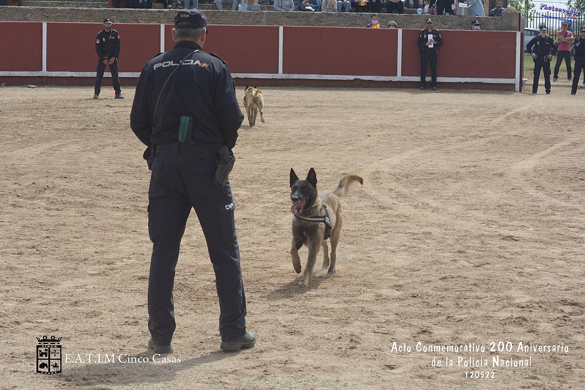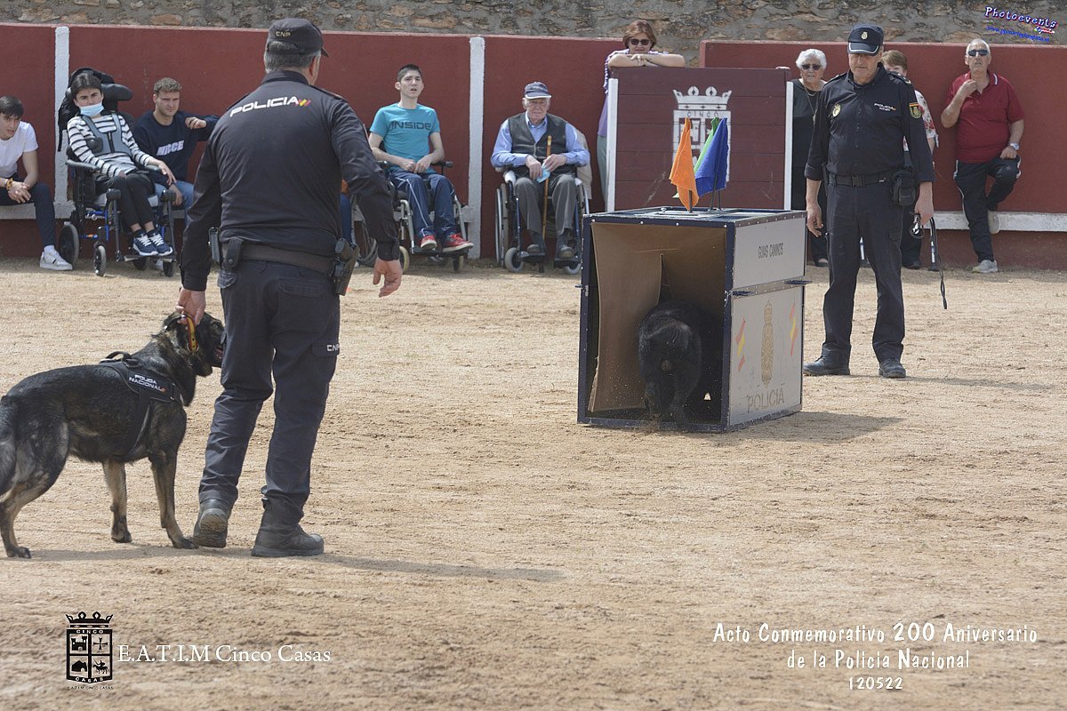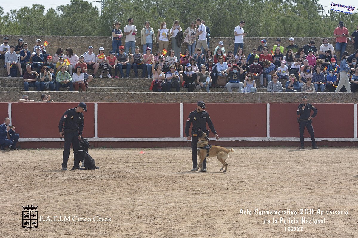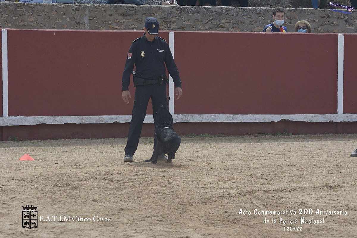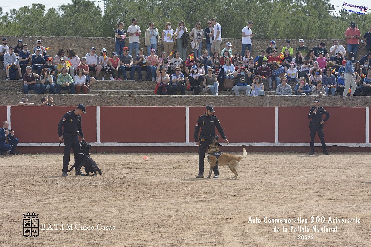 Fotografía realizada con motivo de la conmemoración del 200 aniversario a la Policía Nacional, el evento a contado con la presencia de autoridades como el comisario principal Félix Antolín Diego, jefe superior de Policía de Castilla-La Mancha, la subdelegada del Gobierno en Ciudad Real, María Ángeles Herreros Ramírez, la alcaldesa de Alcázar de San Juan, Rosa Melchor Quiralte, el alcalde de Cinco Casas, Miguel Ángel Rosado Huertas, y el comisario jefe de la Comisaría de Policía de Alcázar, Julián Maroto. Dicho evento tenía lugar el día 120522, en la localidad de Cinco Casas, Ciudad Real.