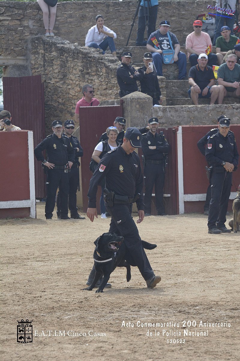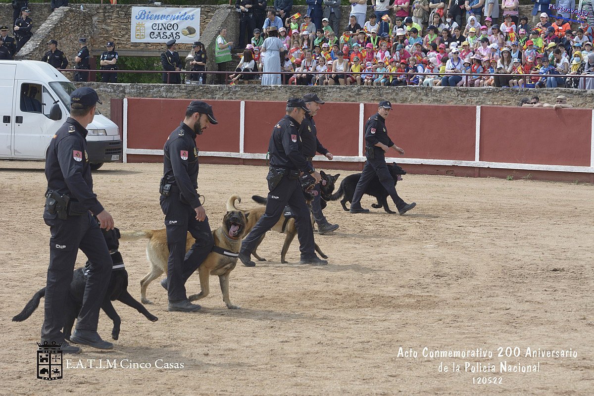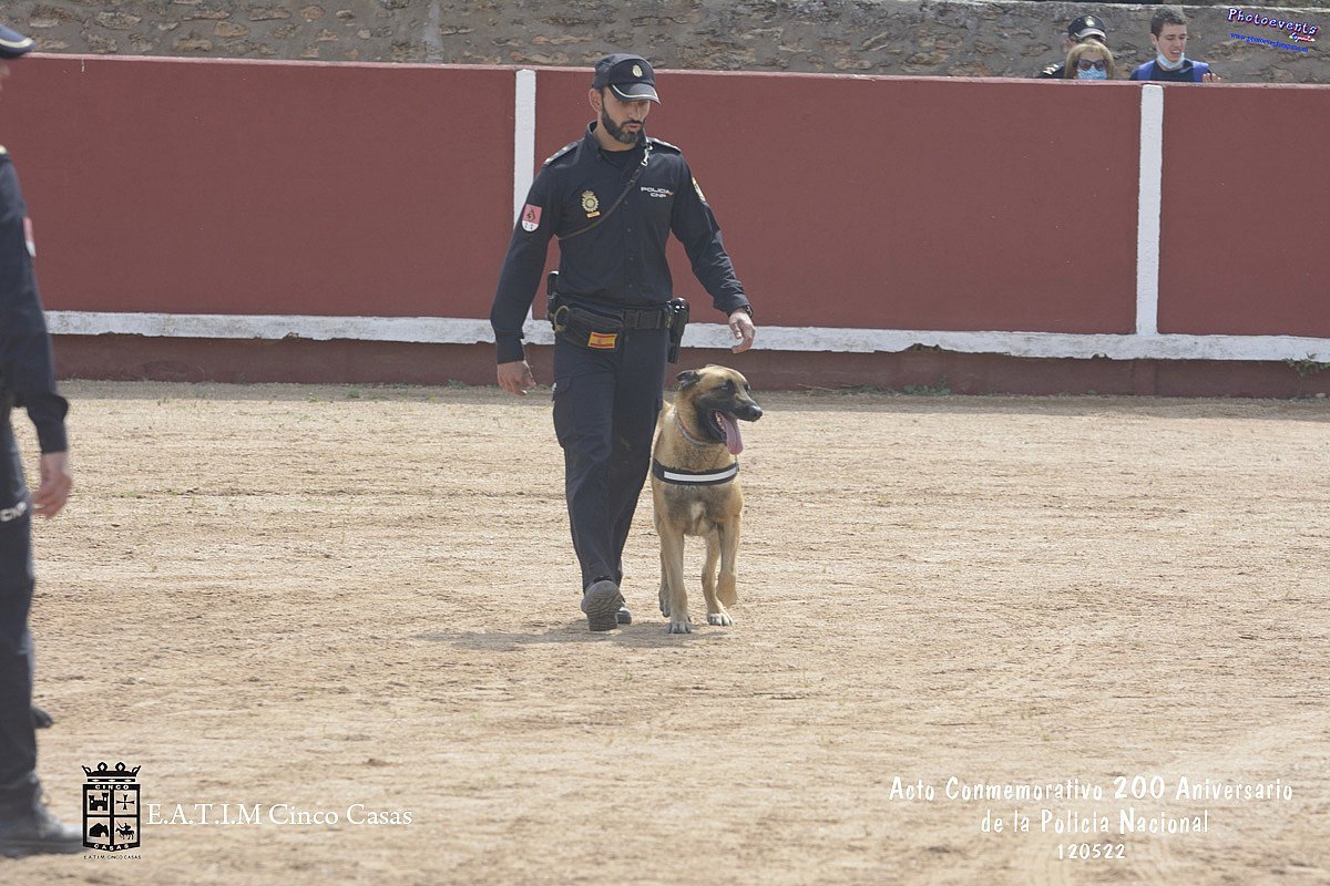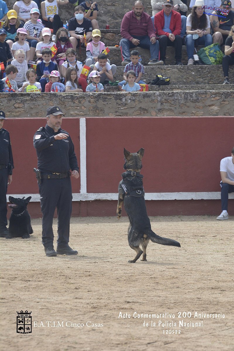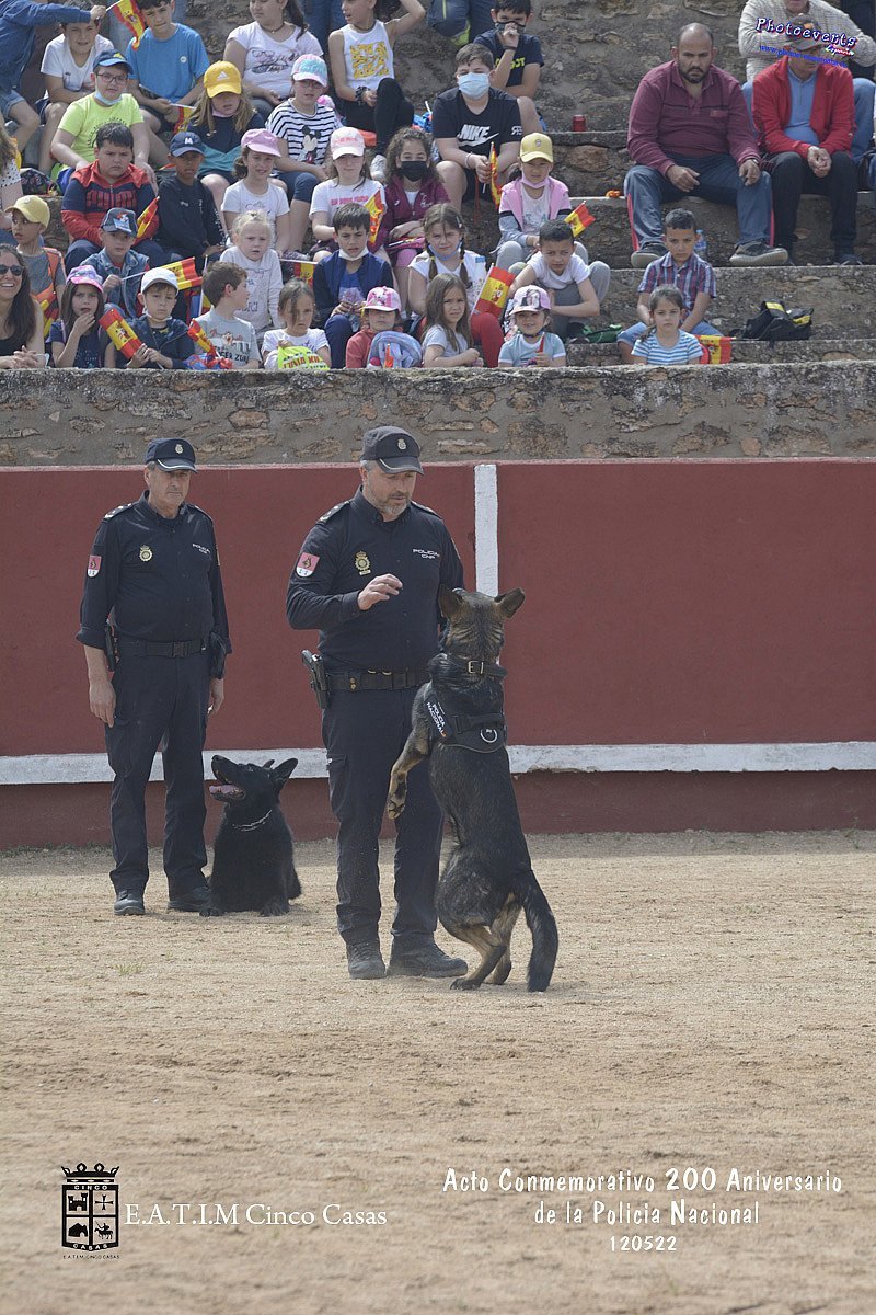 Fotografía realizada con motivo de la conmemoración del 200 aniversario a la Policía Nacional, el evento a contado con la presencia de autoridades como el comisario principal Félix Antolín Diego, jefe superior de Policía de Castilla-La Mancha, la subdelegada del Gobierno en Ciudad Real, María Ángeles Herreros Ramírez, la alcaldesa de Alcázar de San Juan, Rosa Melchor Quiralte, el alcalde de Cinco Casas, Miguel Ángel Rosado Huertas, y el comisario jefe de la Comisaría de Policía de Alcázar, Julián Maroto. Dicho evento tenía lugar el día 120522, en la localidad de Cinco Casas, Ciudad Real.