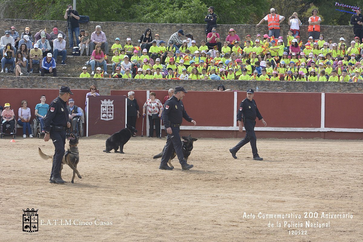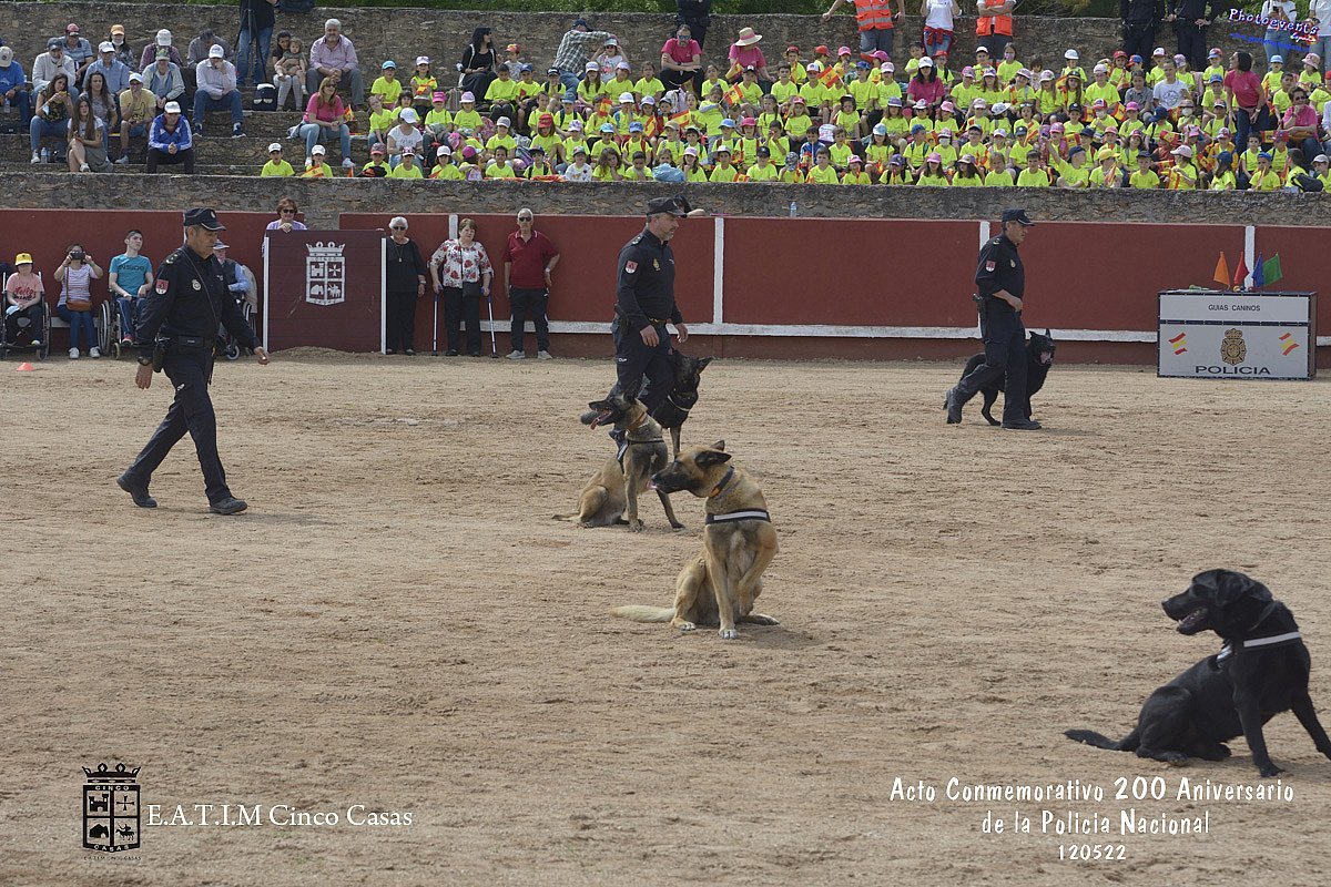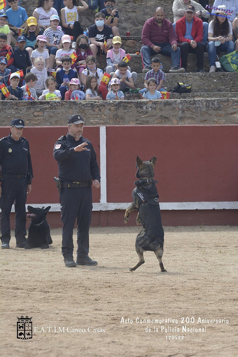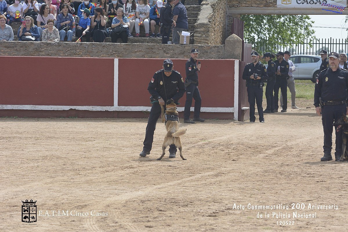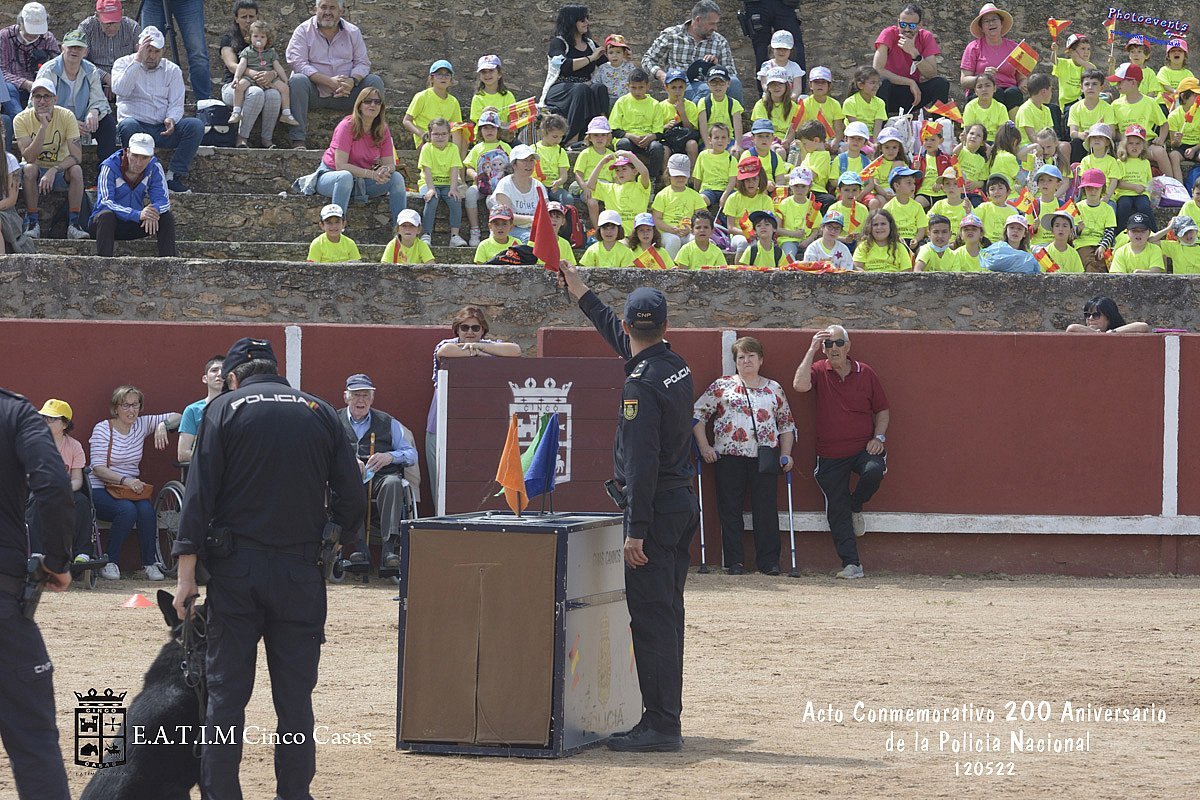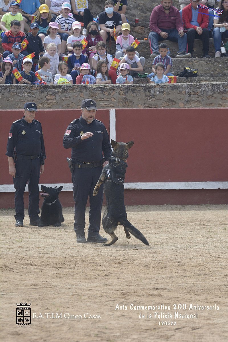 Fotografía realizada con motivo de la conmemoración del 200 aniversario a la Policía Nacional, el evento a contado con la presencia de autoridades como el comisario principal Félix Antolín Diego, jefe superior de Policía de Castilla-La Mancha, la subdelegada del Gobierno en Ciudad Real, María Ángeles Herreros Ramírez, la alcaldesa de Alcázar de San Juan, Rosa Melchor Quiralte, el alcalde de Cinco Casas, Miguel Ángel Rosado Huertas, y el comisario jefe de la Comisaría de Policía de Alcázar, Julián Maroto. Dicho evento tenía lugar el día 120522, en la localidad de Cinco Casas, Ciudad Real.