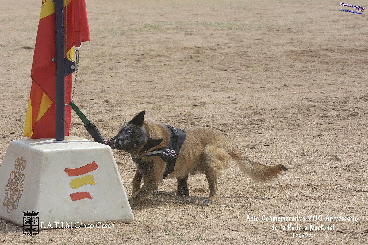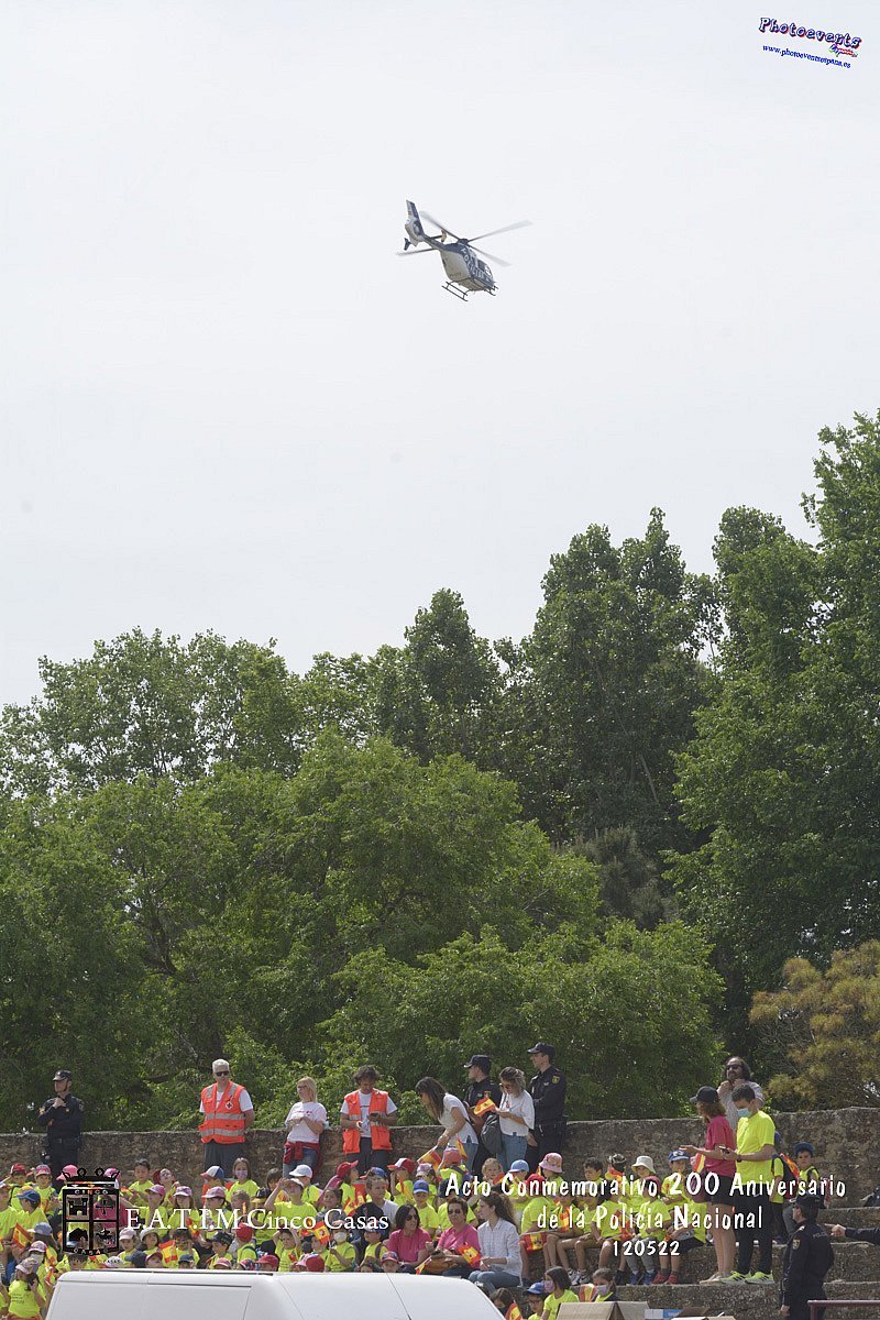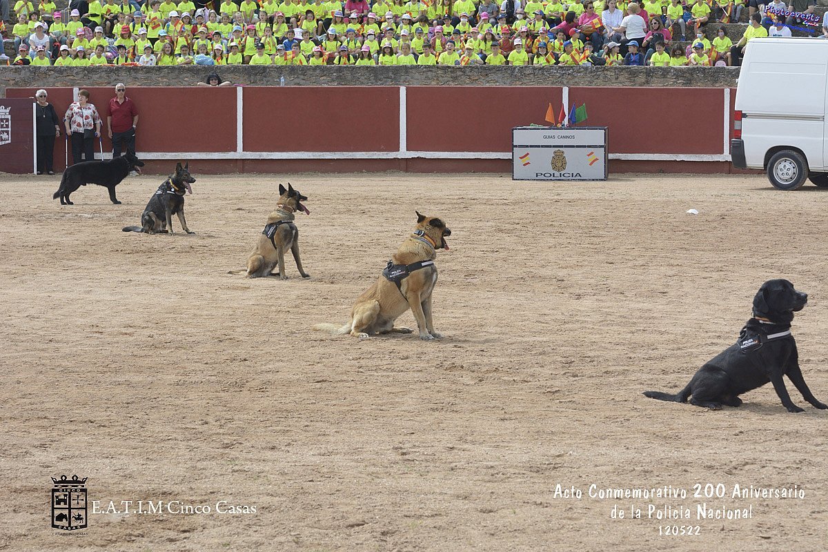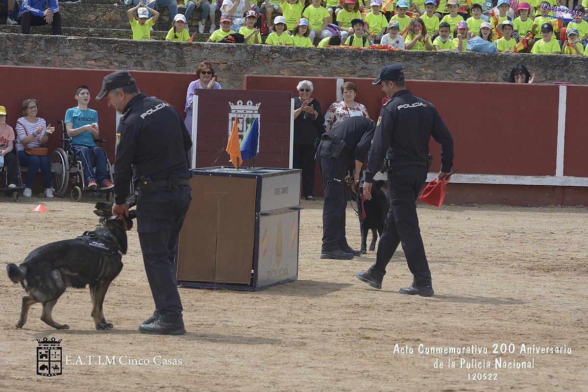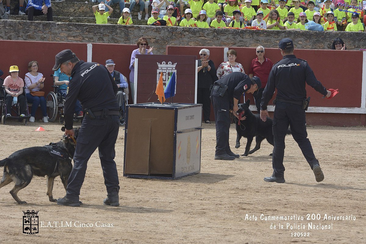 Fotografía realizada con motivo de la conmemoración del 200 aniversario a la Policía Nacional, el evento a contado con la presencia de autoridades como el comisario principal Félix Antolín Diego, jefe superior de Policía de Castilla-La Mancha, la subdelegada del Gobierno en Ciudad Real, María Ángeles Herreros Ramírez, la alcaldesa de Alcázar de San Juan, Rosa Melchor Quiralte, el alcalde de Cinco Casas, Miguel Ángel Rosado Huertas, y el comisario jefe de la Comisaría de Policía de Alcázar, Julián Maroto. Dicho evento tenía lugar el día 120522, en la localidad de Cinco Casas, Ciudad Real.