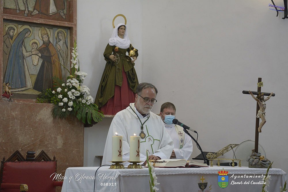 Fotografías realizadas durante la misa y posterior ofrenda floral a “ Nuestra Señora de los Llanos” , que tenía lugar el día 080921 con motivo de las Fiestas en honor a la Virgen de los Llanos en el Municipio de Llanos del Caudillo, Ciudad Real.