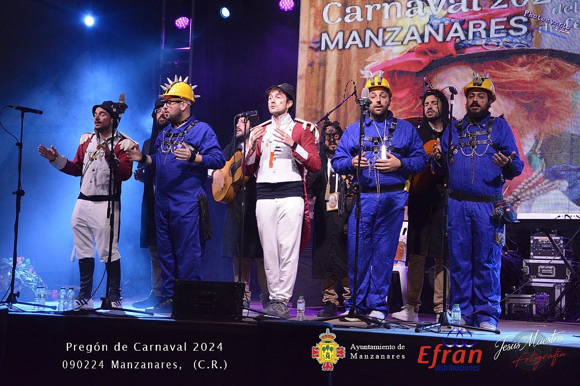Fotografía realizada con motivo del pregón de Carnaval 2024 a que este año corria a cargo de la gaditana Chirigota del Airon, acompañaba también a este pregón de Carnaval el gran Cachola, que tenía lugar en la noche del viernes 9 de Febrero de 2024 en la el recinto La Pérgola de Manzanares, Ciudad Real.