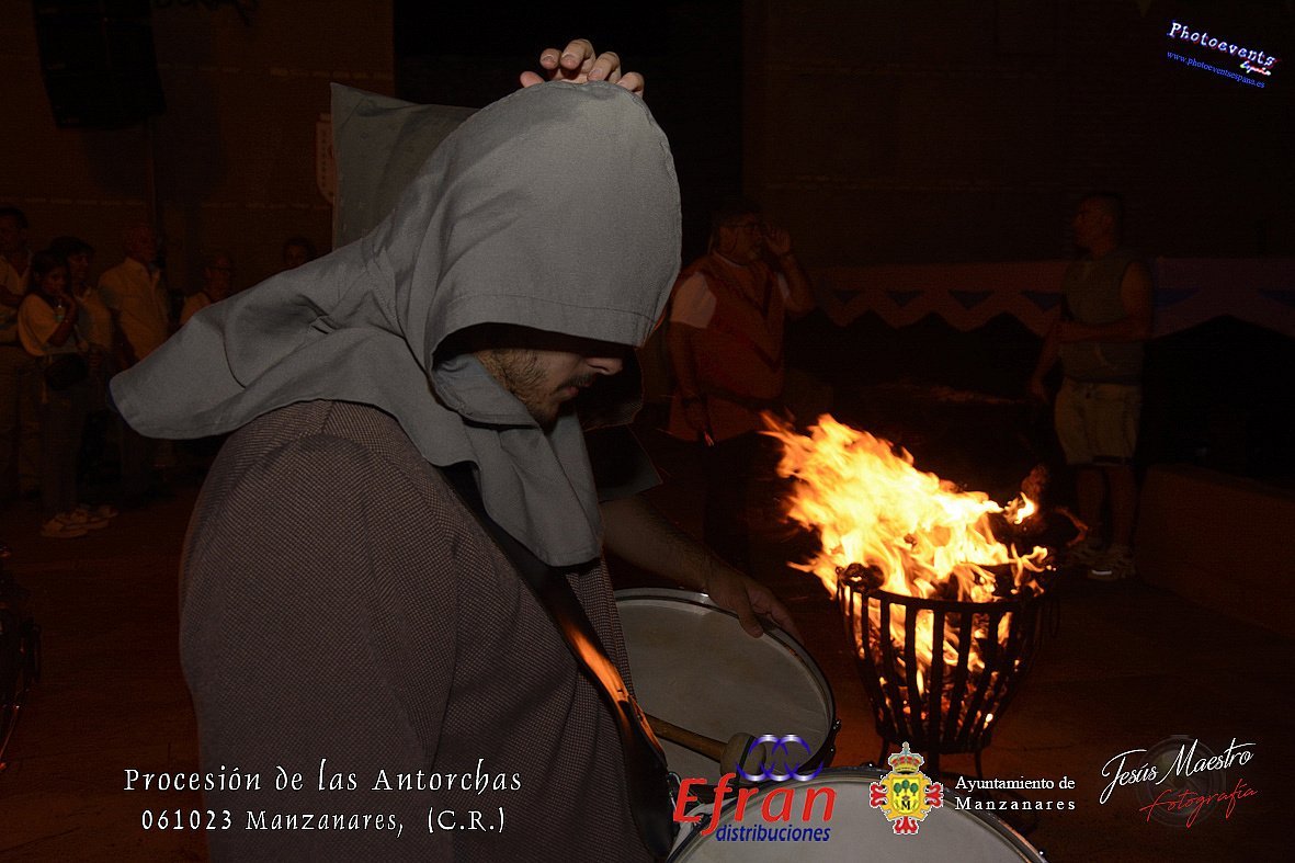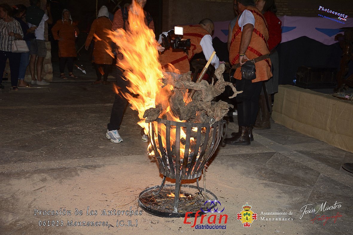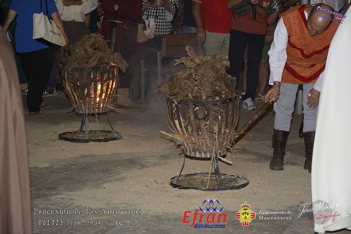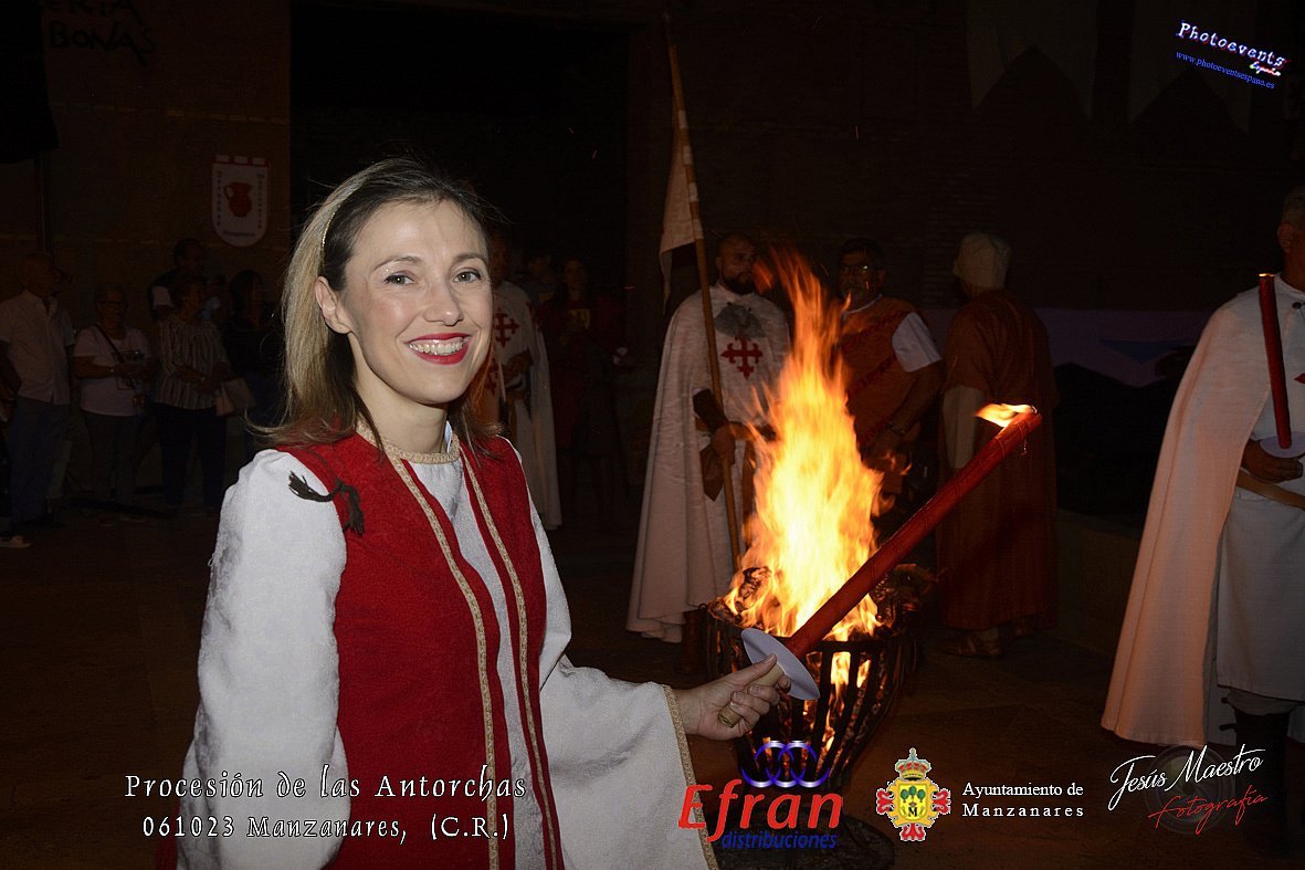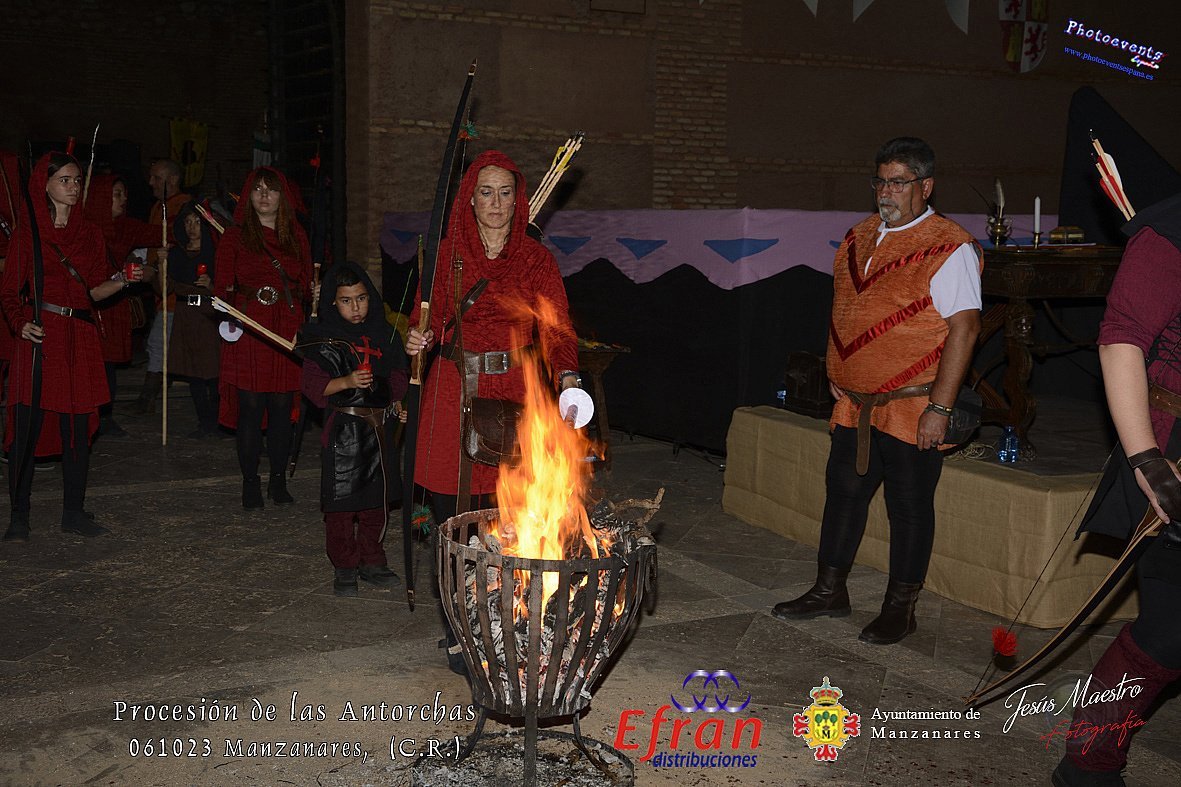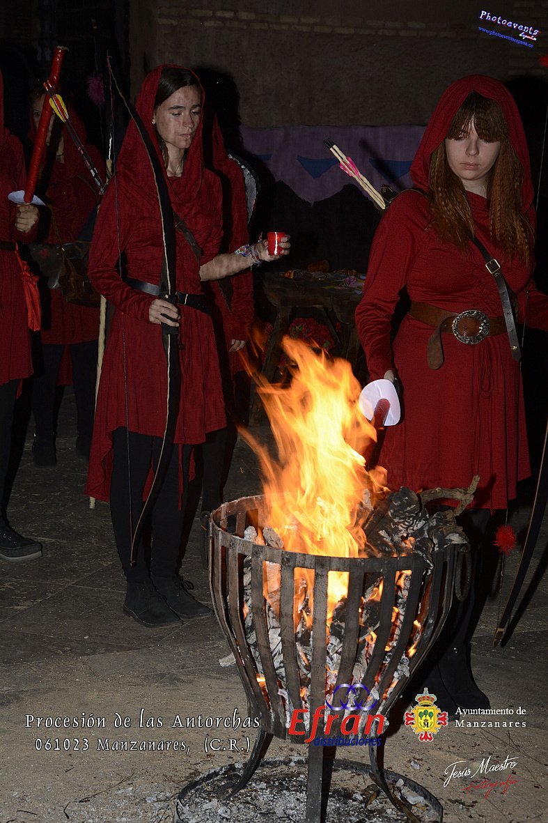 Procesión de las antorchas y nombramientos de Caballeros y Damas de la encomienda, que tenía lugar en la noche del día 061023, enmarcado dentro de los actos organizados con motivo de la realización de las X Jornadas Histórico Turísticas de Manzanares Medieval que se tienen lugar durante los días del 6 al 8 de Octubre en la localidad de Manzanares, Ciudad Real.