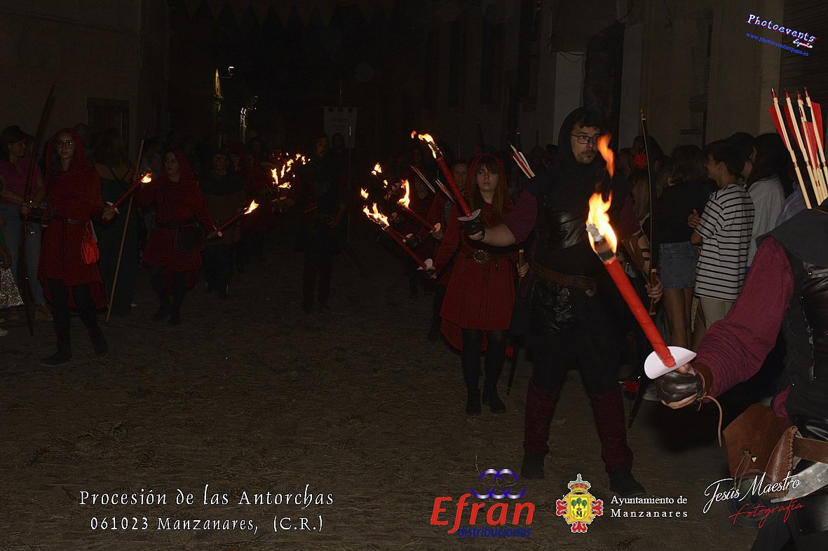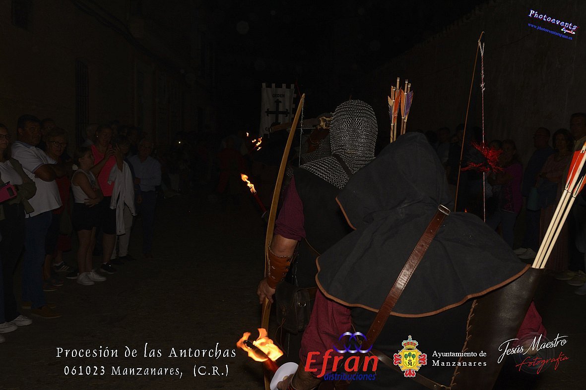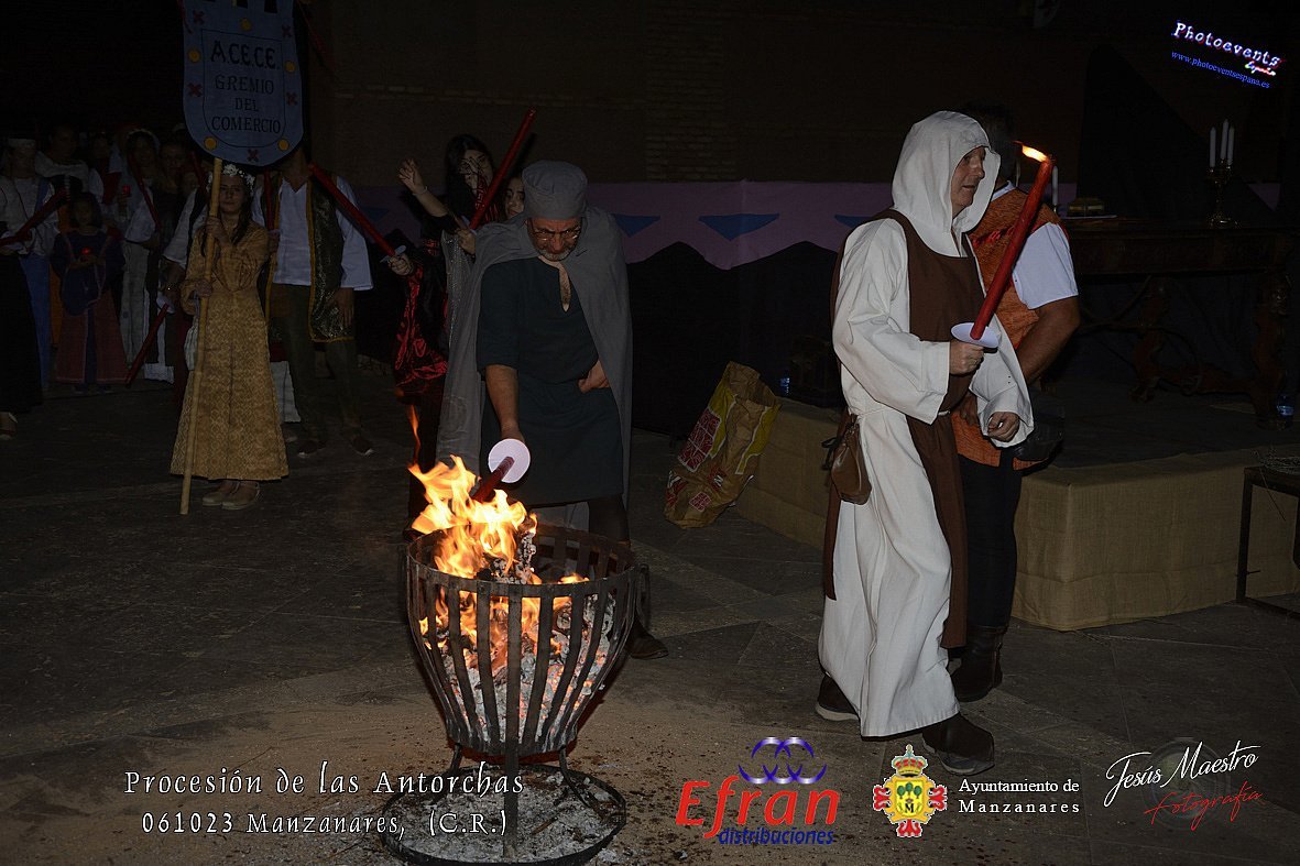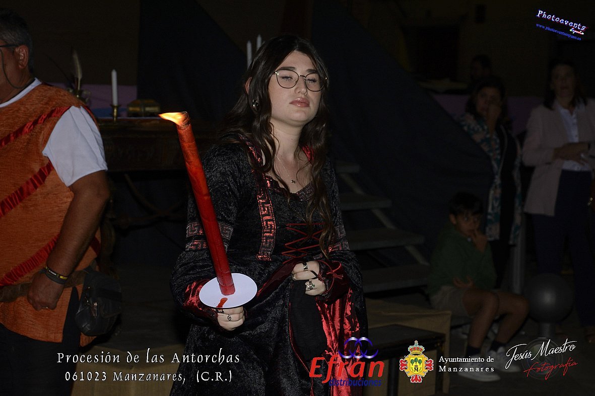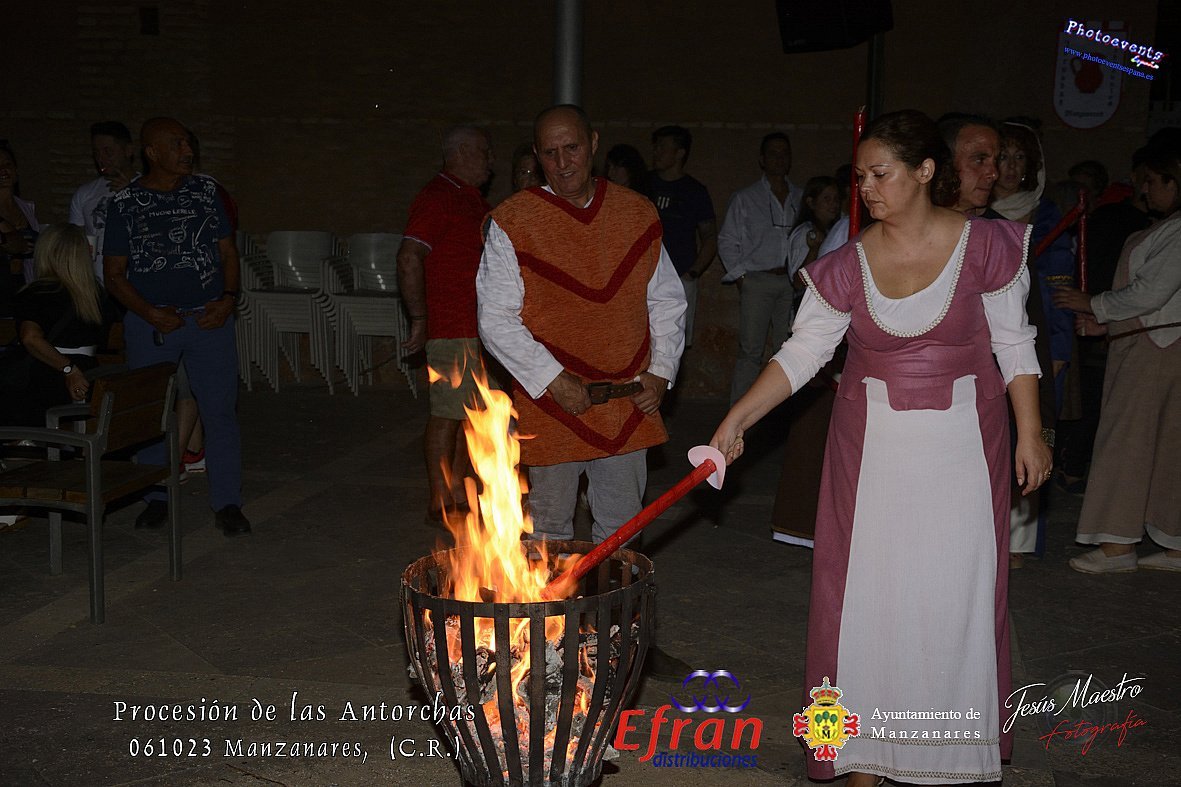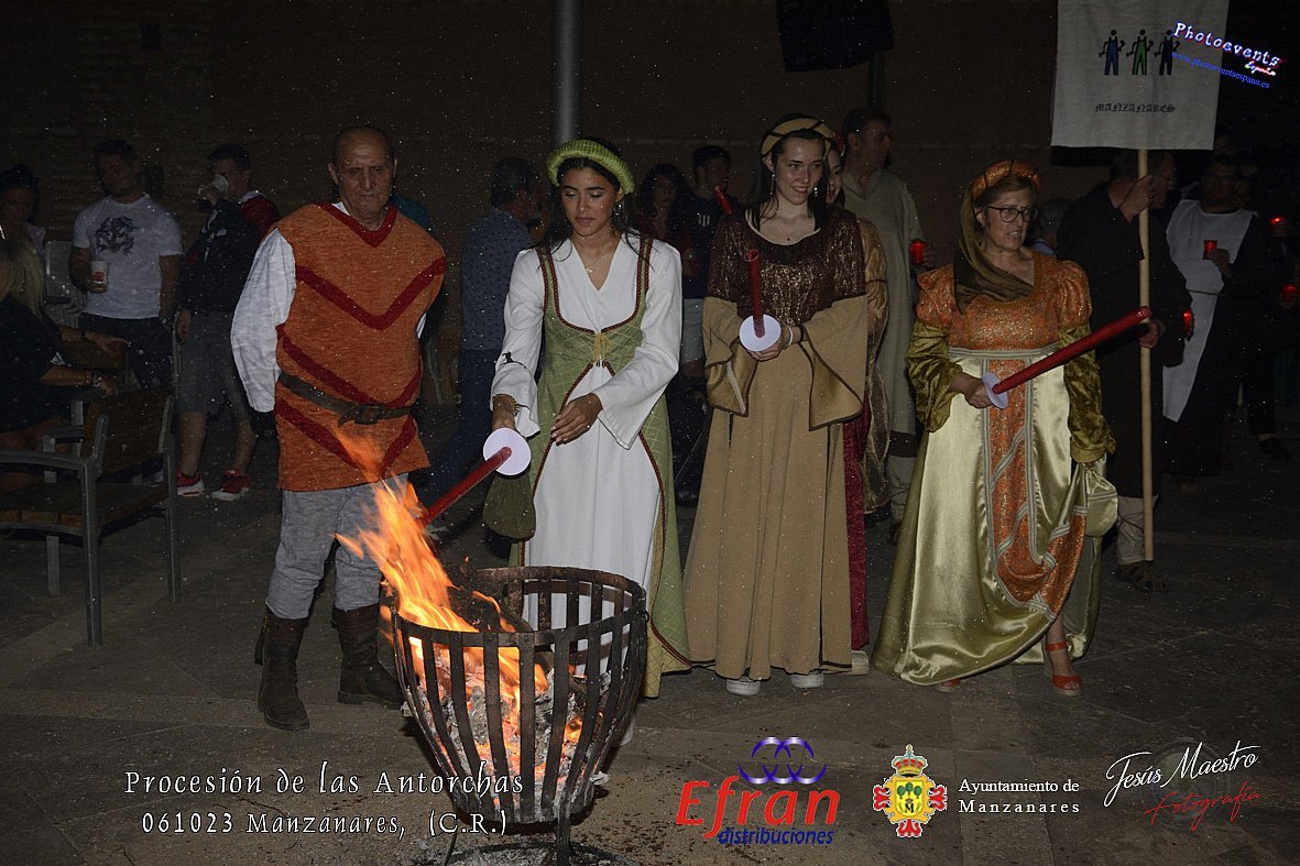 Procesión de las antorchas y nombramientos de Caballeros y Damas de la encomienda, que tenía lugar en la noche del día 061023, enmarcado dentro de los actos organizados con motivo de la realización de las X Jornadas Histórico Turísticas de Manzanares Medieval que se tienen lugar durante los días del 6 al 8 de Octubre en la localidad de Manzanares, Ciudad Real.