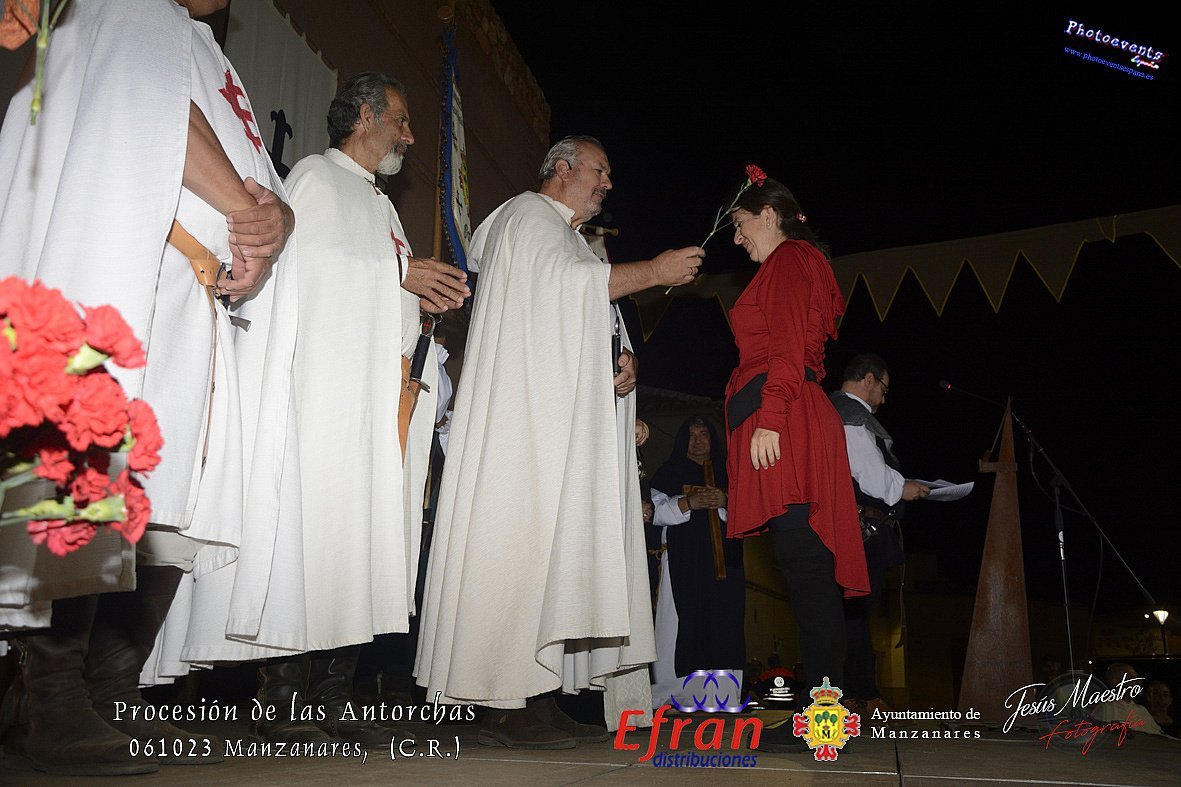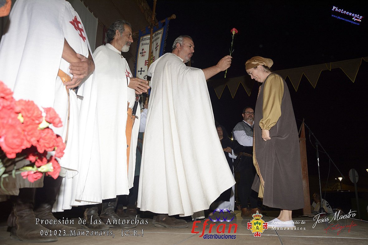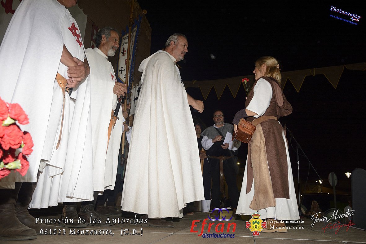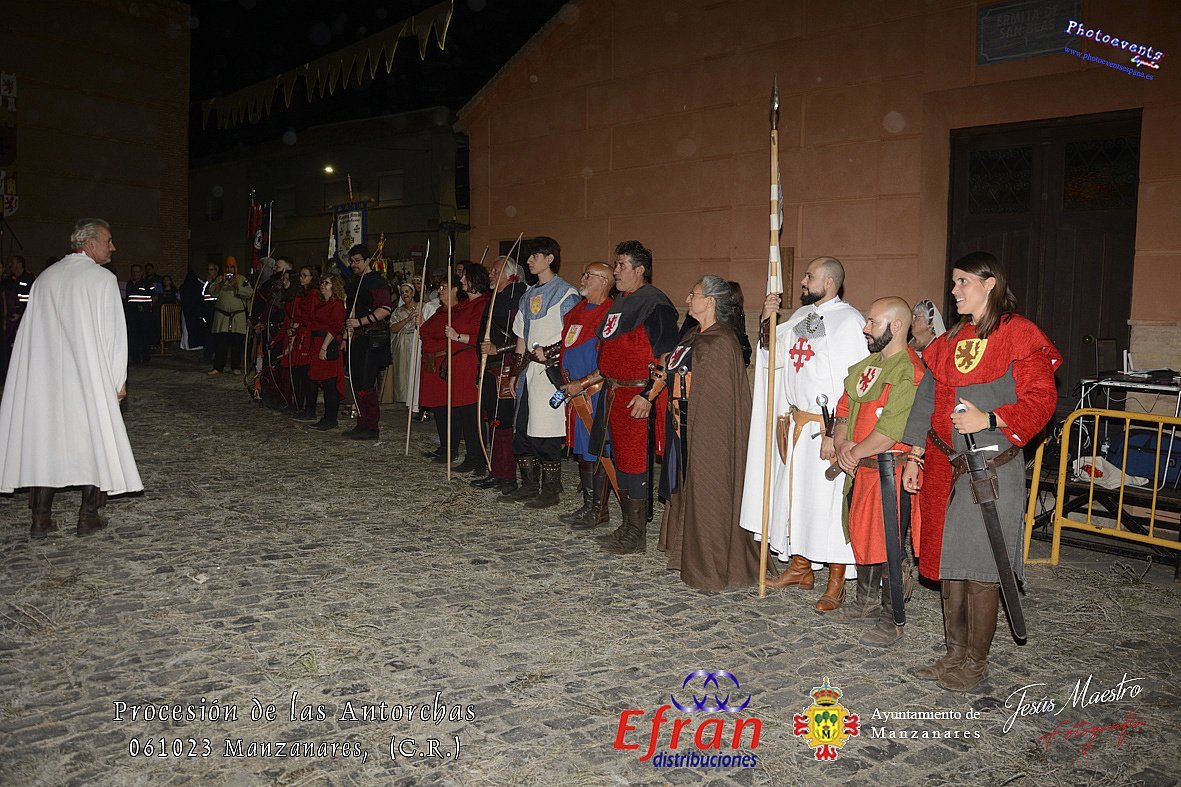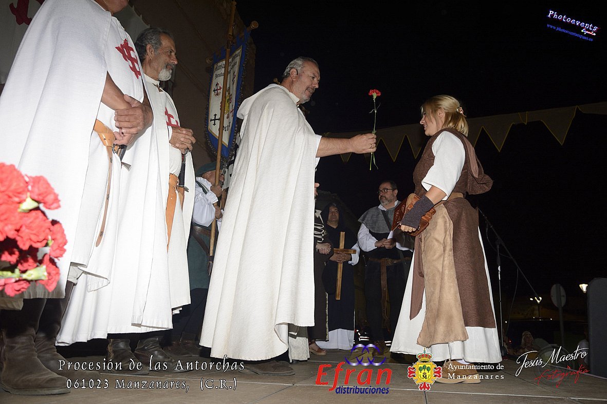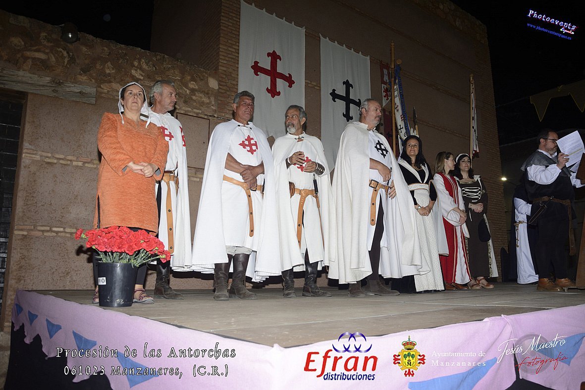 Procesión de las antorchas y nombramientos de Caballeros y Damas de la encomienda, que tenía lugar en la noche del día 061023, enmarcado dentro de los actos organizados con motivo de la realización de las X Jornadas Histórico Turísticas de Manzanares Medieval que se tienen lugar durante los días del 6 al 8 de Octubre en la localidad de Manzanares, Ciudad Real.