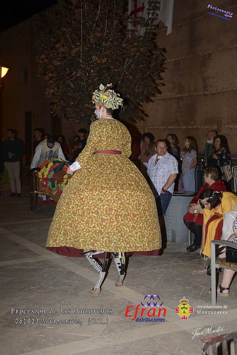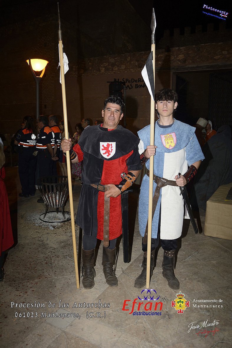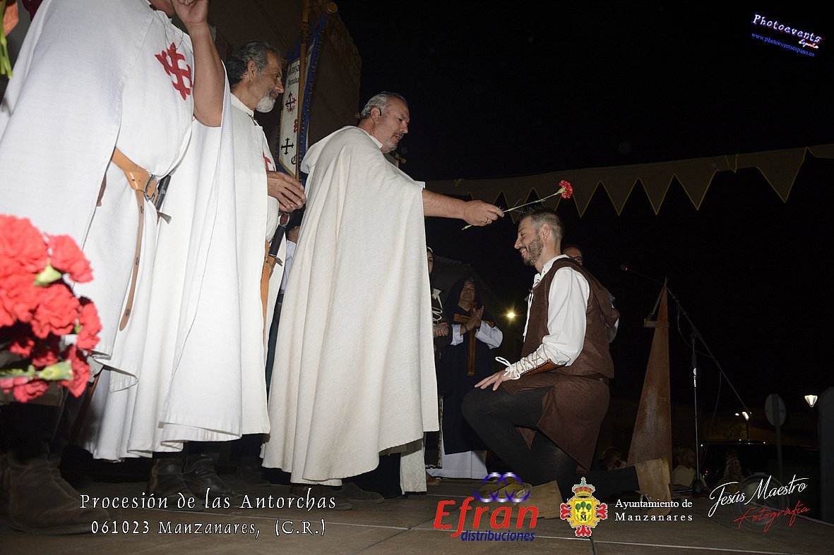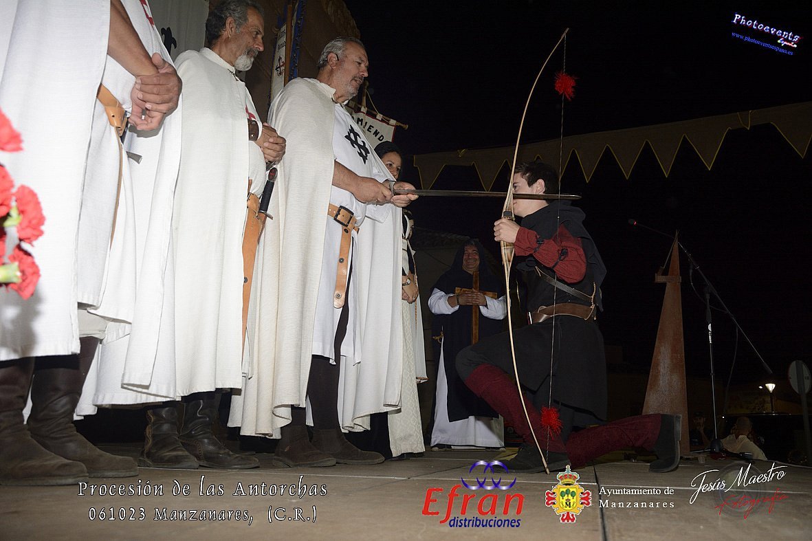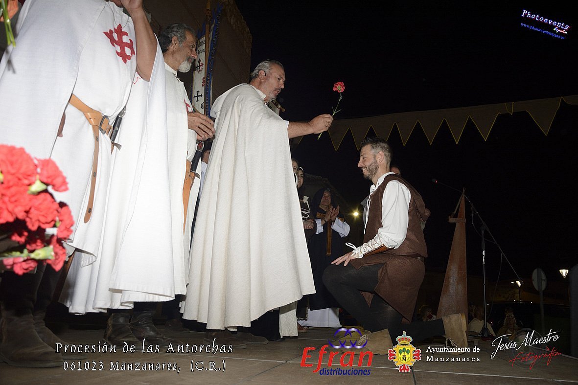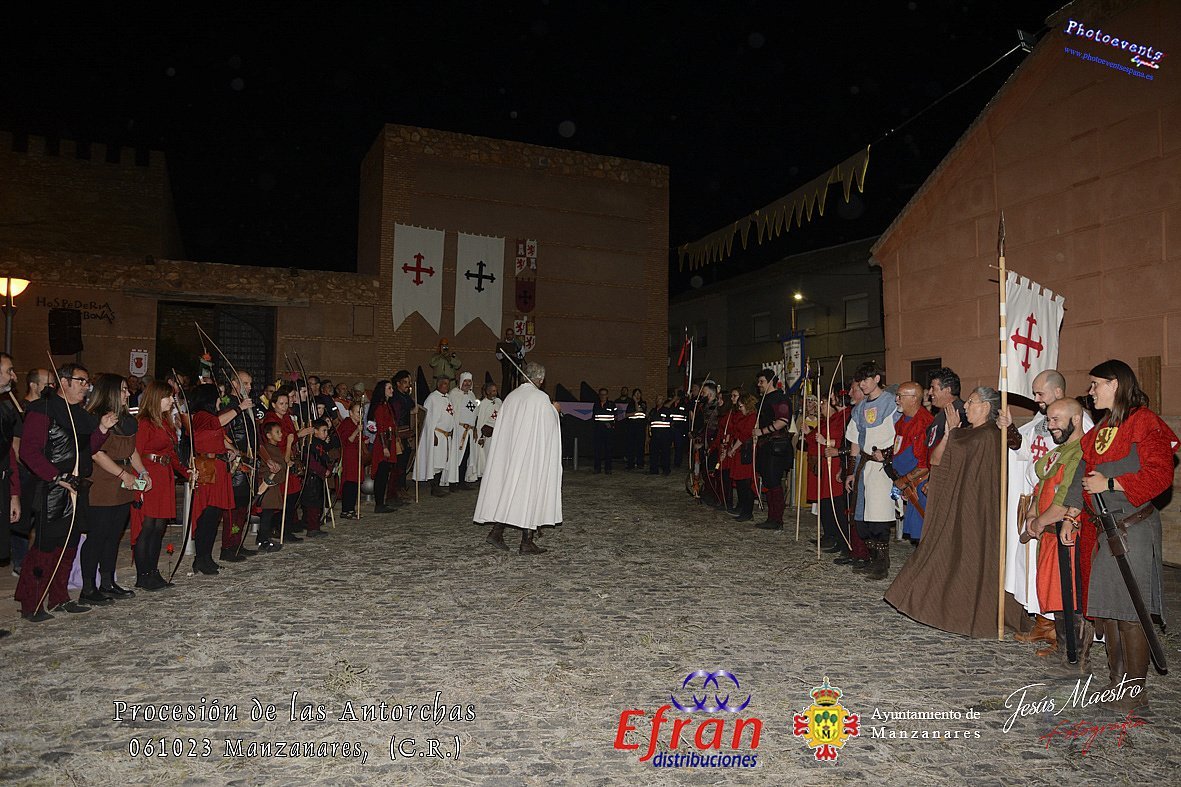Procesión de las antorchas y nombramientos de Caballeros y Damas de la encomienda, que tenía lugar en la noche del día 061023, enmarcado dentro de los actos organizados con motivo de la realización de las X Jornadas Histórico Turísticas de Manzanares Medieval que se tienen lugar durante los días del 6 al 8 de Octubre en la localidad de Manzanares, Ciudad Real.