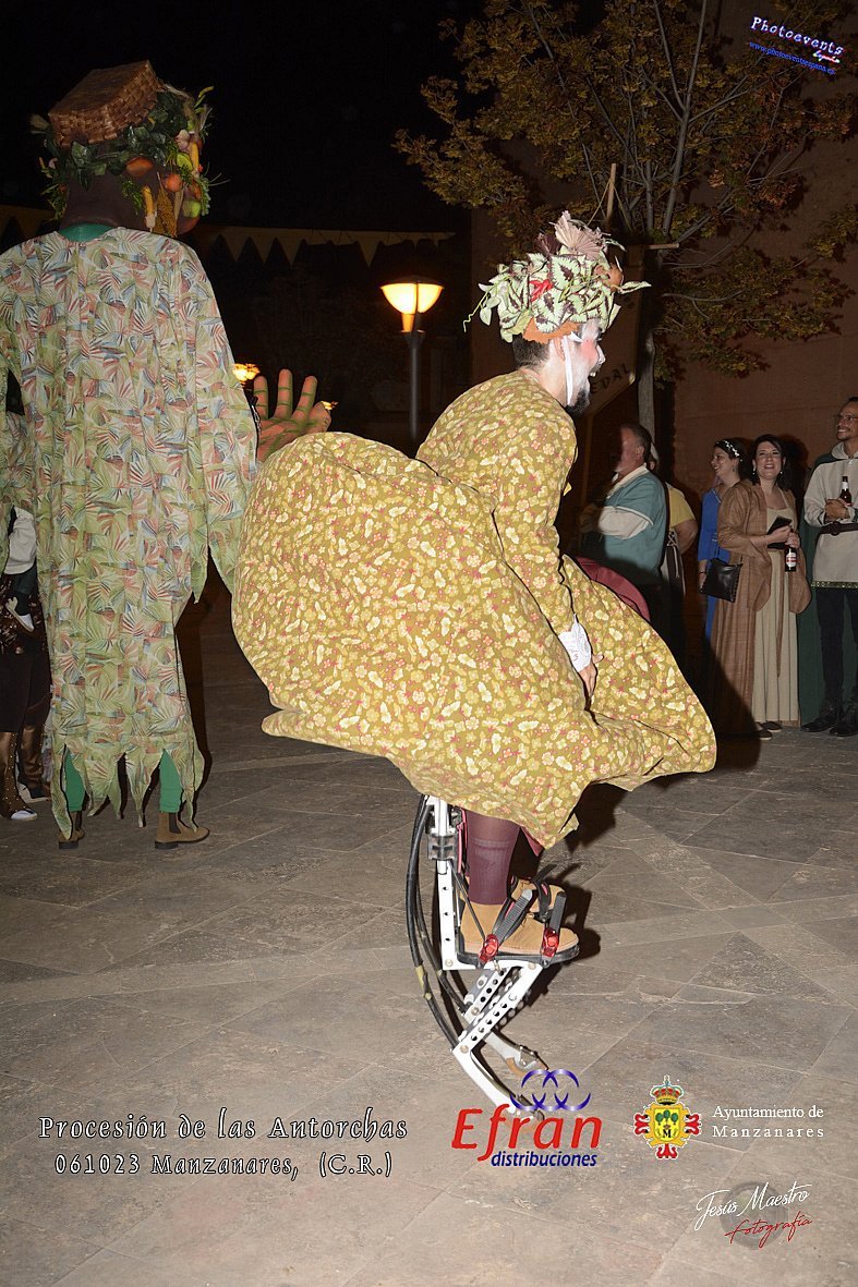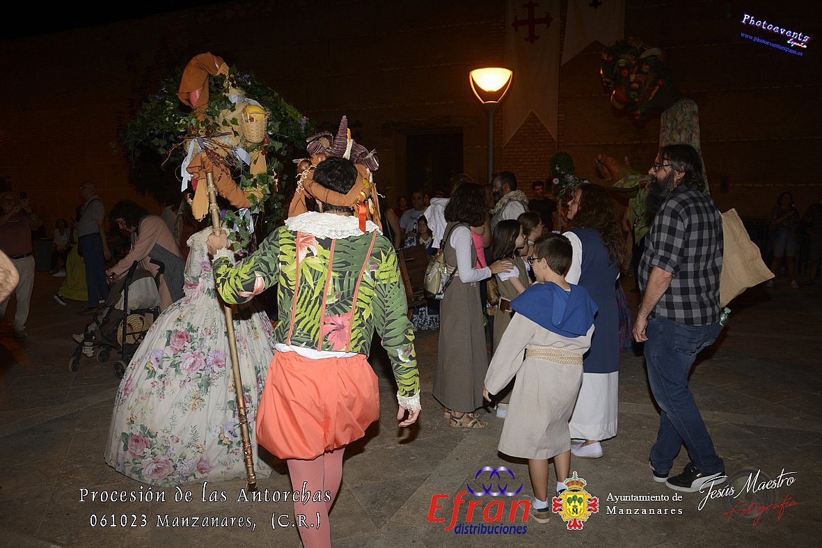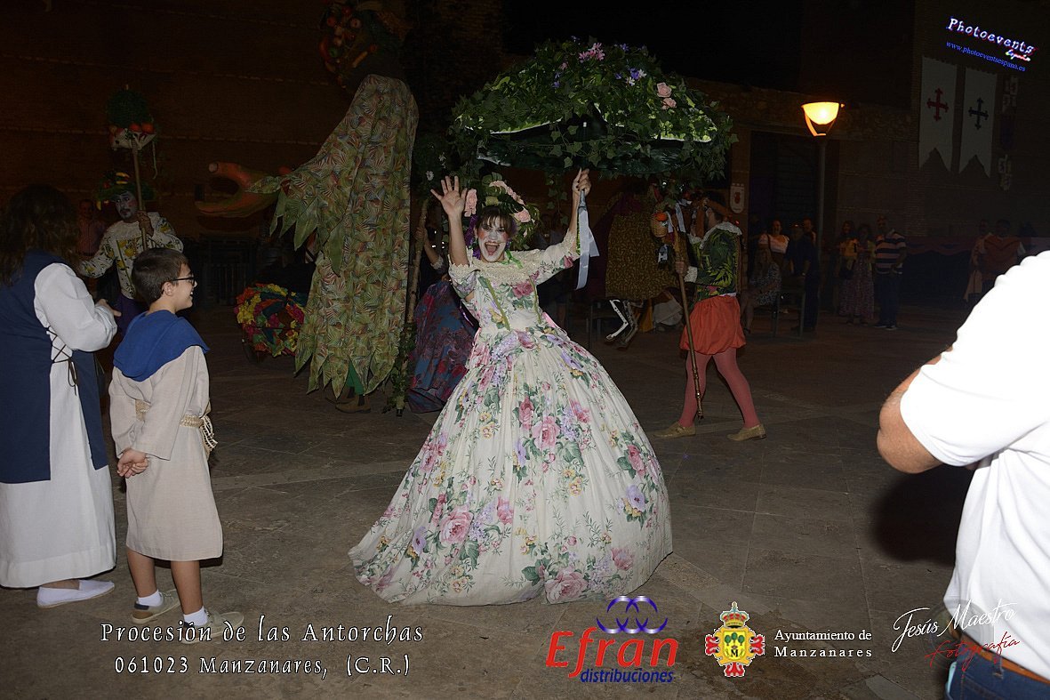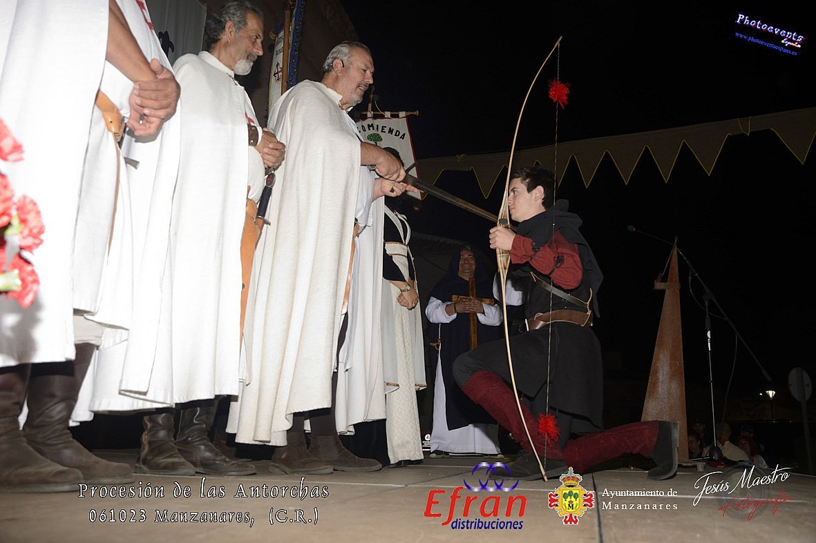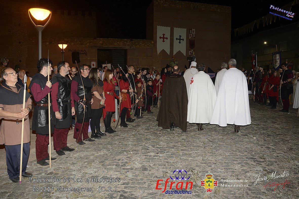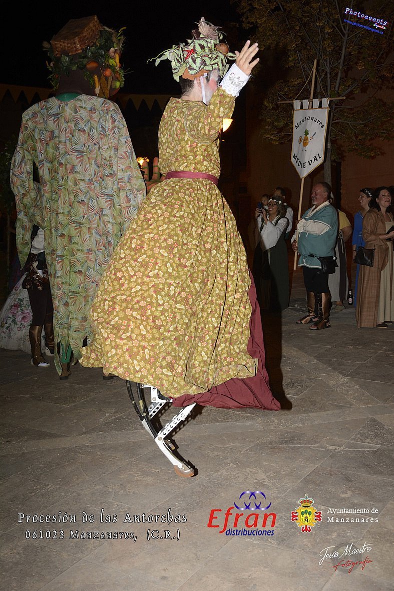 Procesión de las antorchas y nombramientos de Caballeros y Damas de la encomienda, que tenía lugar en la noche del día 061023, enmarcado dentro de los actos organizados con motivo de la realización de las X Jornadas Histórico Turísticas de Manzanares Medieval que se tienen lugar durante los días del 6 al 8 de Octubre en la localidad de Manzanares, Ciudad Real.