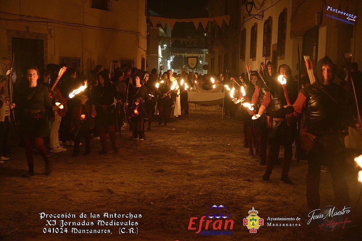 Fotografía realizada con motivo de la Procesión de las antorchas, teniendo lugar la noche del 041024, estando enmarcado dentro de los actos organizados con motivo de la realización de las XI Jornadas Histórico Turísticas de Manzanares Medieval que se celebran durante los días del 4 al 6 de Octubre en la localidad de Manzanares, Ciudad Real.